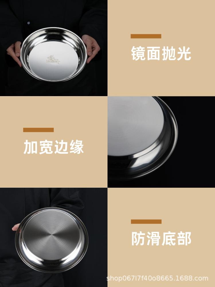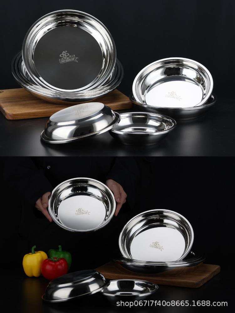 Plato Grueso de Acero Inoxidable para el Hogar, Plato Redondo, Plato, Rollo de Arroz para Barbacoa, Fideos Fríos, Plato para Comida Rápida, Plato Hondo y Plano, Bandeja