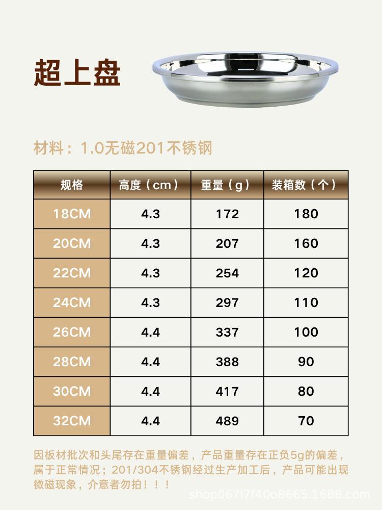201 stainless steel 1.2 thickened super upper plate 18cm