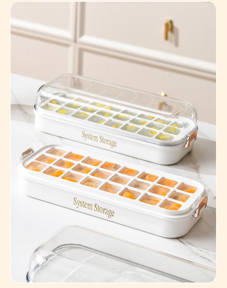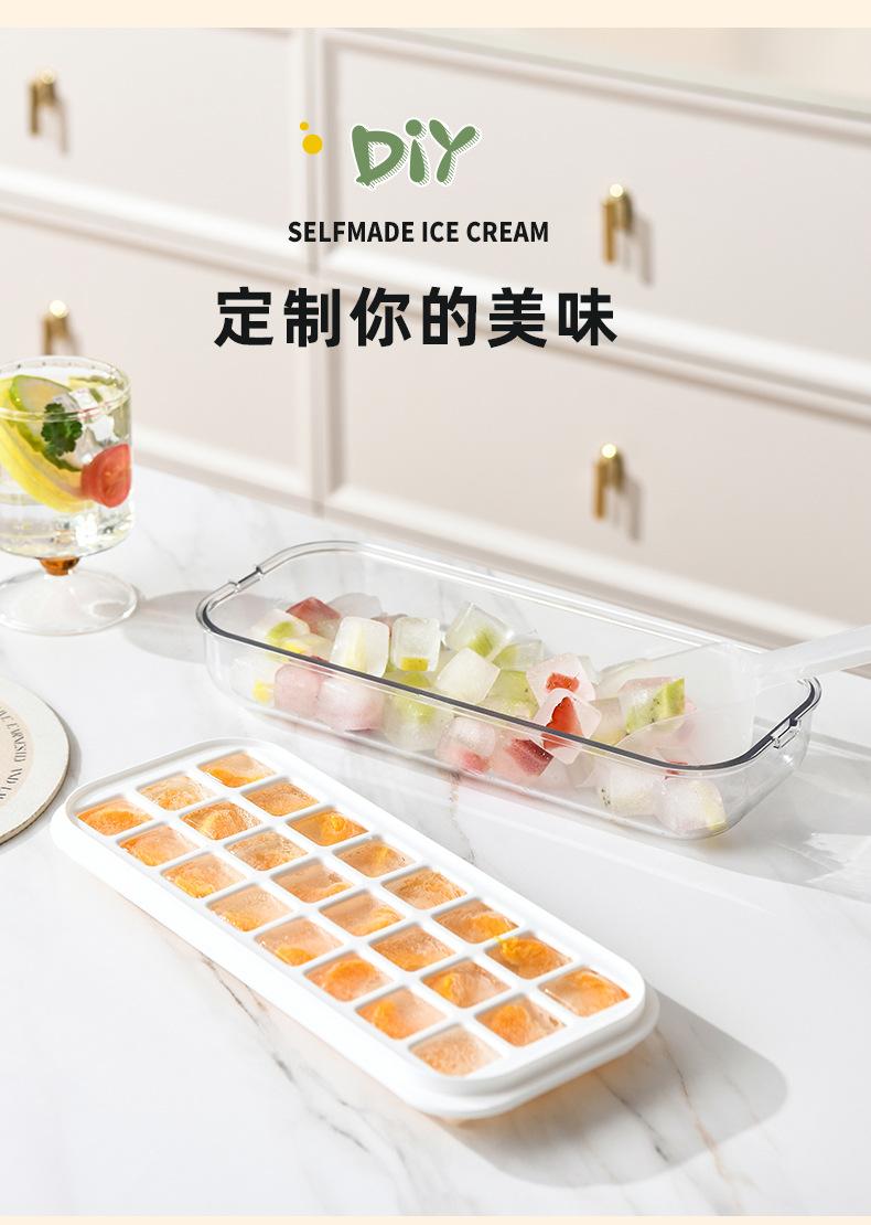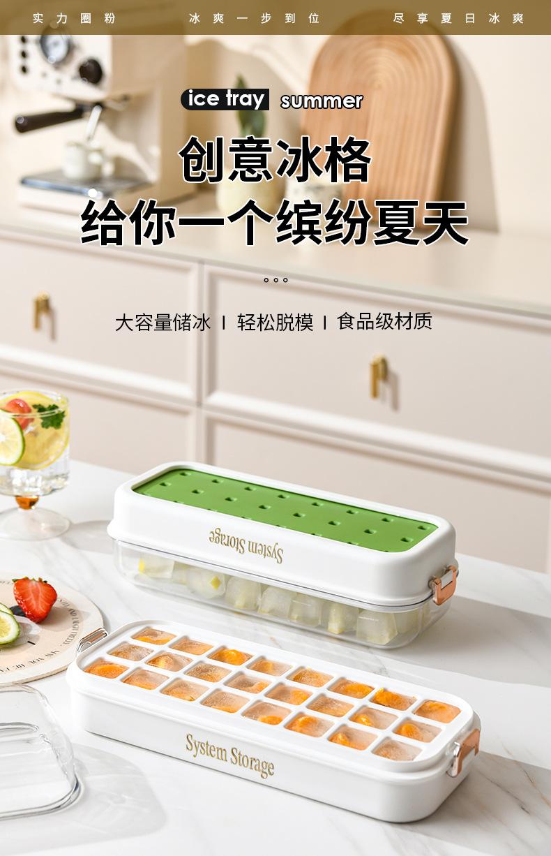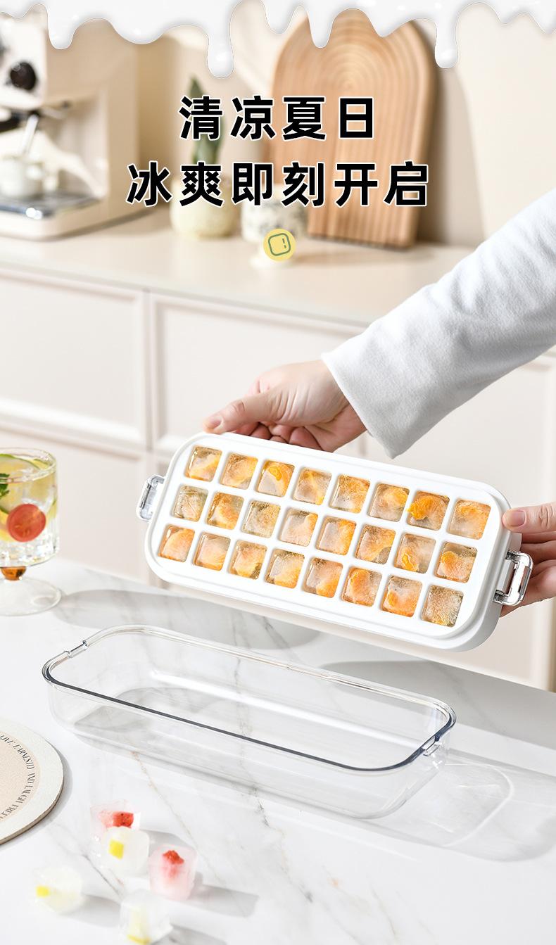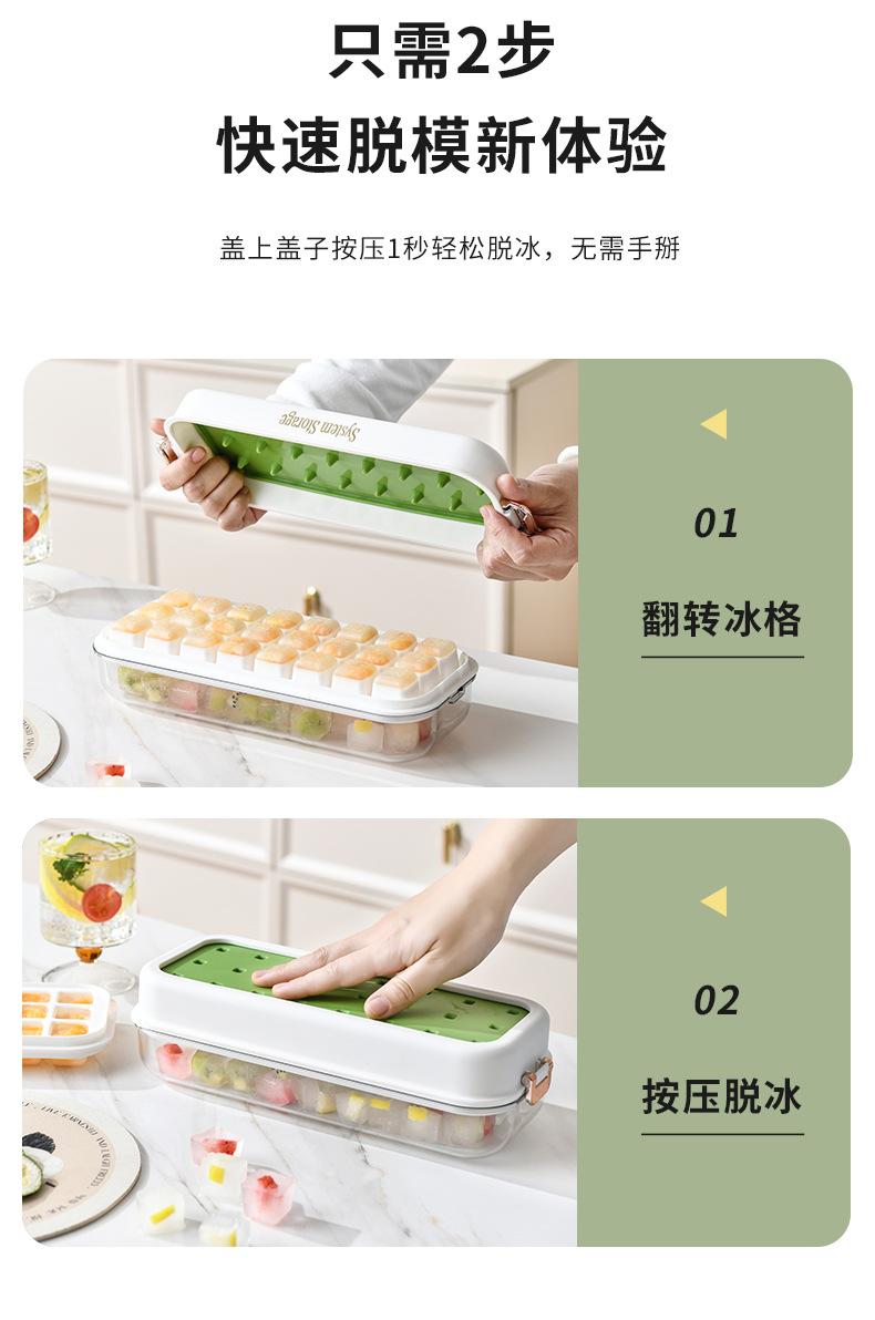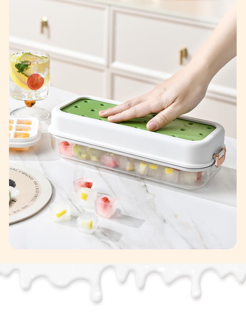 Molde para cubitos de hielo de doble capa tipo prensa, caja para hacer hielo con tapa para almacenamiento, refrigerador de gran capacidad, molde para cubitos de hielo fácil de desmoldar