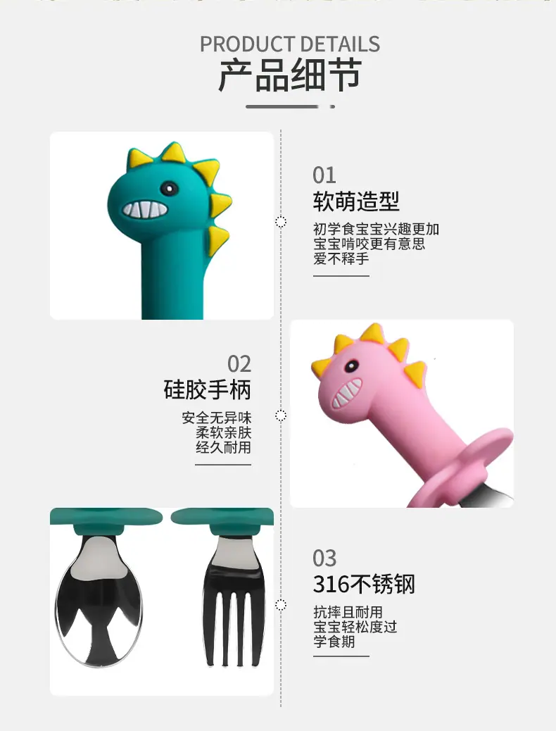 Set de Plato de Cena de Silicona de Venta Caliente Transfronterizo Tazón para Suplemento Alimenticio para Bebé Set de Tenedor y Cuchara para Comer para Bebé Babero Vajilla para Niños