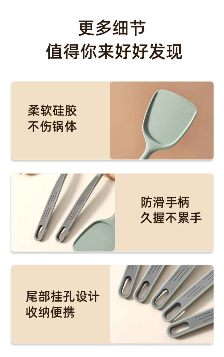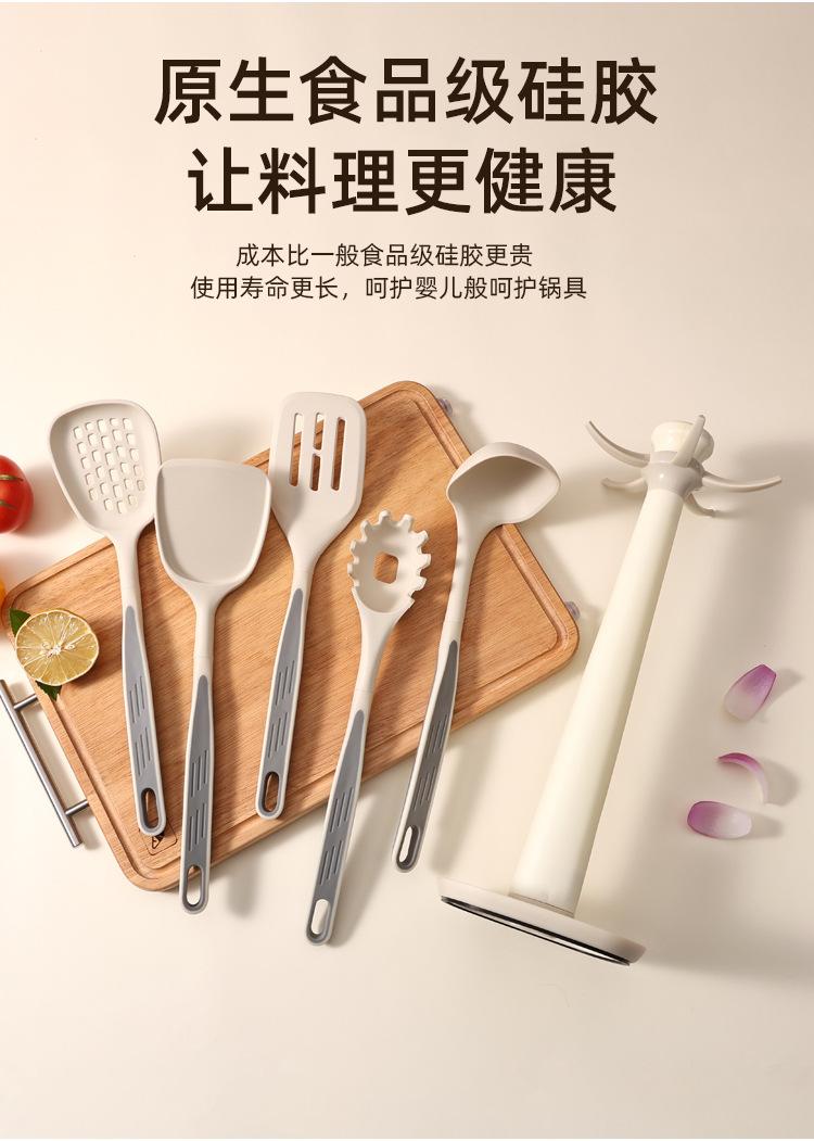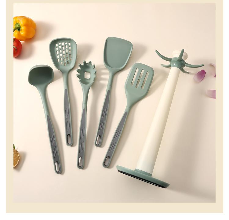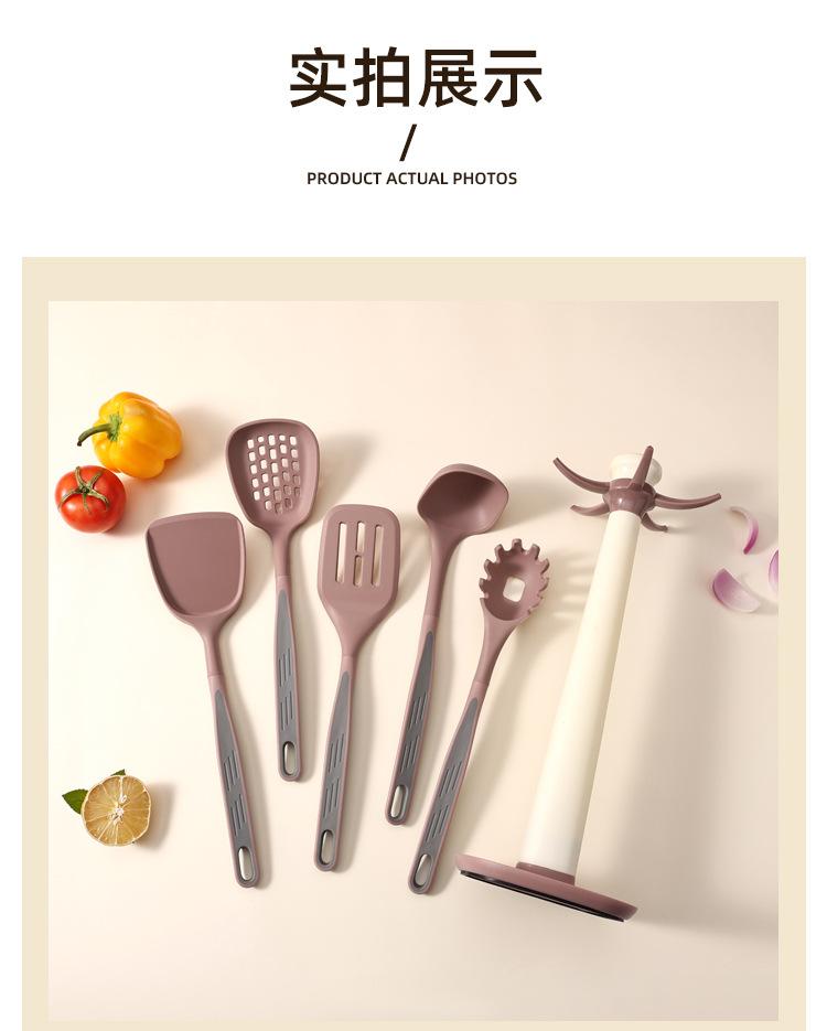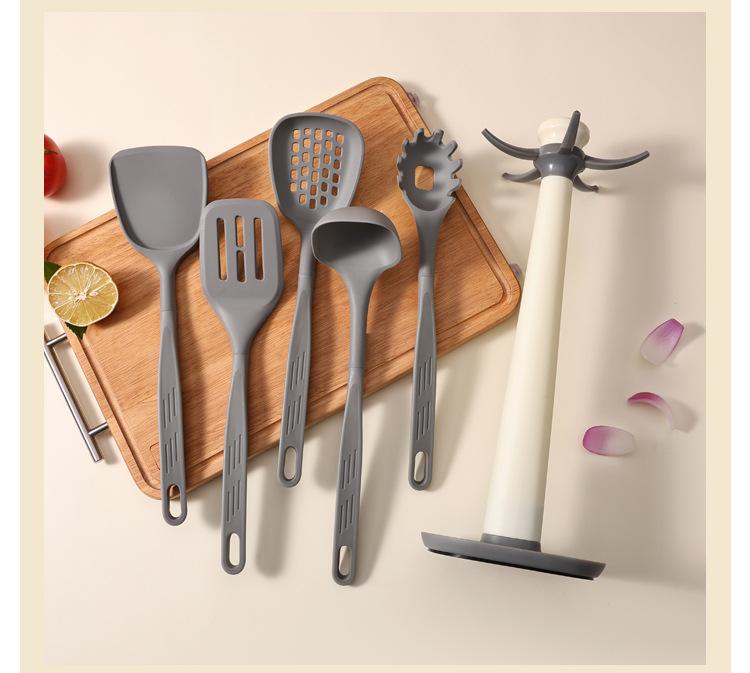 6-piece Silicone Kitchen Utensil Set with Plastic Handles (Gray)