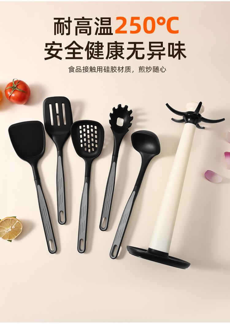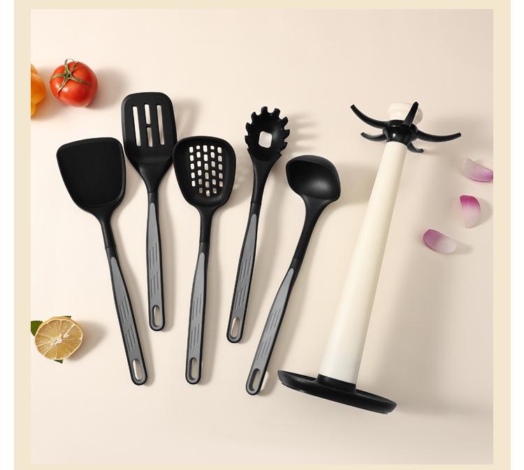 6-piece Silicone Kitchen Utensil Set with Plastic Handles (Black)