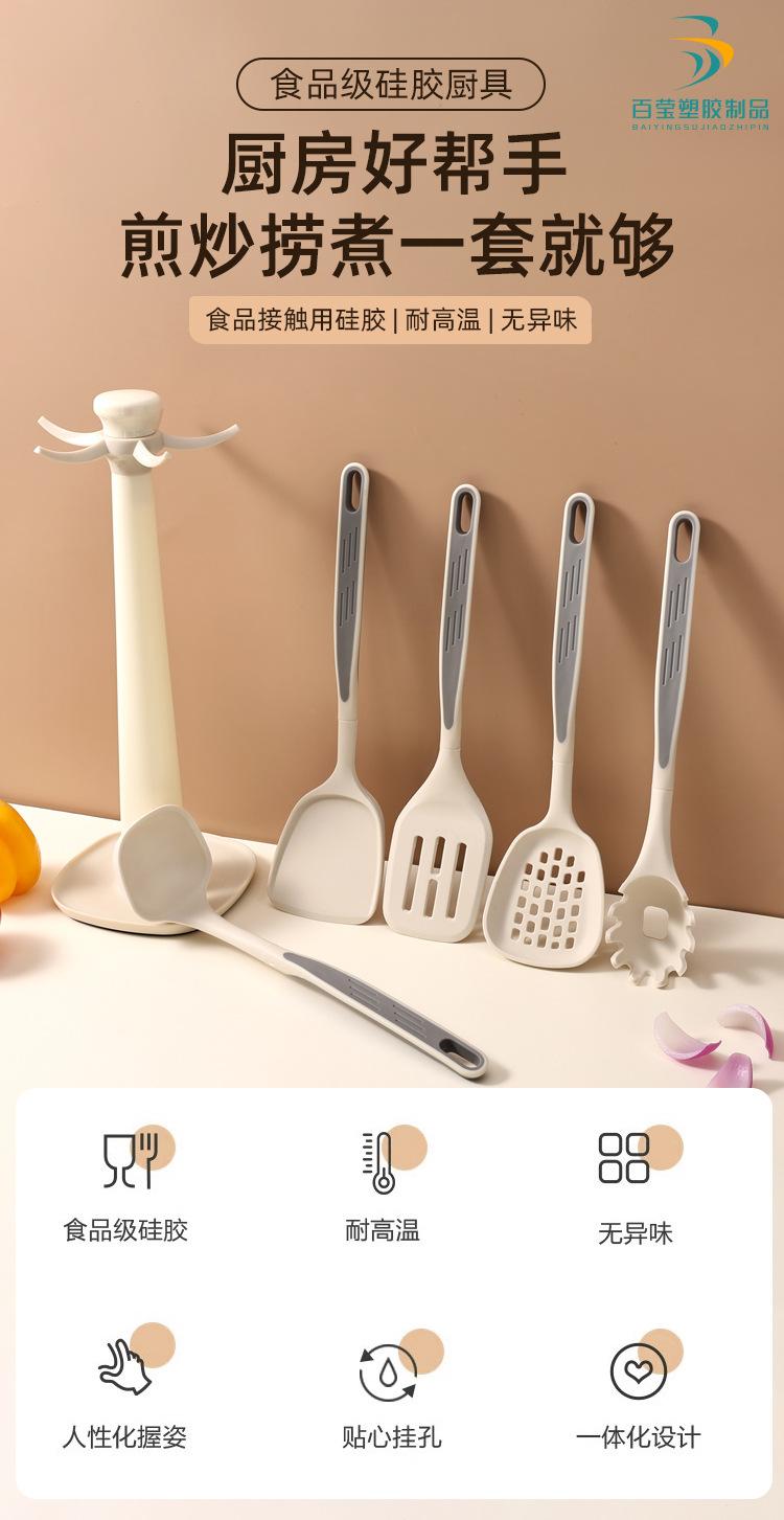 6-piece Silicone Kitchen Utensil Set with Plastic Handles (White), 6-piece Silicone Kitchen Utensil Set with P...