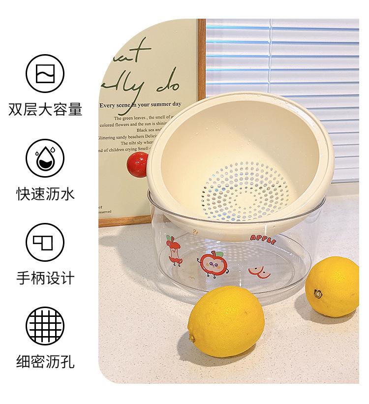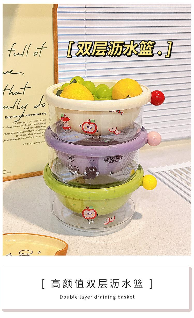 Nuevo hogar de dopamina cocina lavado de frutas multifuncional cesta para lavar verduras plato de frutas tazón doble capa lavabo para lavar verduras cesta de drenaje