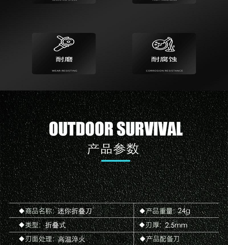 Mini Cuchillo Portátil de Alta Dureza Cuchillo Plegable Herramienta EDC Multifuncional Acero Inoxidable Chapado en Titanio Cuchillo Llavero 3