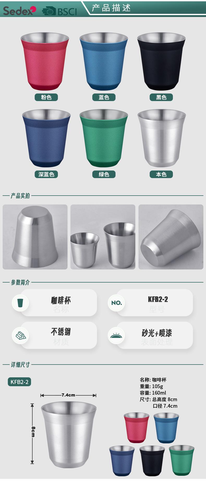 Taza para remover café de doble capa de acero inoxidable, taza de metal para bar, taza de cerveza de 160 ml, taza de agua creativa de acero inoxidable para oficina