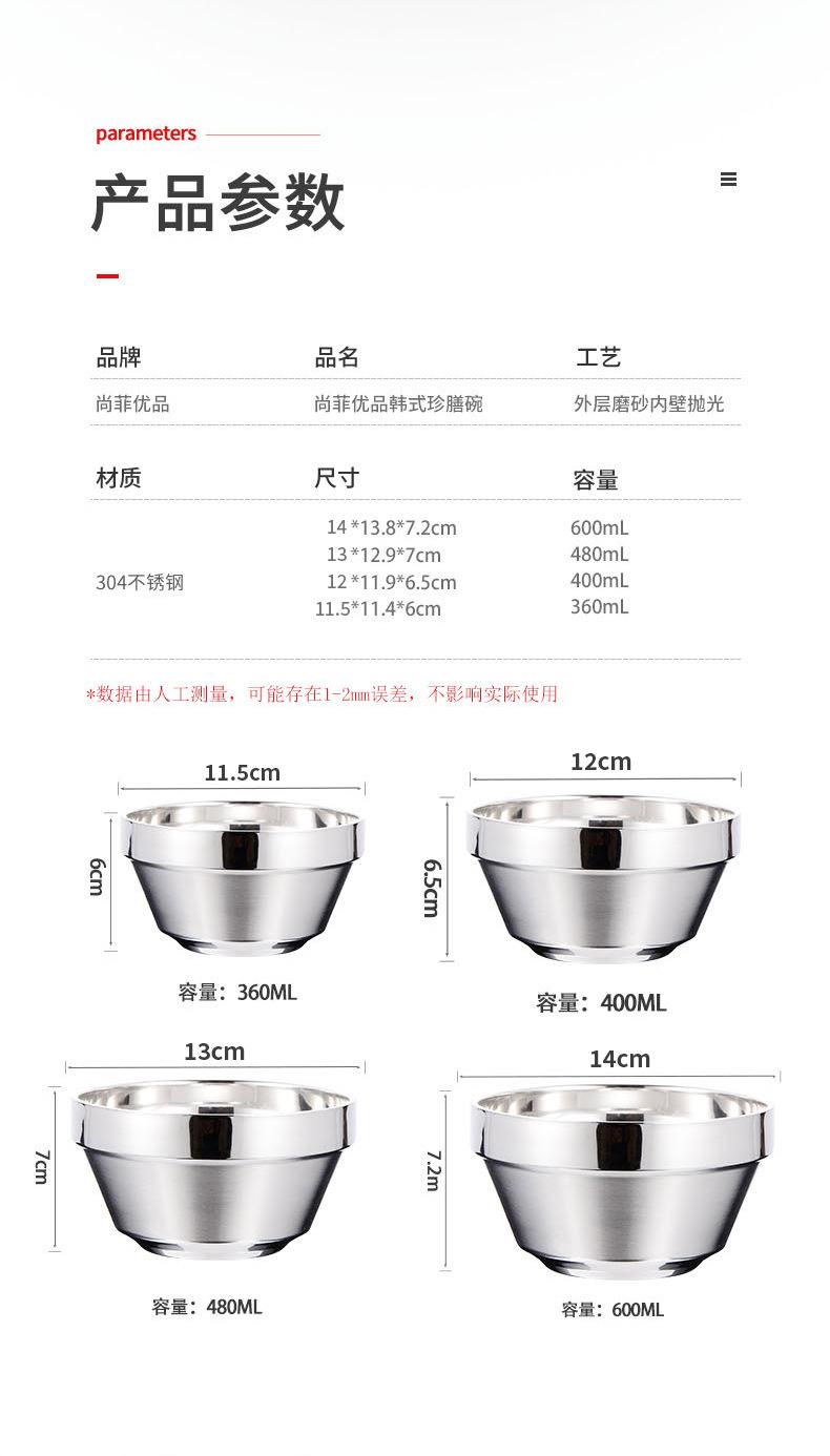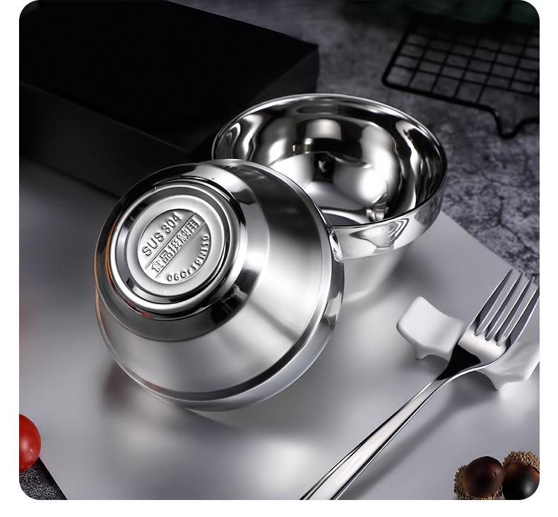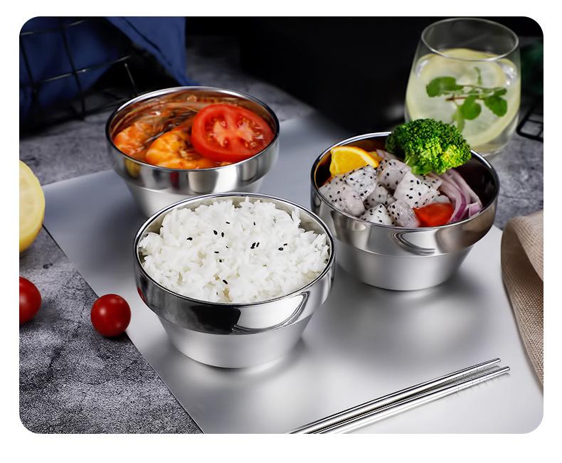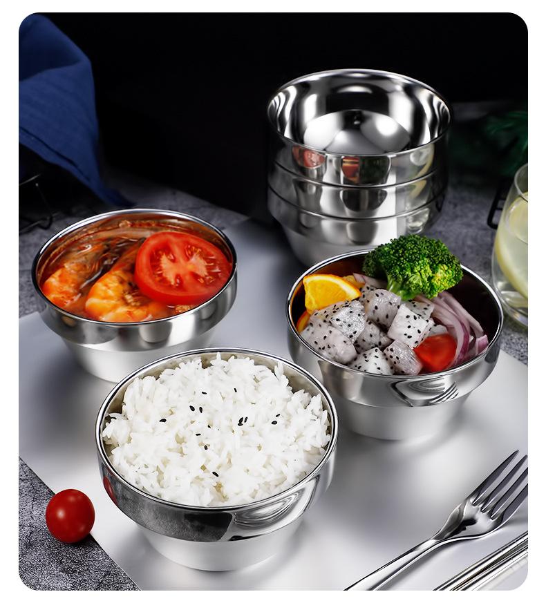 Tazón de Acero Inoxidable 304 de Alto Valor Grado Alimenticio Tazón de Arroz Doméstico para Estudiantes Tazón para Ramen Tazón para Sopa de Dormitorio Tazones Grandes y Pequeños Venta al Por Mayor
