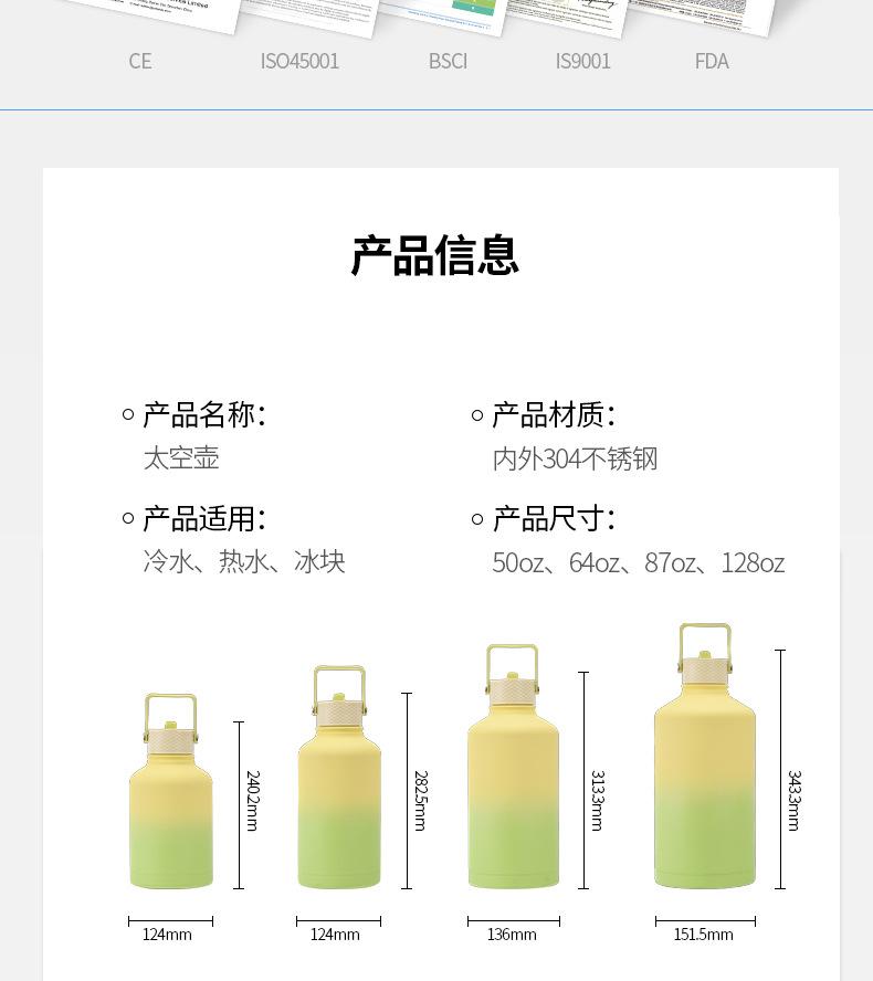 Nueva Taza Deportiva de Acero Inoxidable Botella Espacial Taza Termo Gran Capacidad Vaso de Agua para Exterior