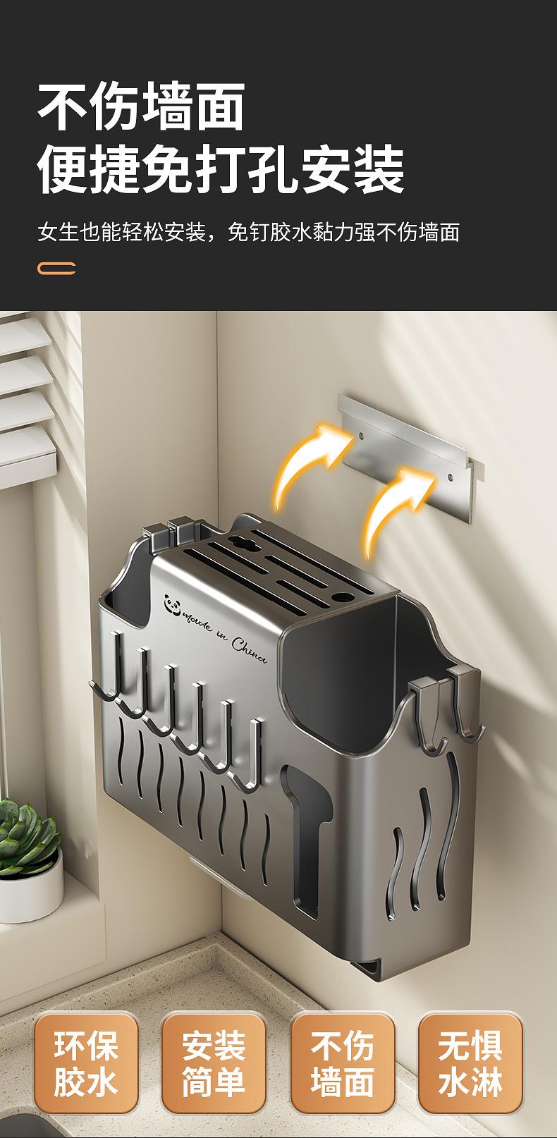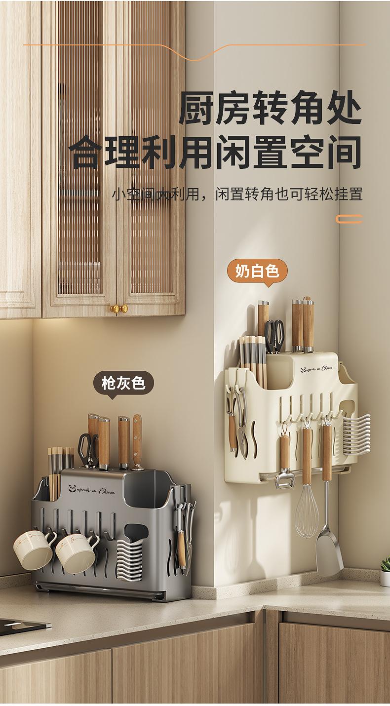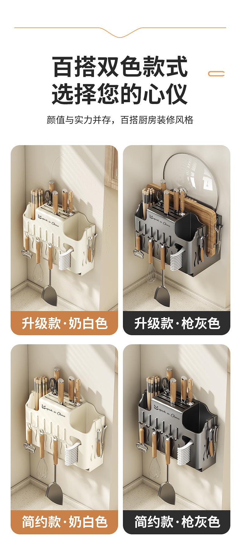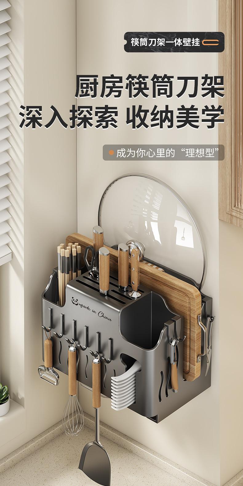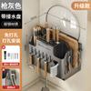 Soporte para cuchillos engrosado, estante de almacenamiento de cocina sin perforaciones, suministros de cocina, almacenamiento multifuncional de palillos y cuchillos para verduras montado en la pared
