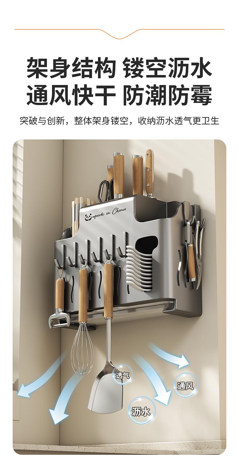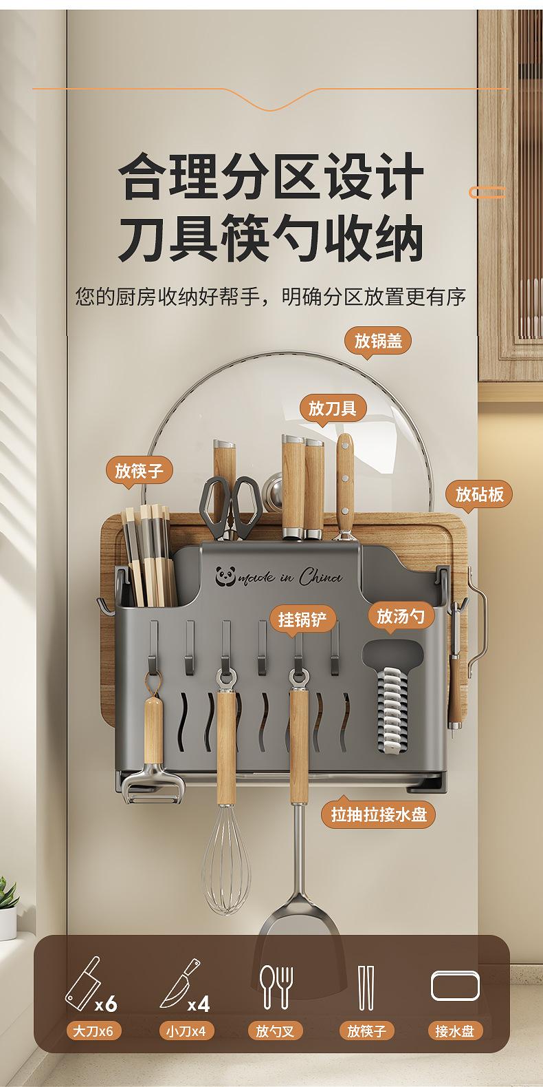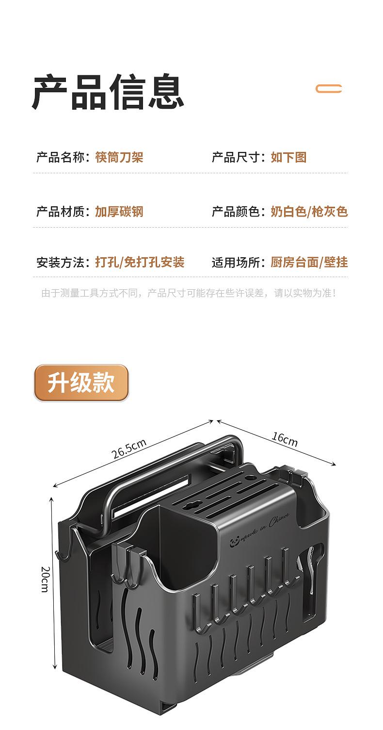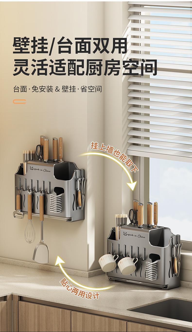 Soporte para cuchillos engrosado, estante de almacenamiento de cocina sin perforaciones, suministros de cocina, almacenamiento multifuncional de palillos y cuchillos para verduras montado en la pared