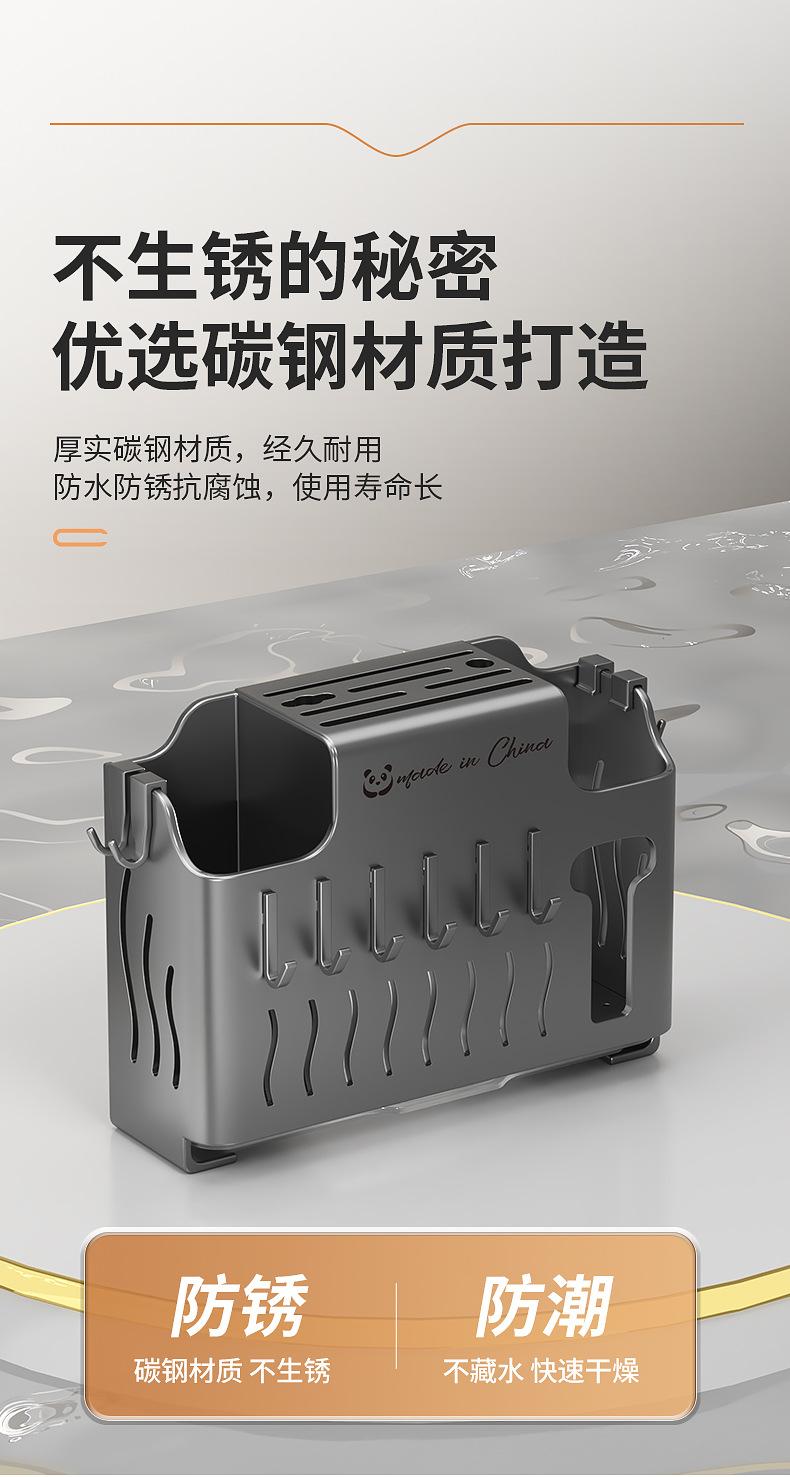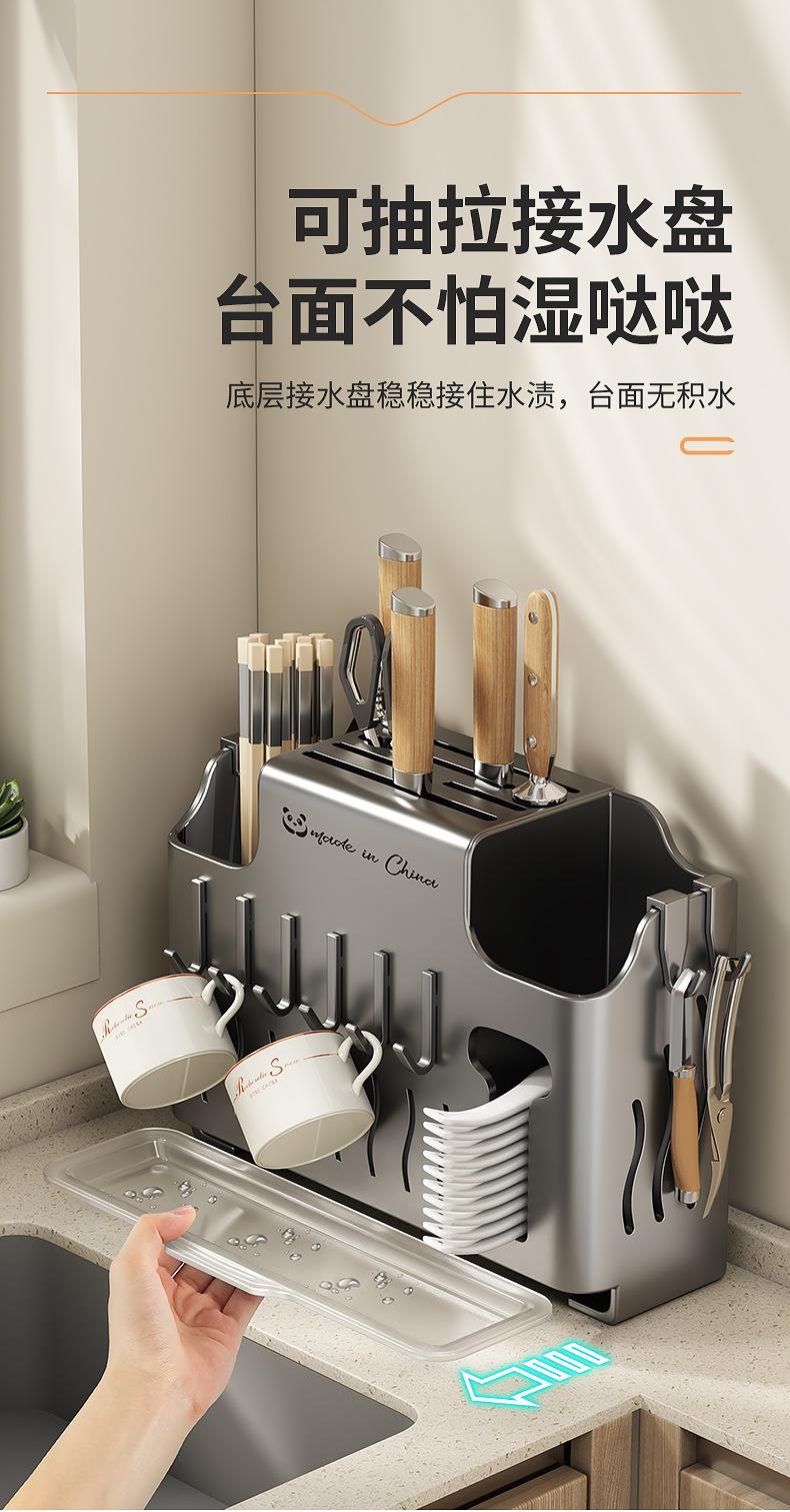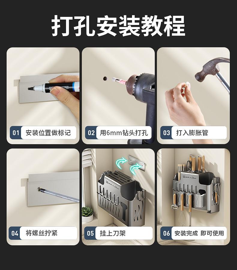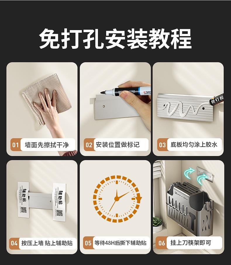 Soporte para cuchillos engrosado, estante de almacenamiento de cocina sin perforaciones, suministros de cocina, almacenamiento multifuncional de palillos y cuchillos para verduras montado en la pared