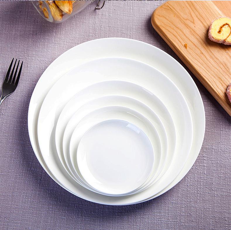 Plato de Porcelana China Blanca Pura, Plato Occidental de Cerámica, Plato para Platillo Frío, Plato para Bistec, Plato Luz de Luna, Plato Hondo, Plato para Exhibición de Regalo
