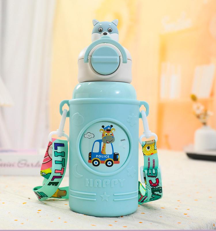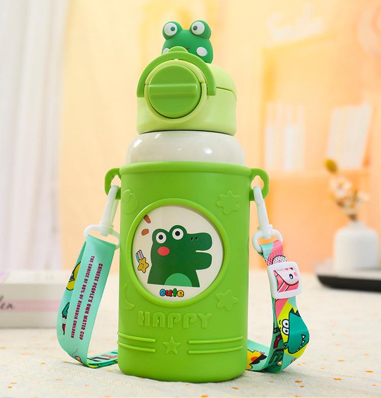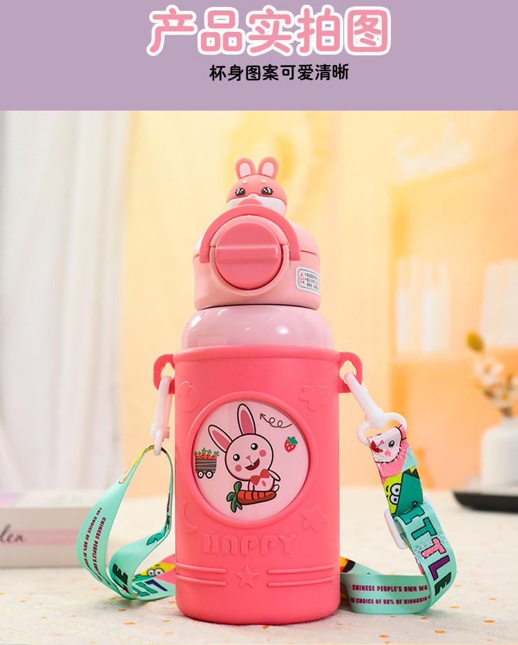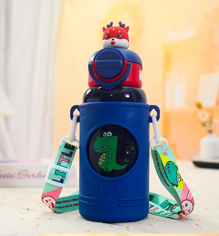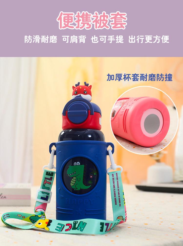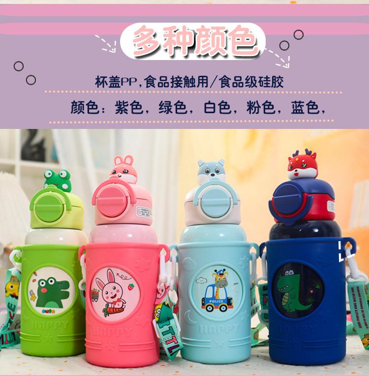 Dibujo Animado para Niños con Funda de Vaso Anticolisión Vaso de Agua Aislado al Vacío de Acero Inoxidable Estudiante Escuela Portátil Correa Pajita Hervidor