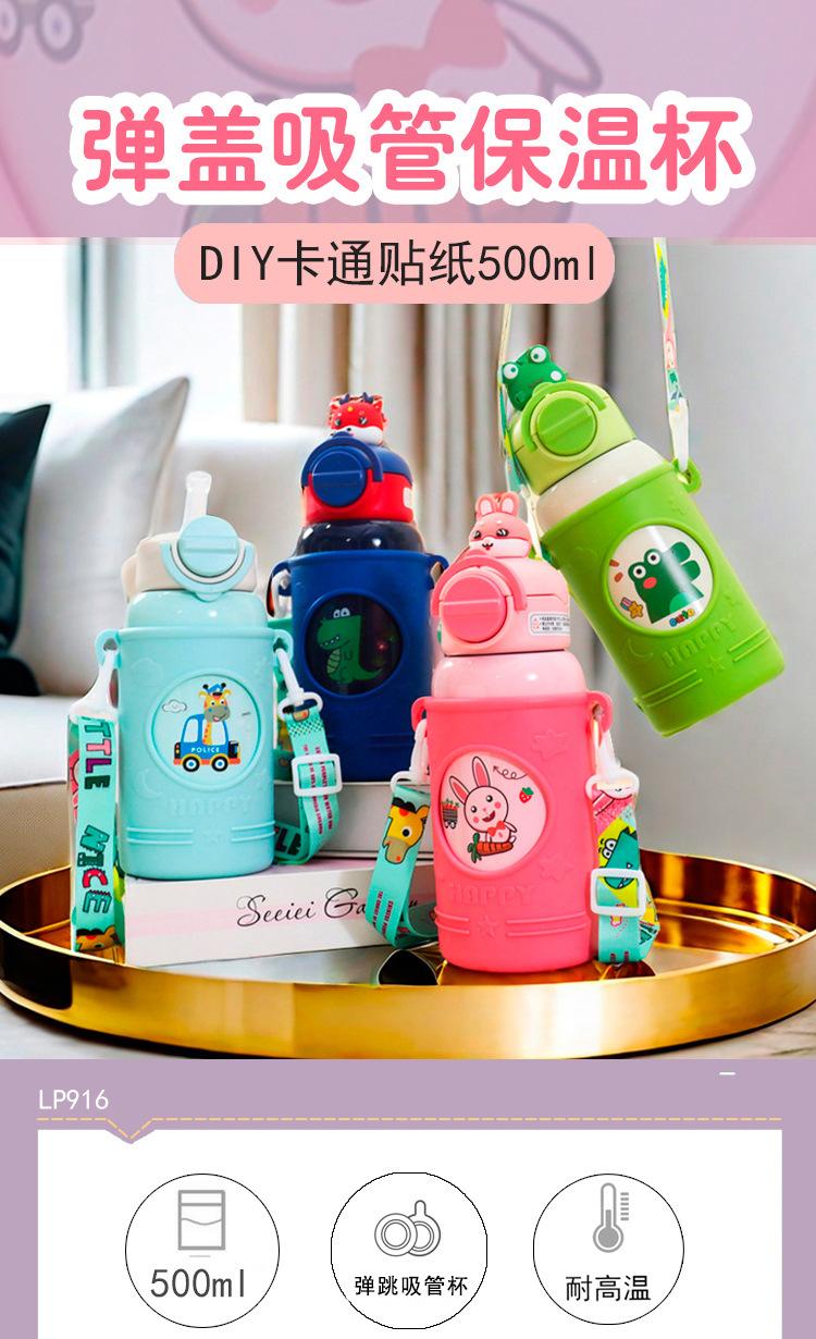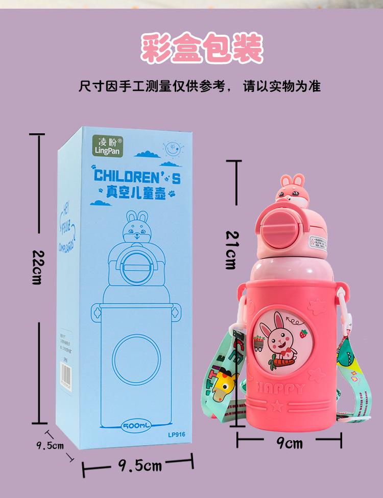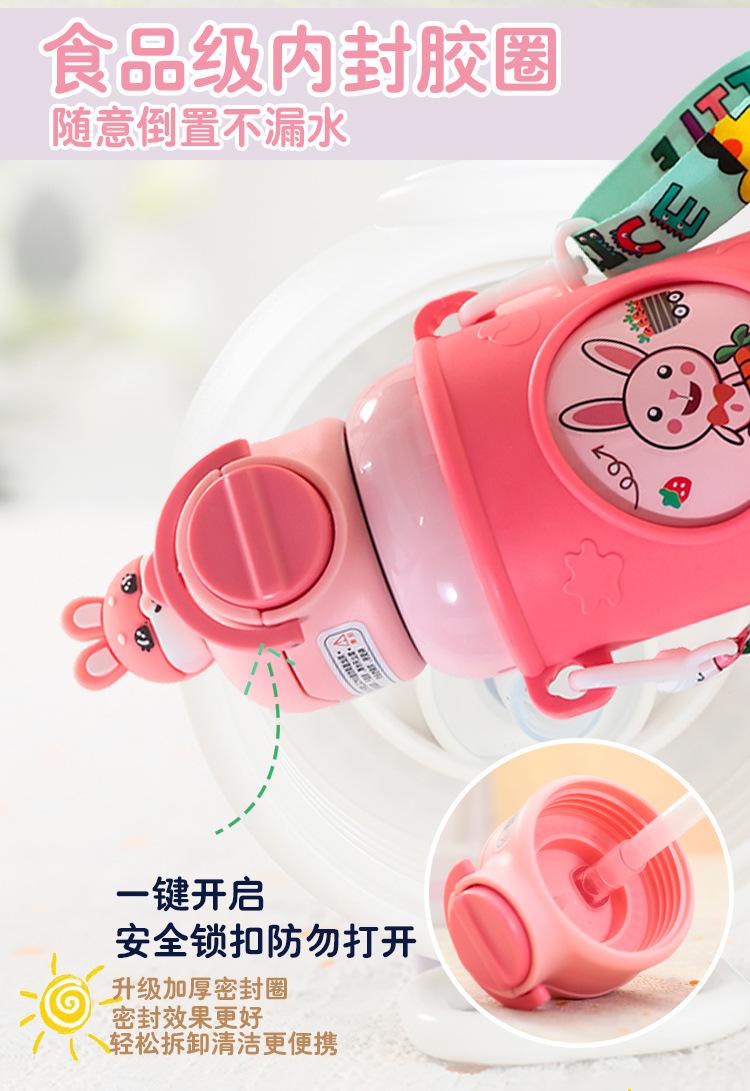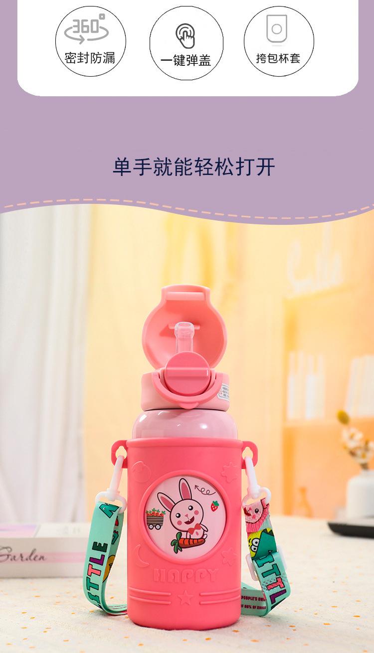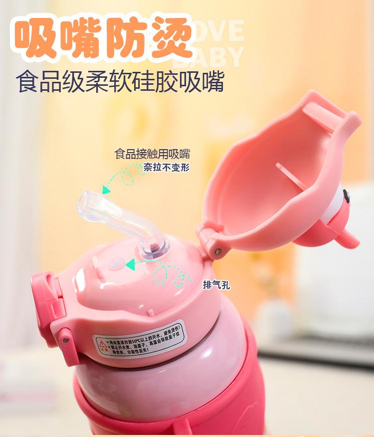 Dibujo Animado para Niños con Funda de Vaso Anticolisión Vaso de Agua Aislado al Vacío de Acero Inoxidable Estudiante Escuela Portátil Correa Pajita Hervidor