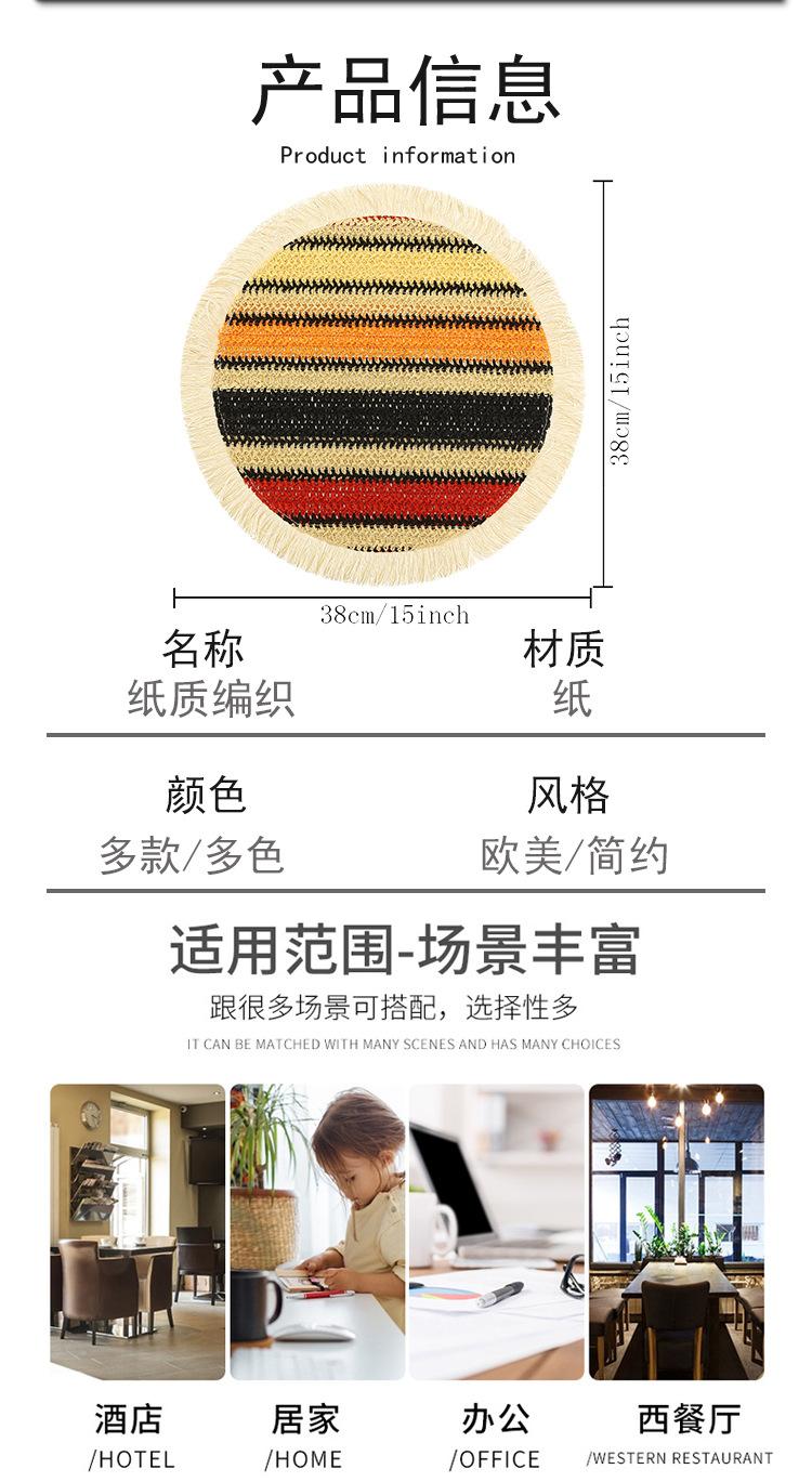 Pajita de Papel Estilo Japonés Individual Estilo Occidental Mantel Individual Aislamiento Térmico para Mesa de Comedor Redondo Mantel Individual para Mesa de Comedor Ins Posavasos Tapete para Olla Tapete para Tazón para Uso Doméstico