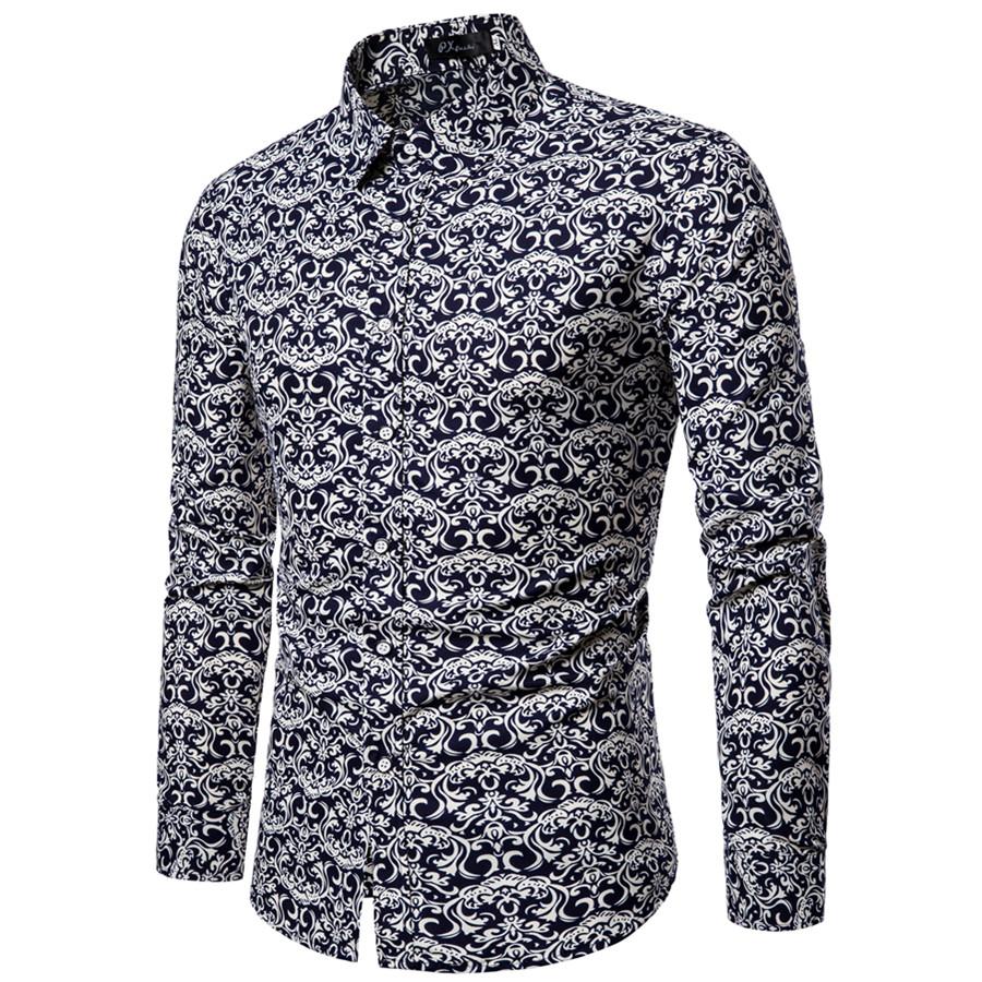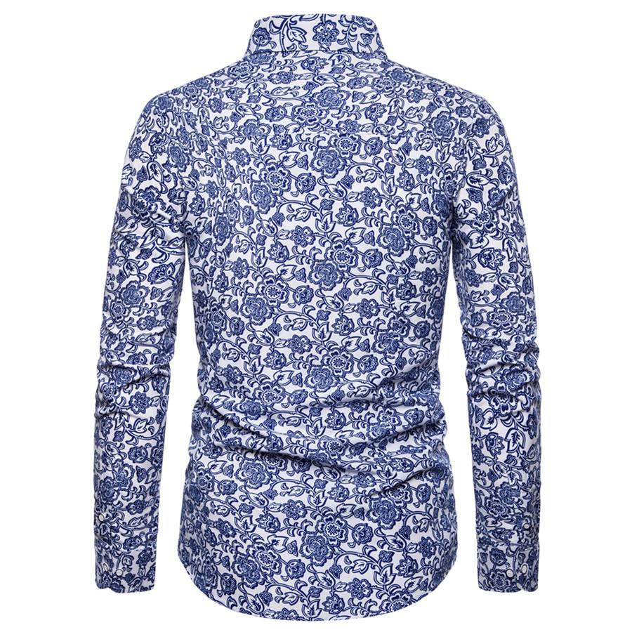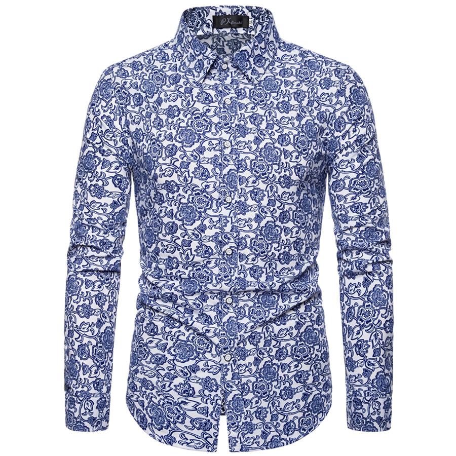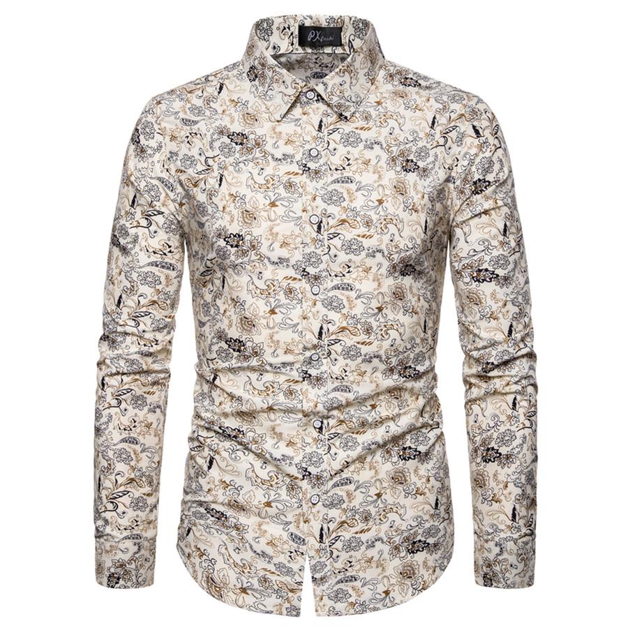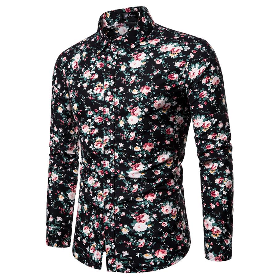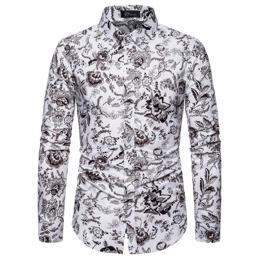 2022 Comercio Exterior Nueva Camisa Casual Floral para Hombre Talla Europea Moda Slim-fit Solapa Estampada Camisa de Hombre