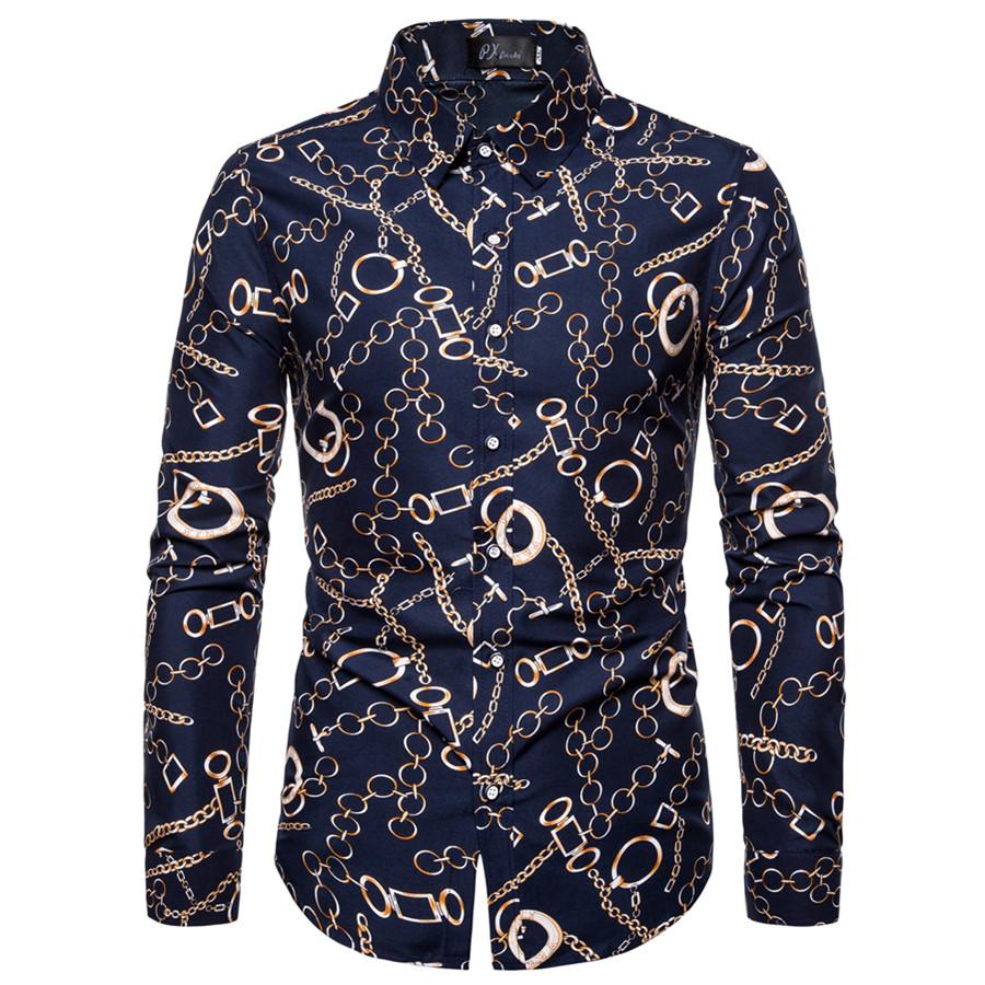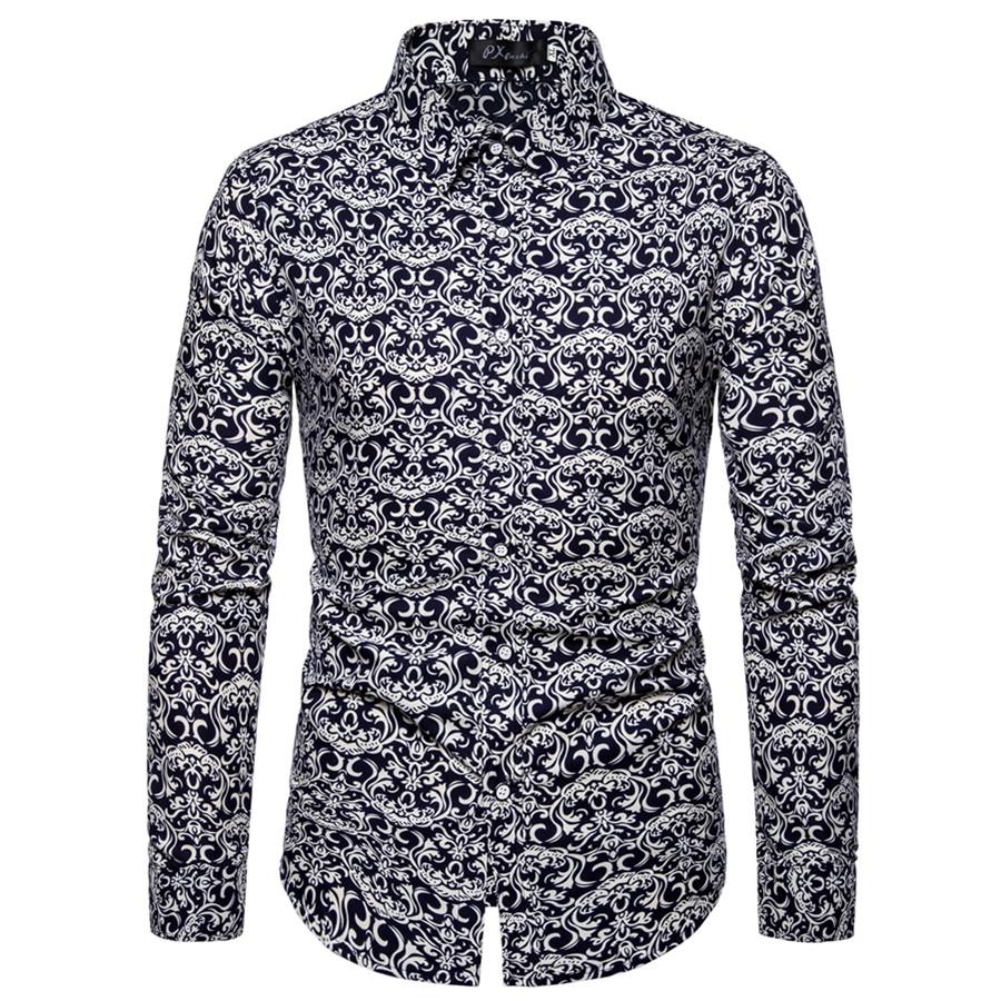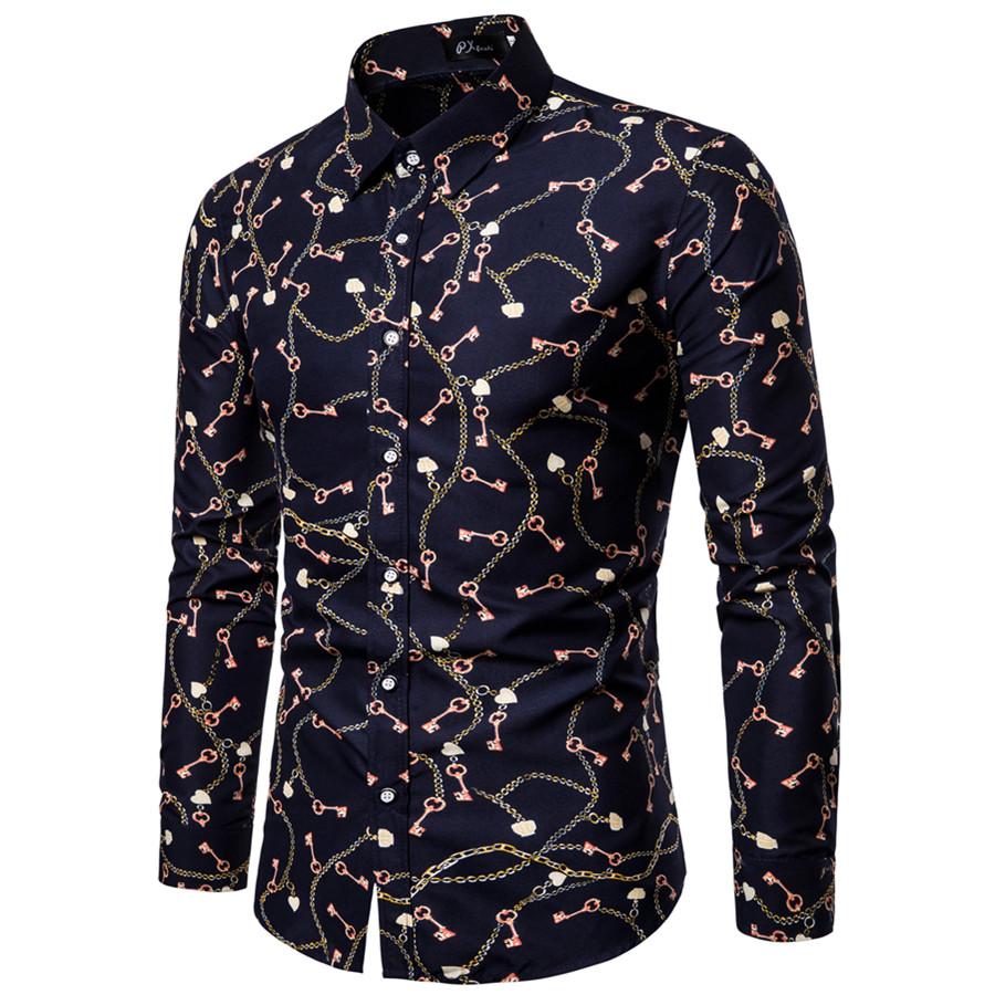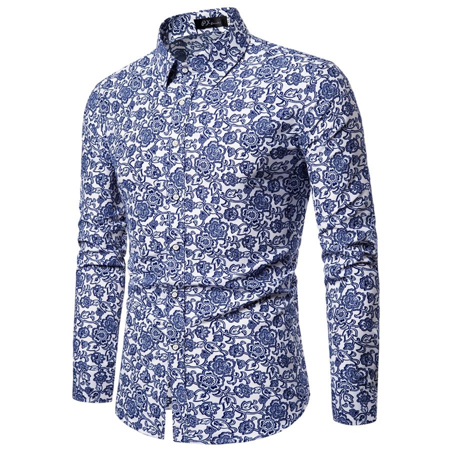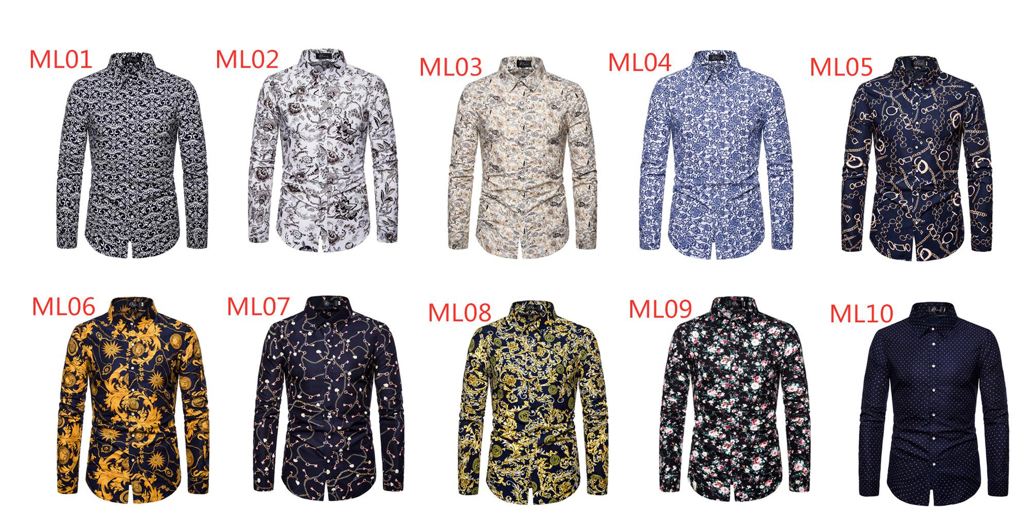 2022 Comercio Exterior Nueva Camisa Casual Floral para Hombre Talla Europea Moda Slim-fit Solapa Estampada Camisa de Hombre