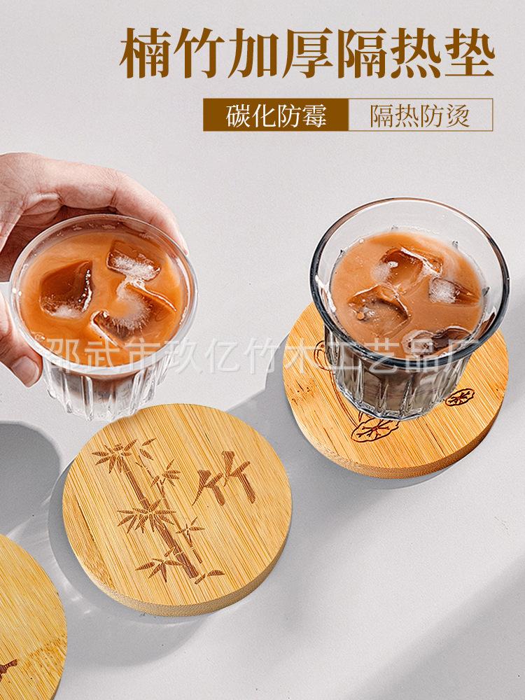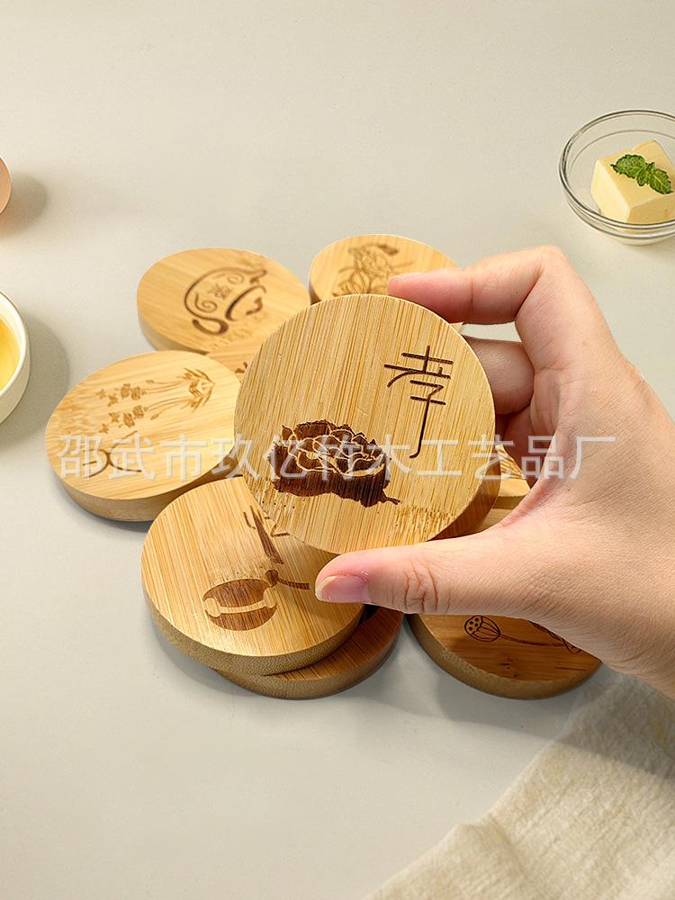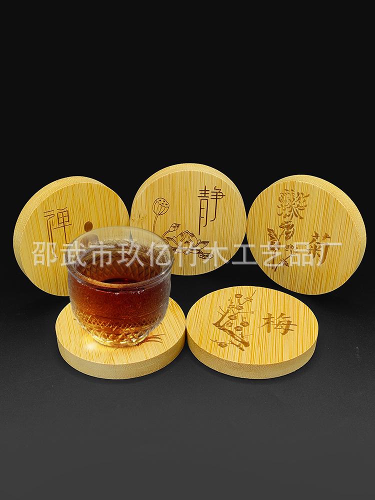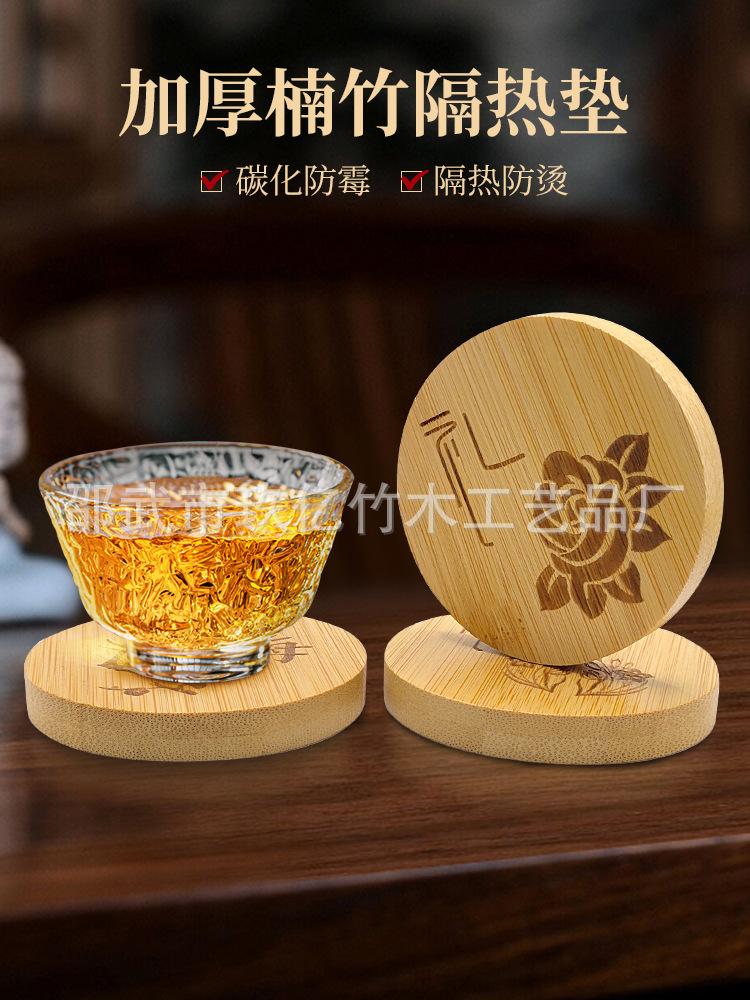Posavasos de Bambú Pequeño Redondo Almohadilla Aislante Bandeja de Madera de Bambú Accesorios para Juego de Té de Mesa de Café para el Hogar Soporte para Copa de Vino Manteles Individuales