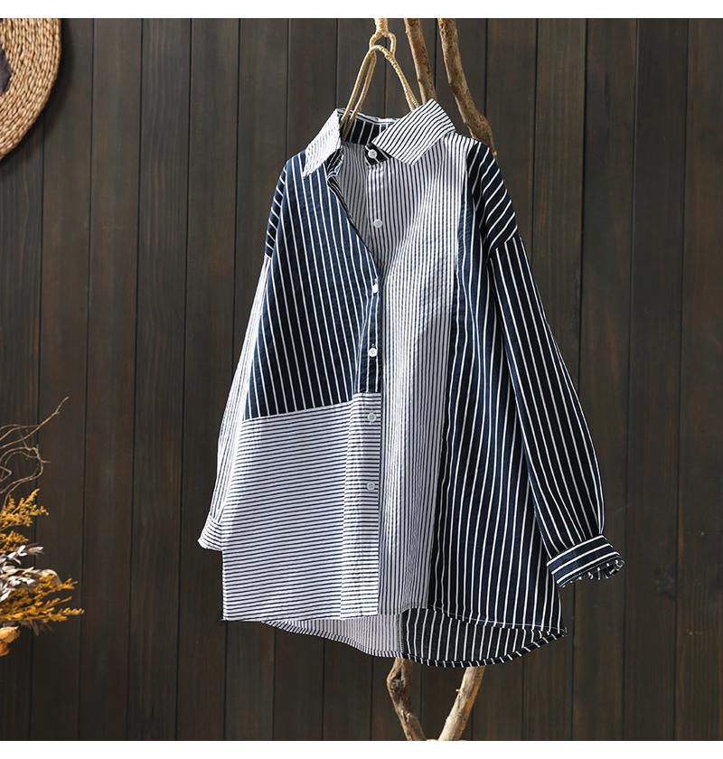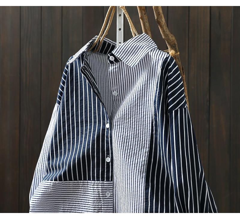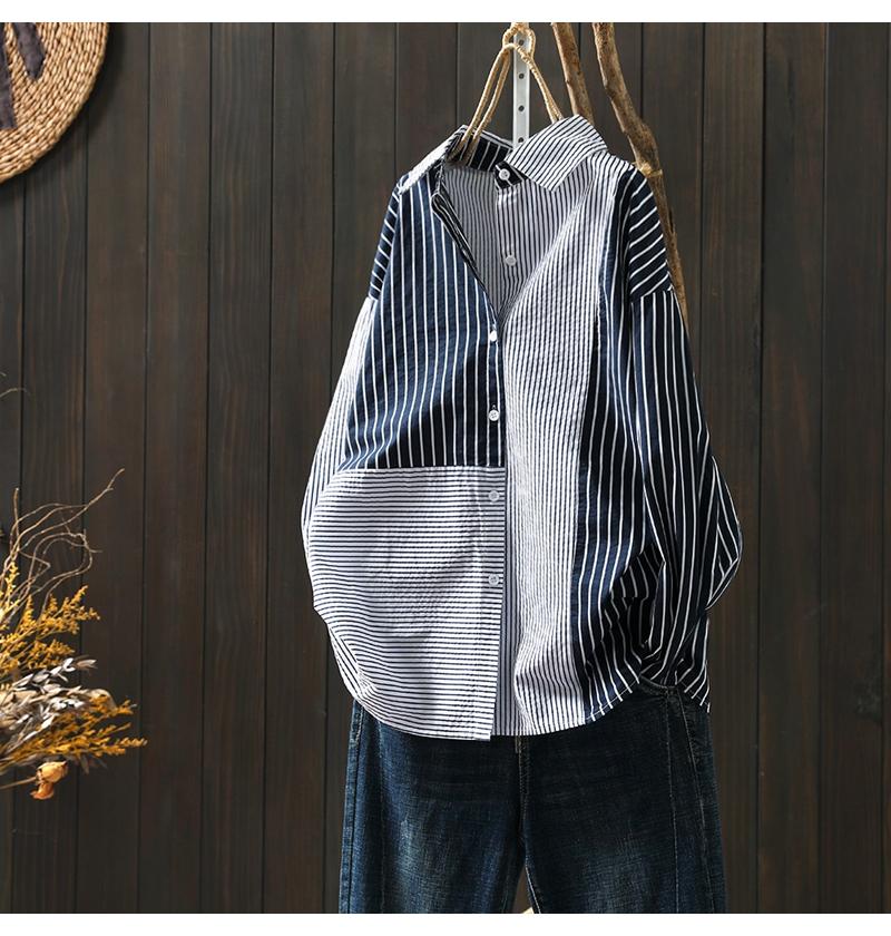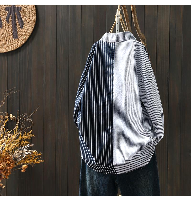Ropa de Otoño 2025 Camisa de Rayas de Manga Larga Empalmada para Mujer Sentido del Diseño Nicho Casual Versátil Moda Top