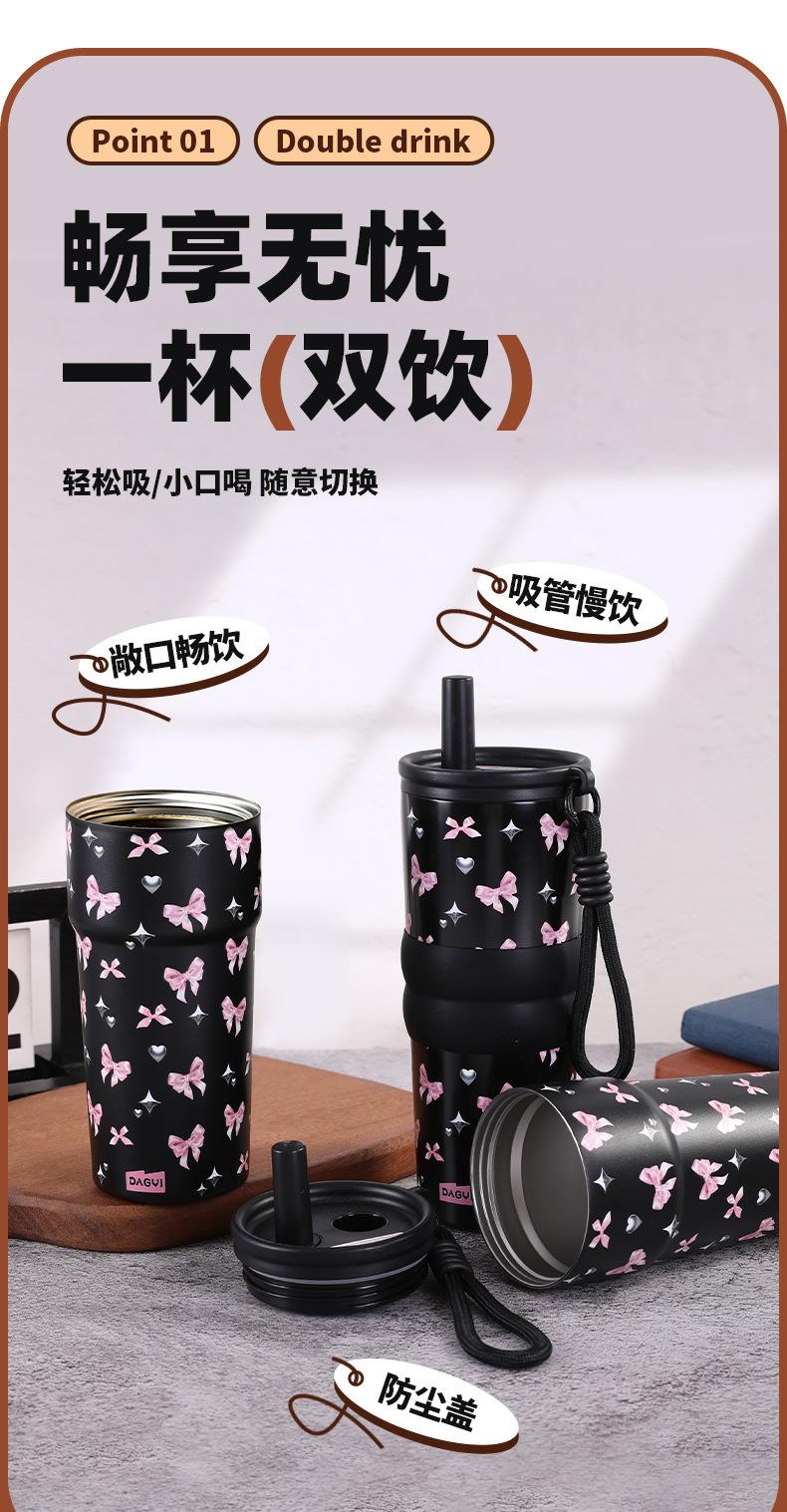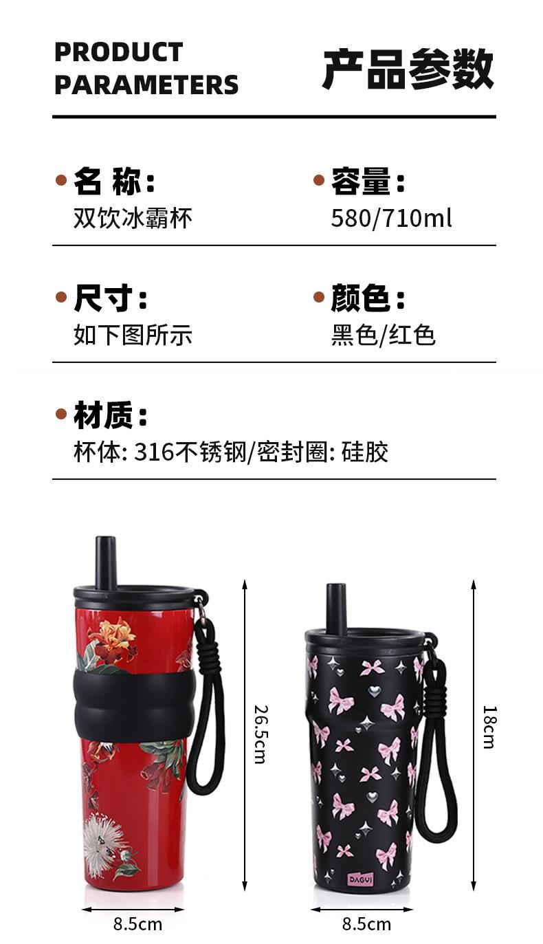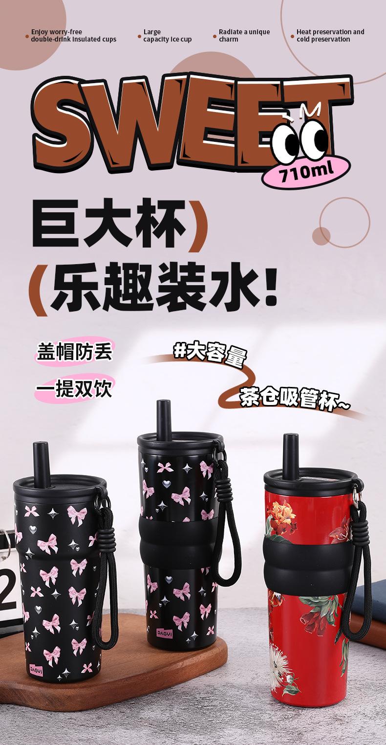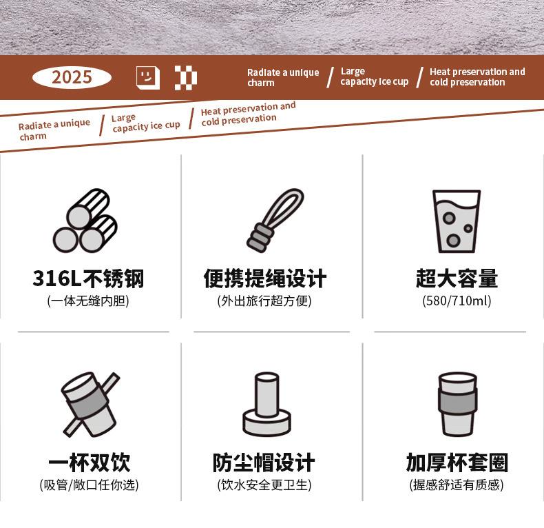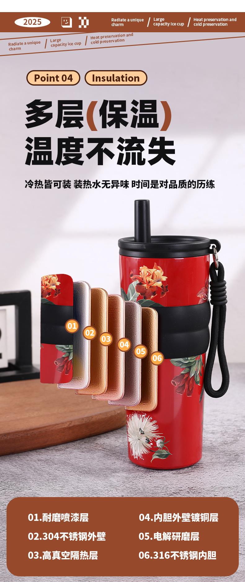 Taza helada de alta calidad y gran capacidad para mantener el frío, taza aislada de acero inoxidable 316, viaje al aire libre con cuerda, taza con pajita