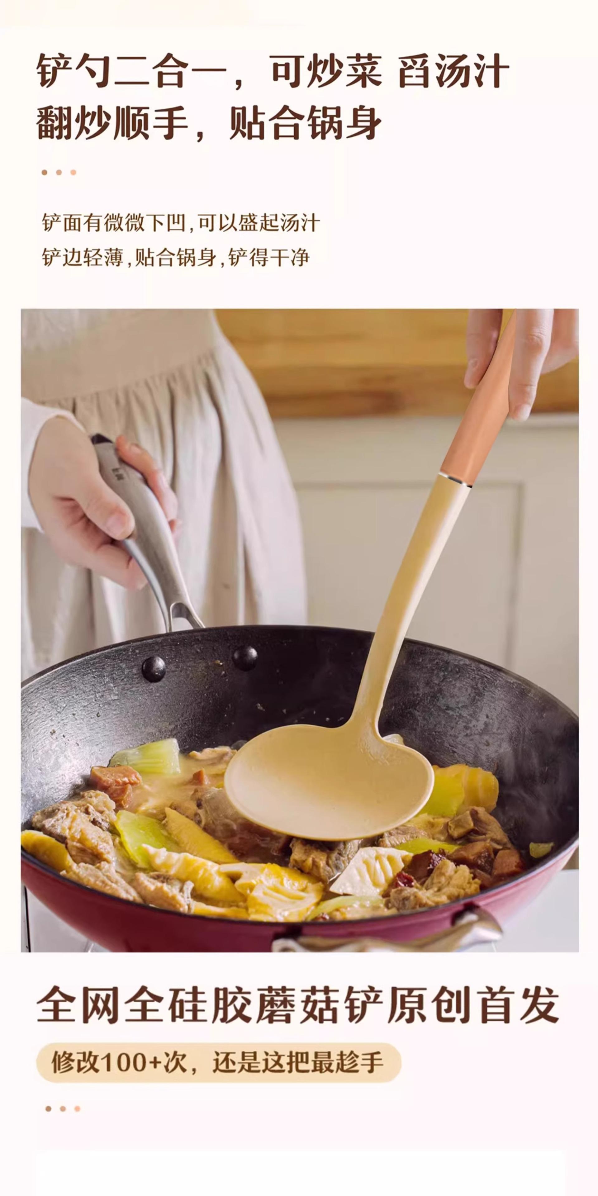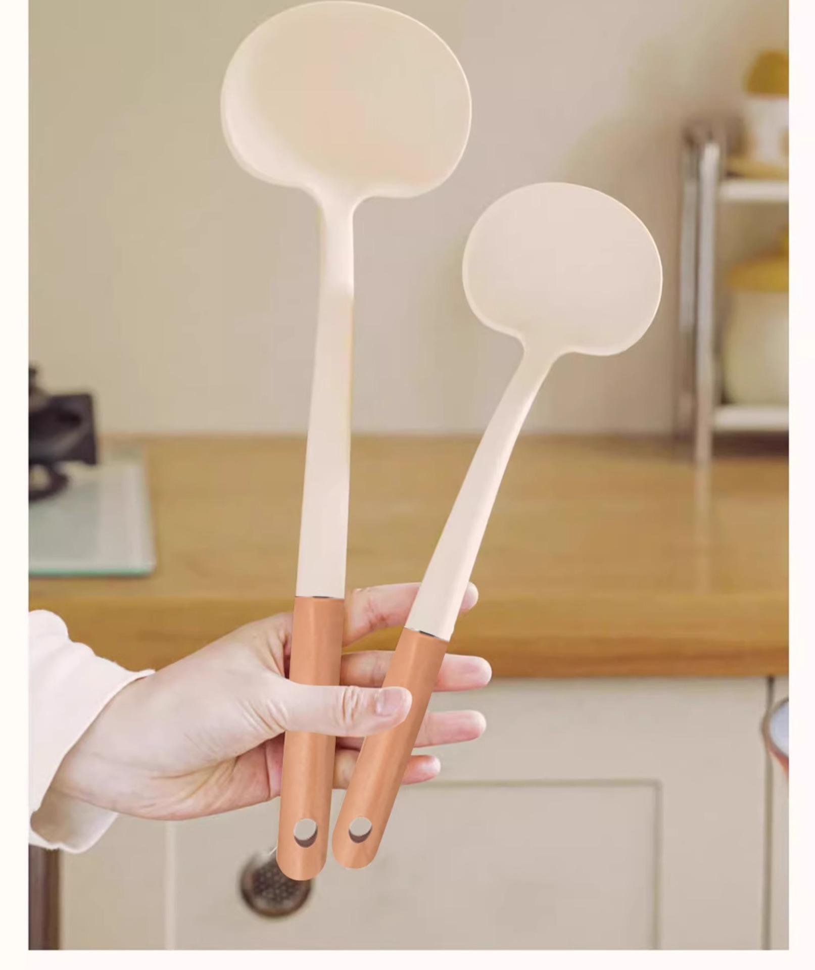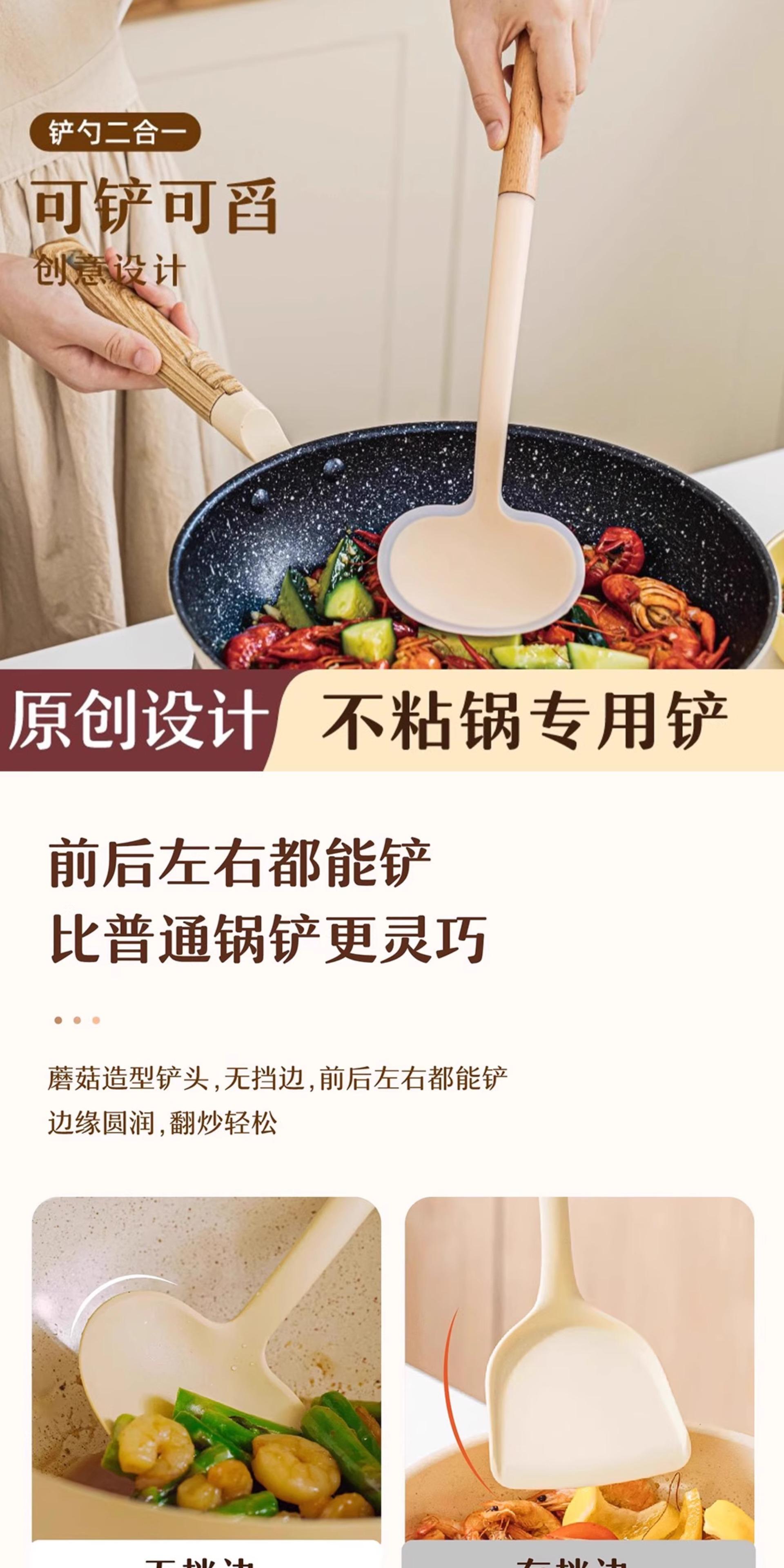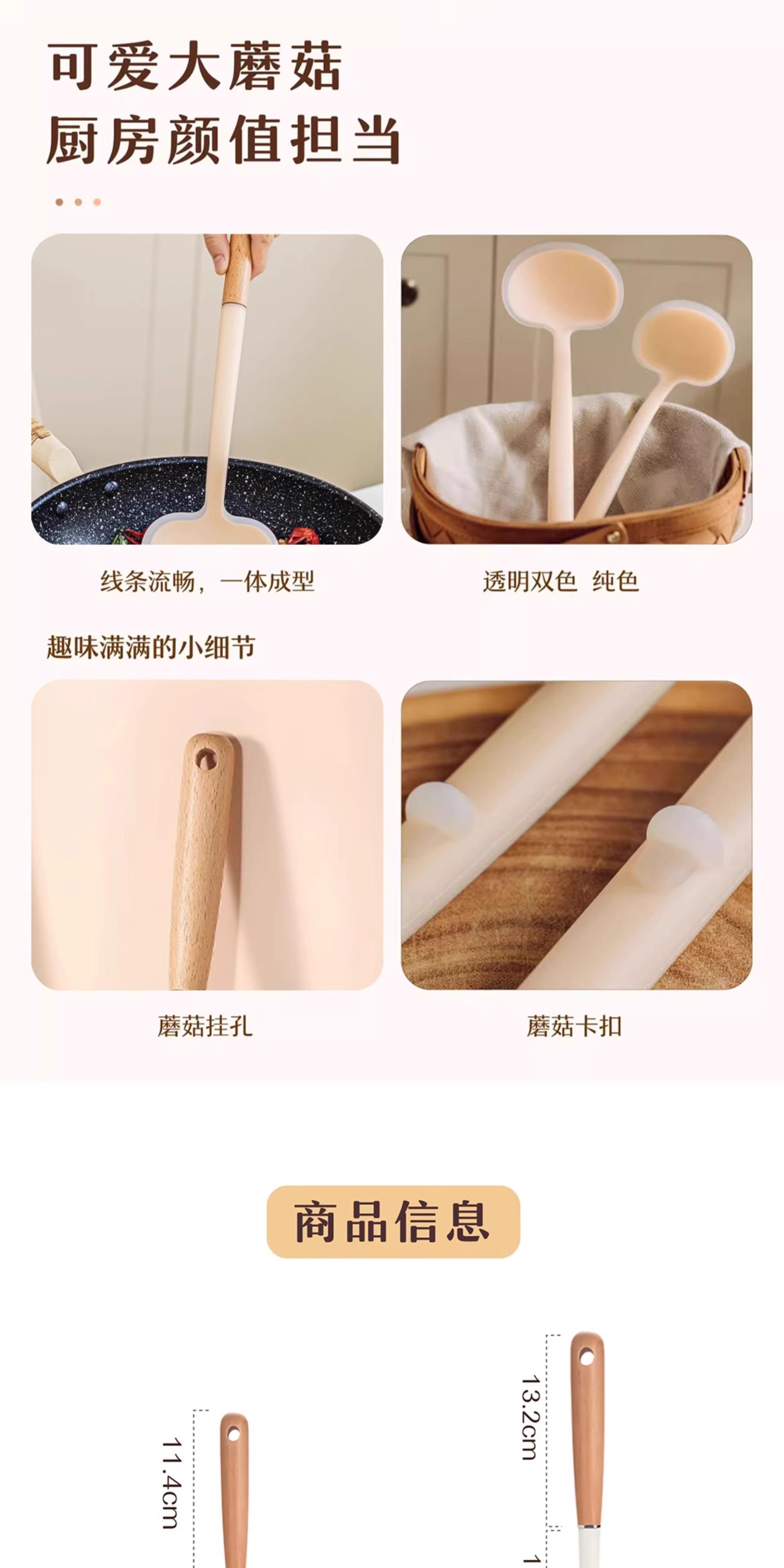 Wooden Handle Silicone Mushroom Spatula [1 piece] Spatula and Spoon Two-in-One/Non-Stick