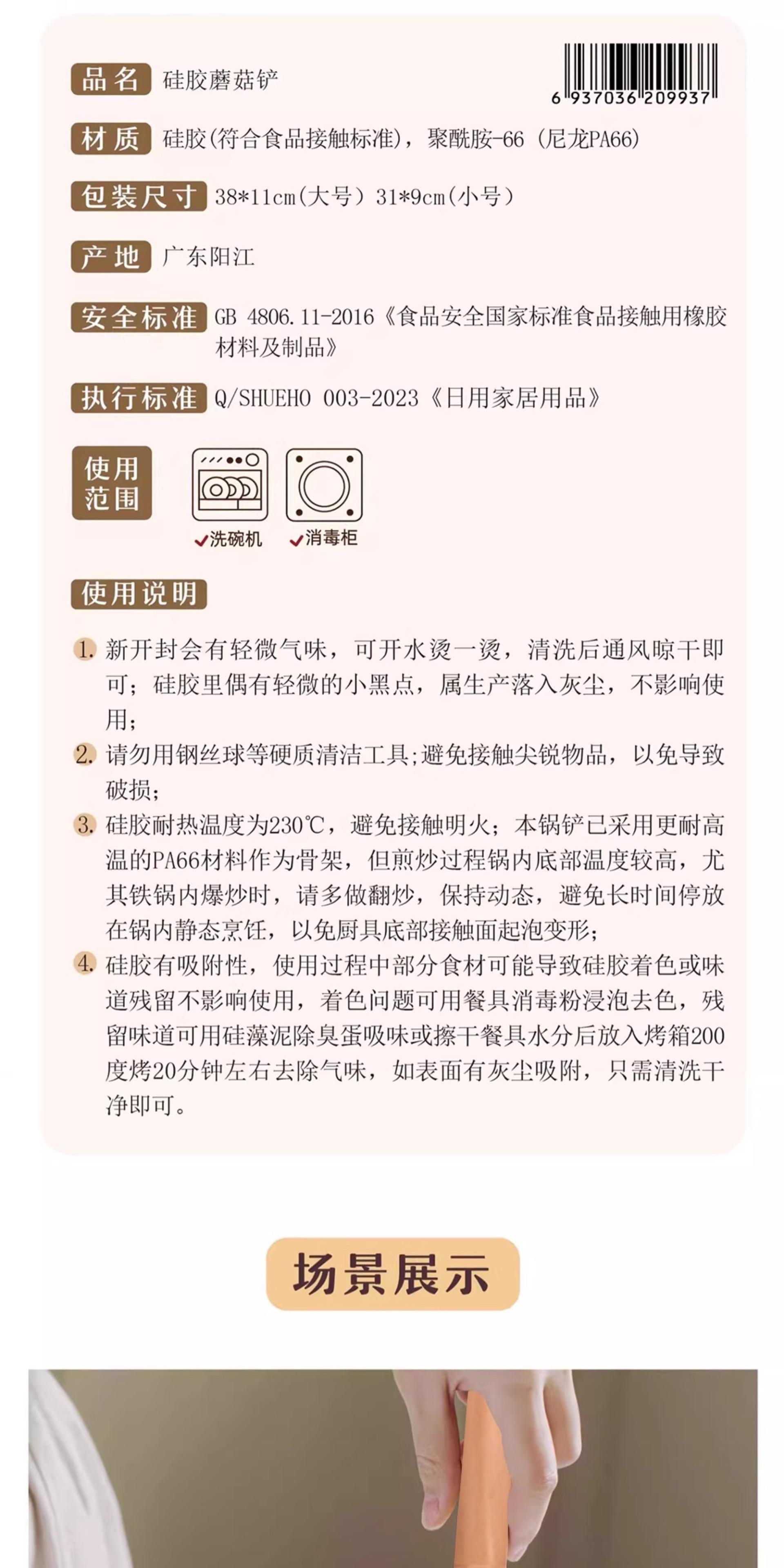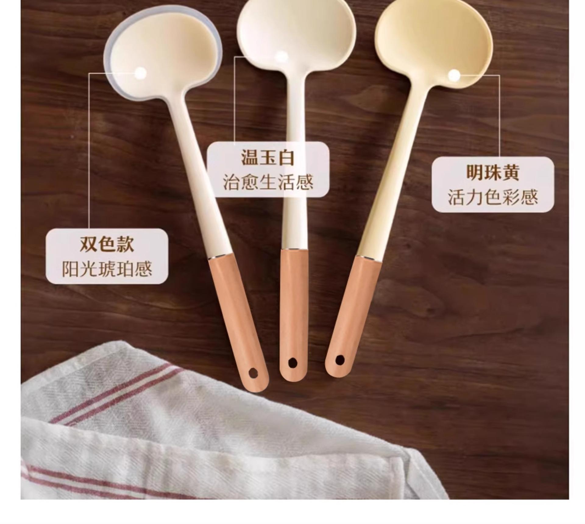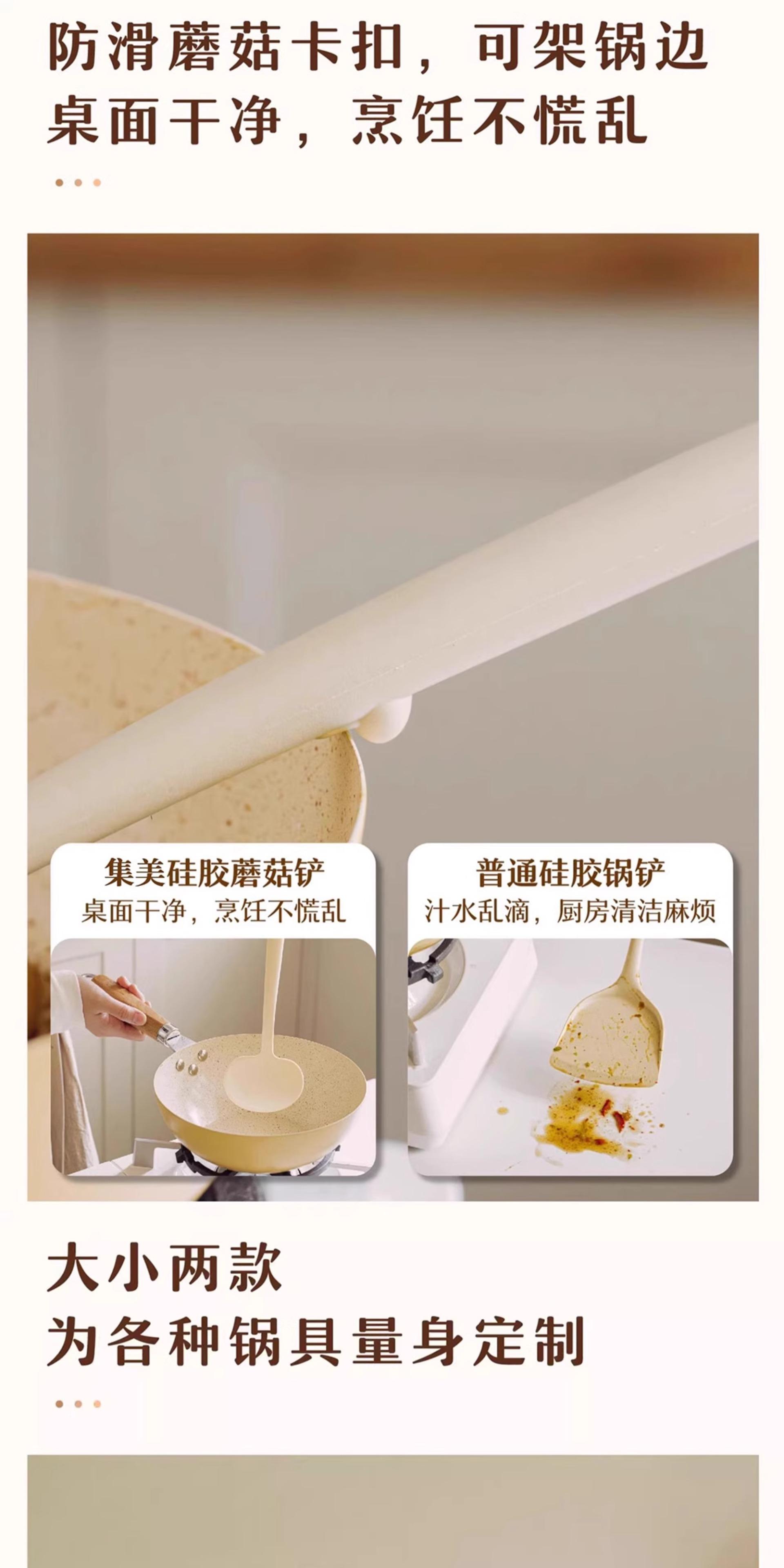 Wooden Handle Silicone Mushroom Spatula [1 piece] Spatula and Spoon Two-in-One/Non-Stick