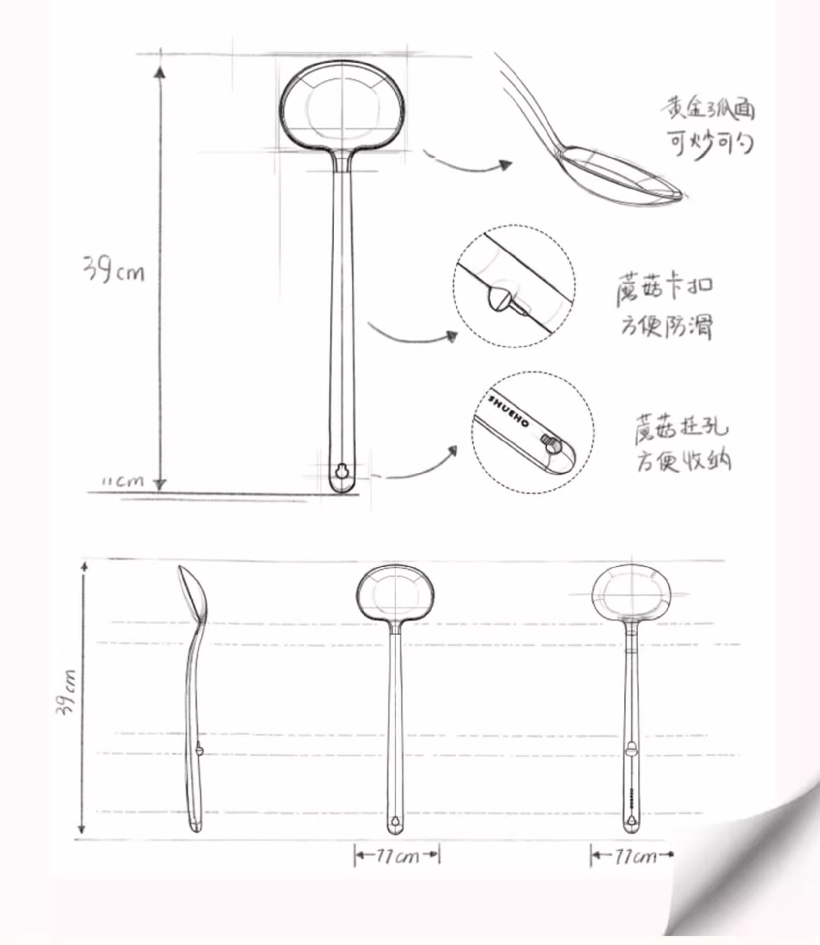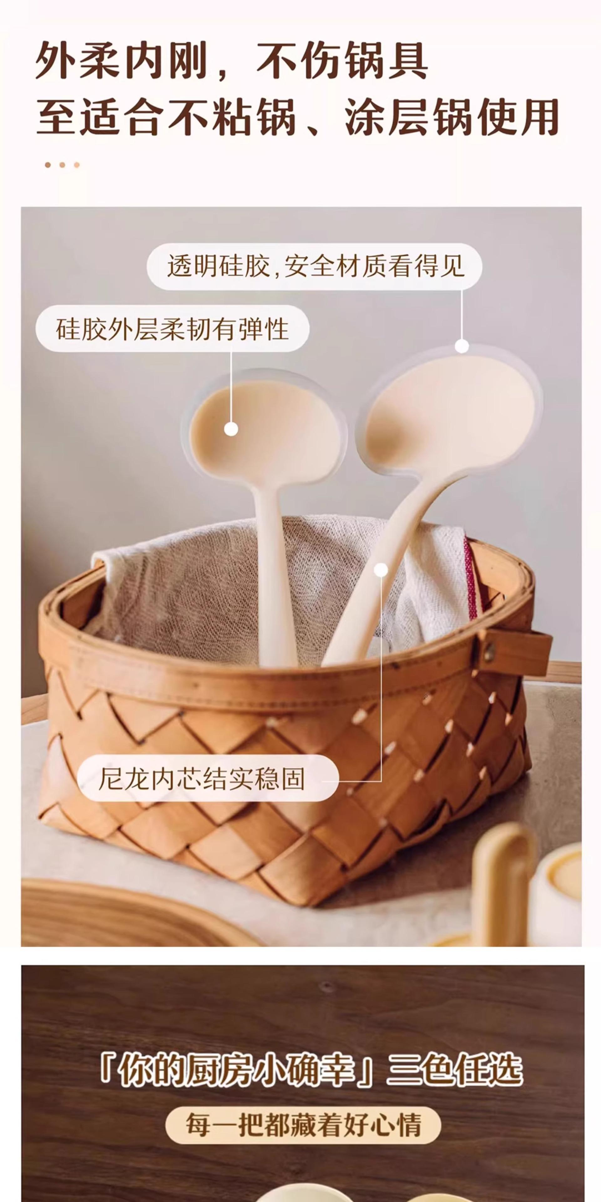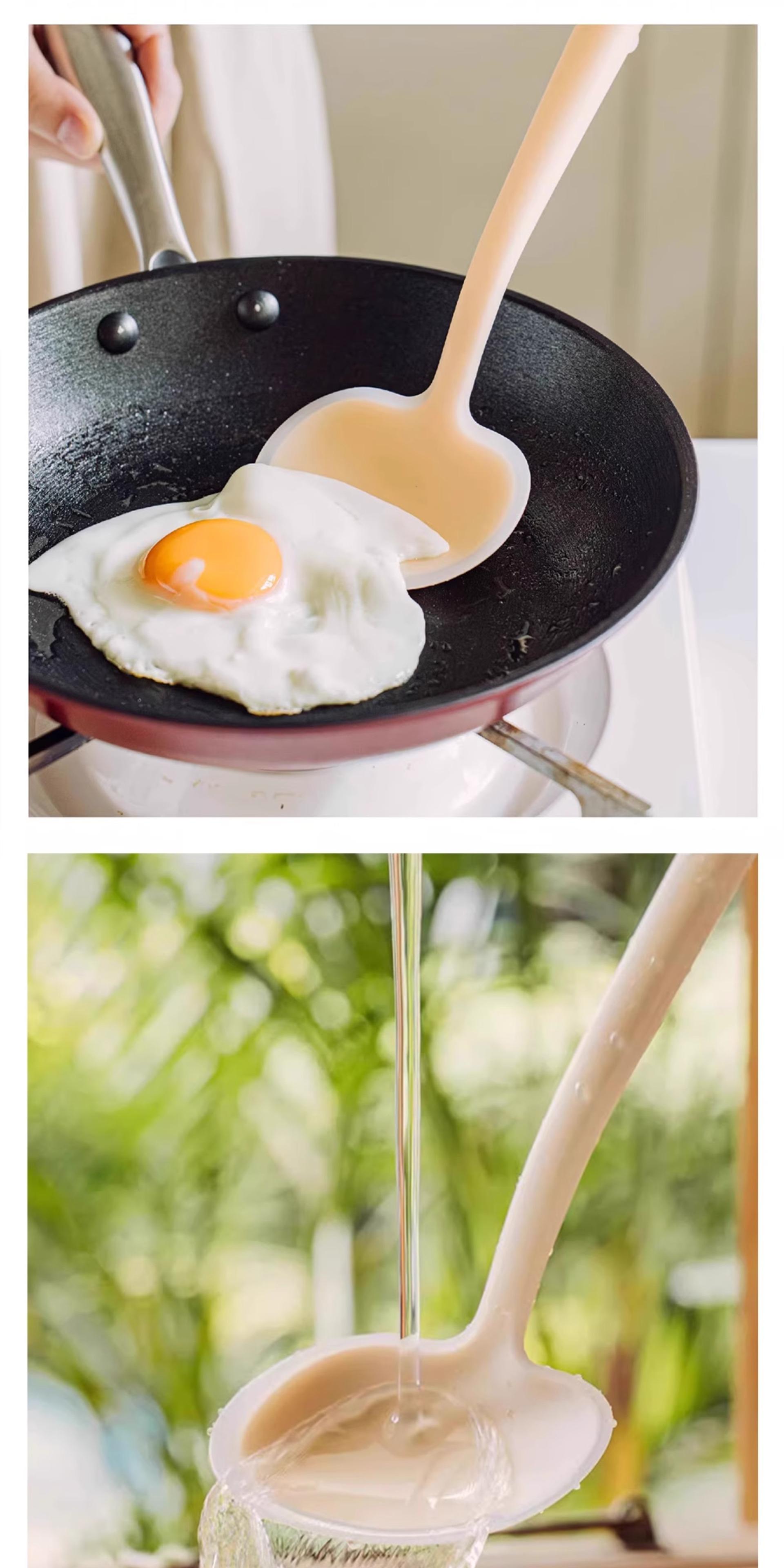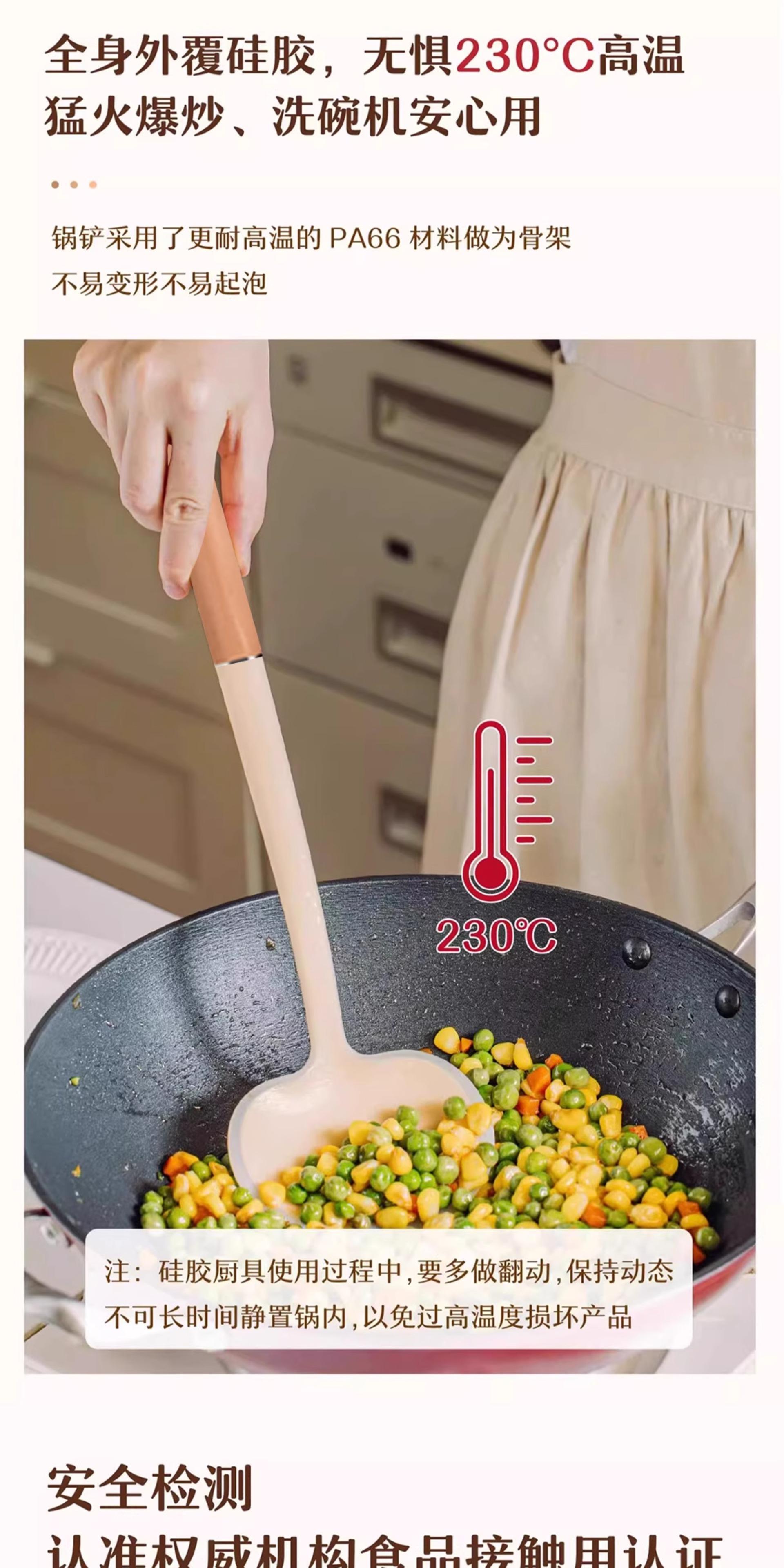 Wooden Handle Silicone Mushroom Spatula [1 piece] Spatula and Spoon Two-in-One/Non-Stick