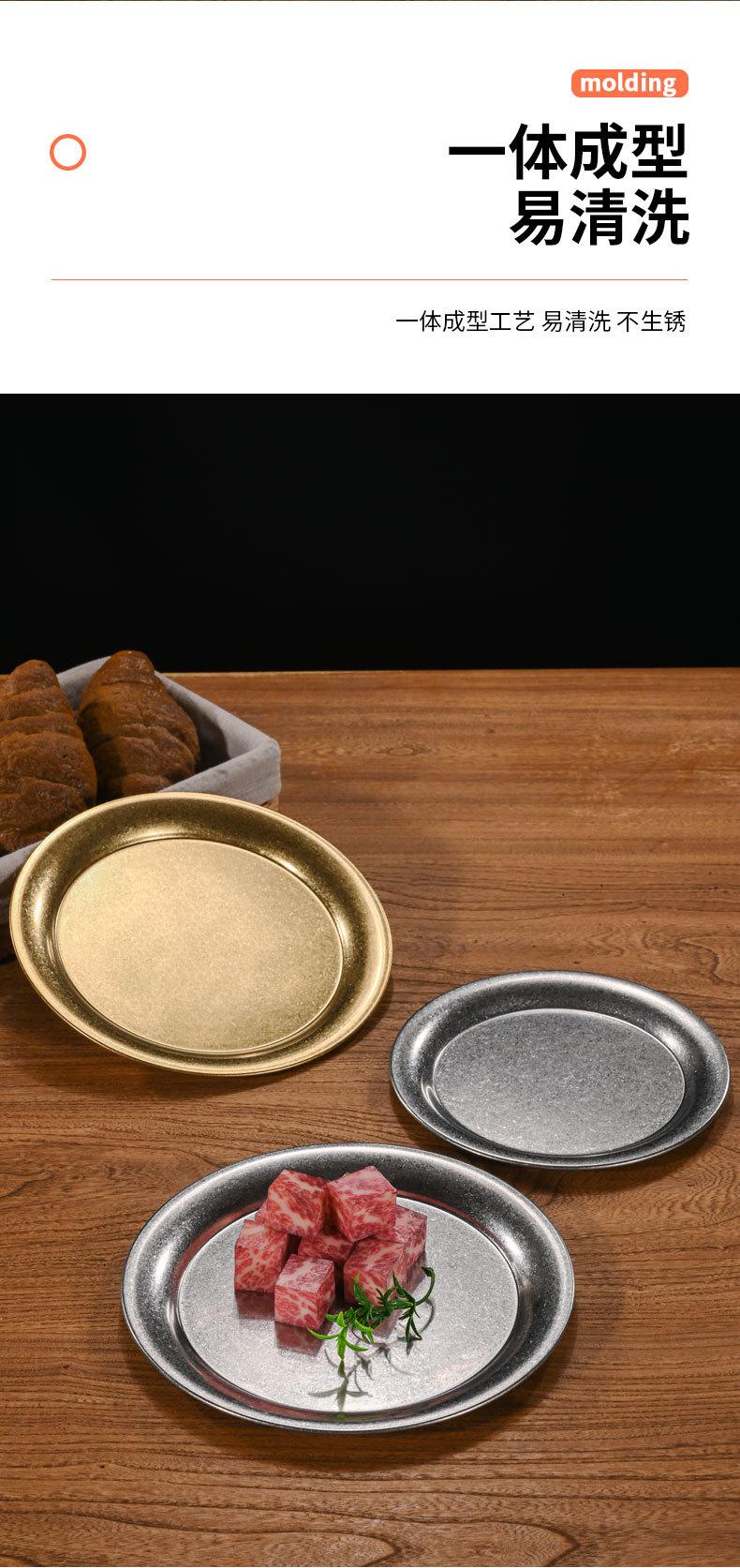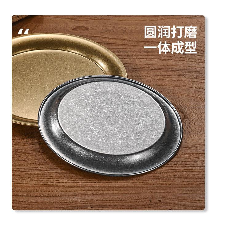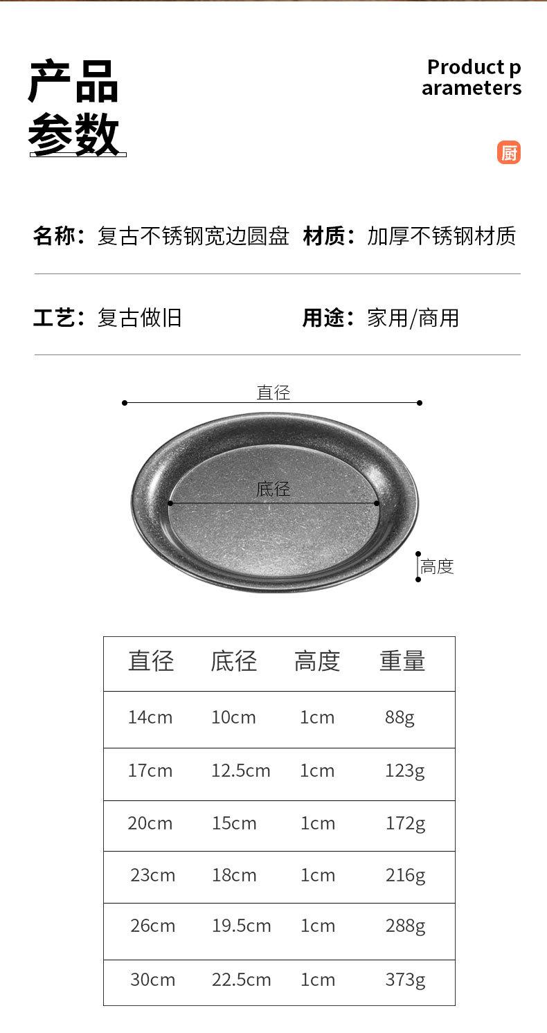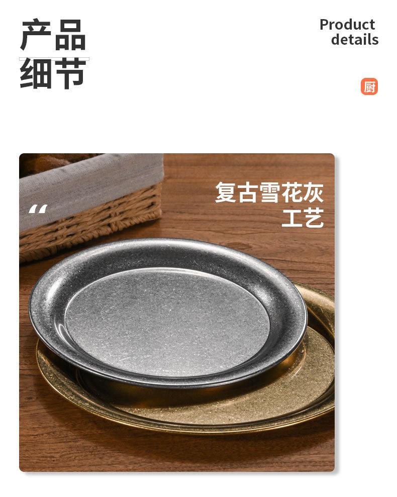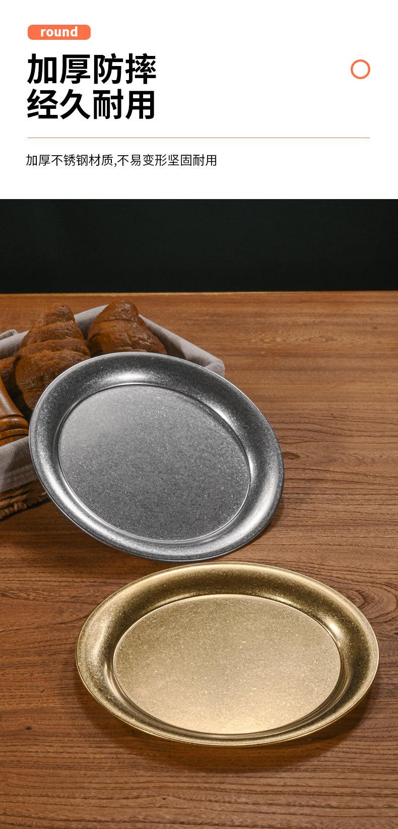Plato Redondo de Acero Inoxidable Retro de Ala Ancha Bandeja Comercial Envejecida Plato de Fondo Plano Plato Hondo para Postre para Restaurante Barbacoa Asado de Carne