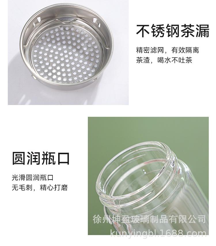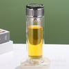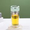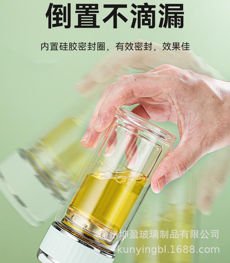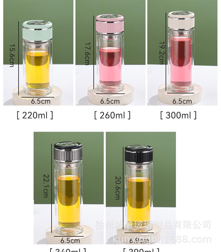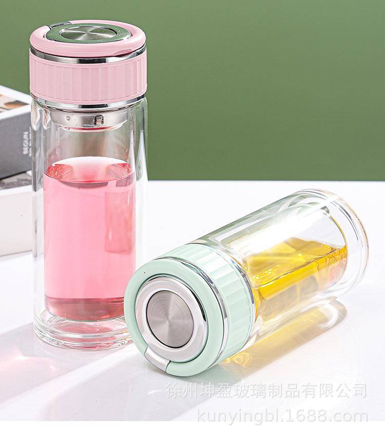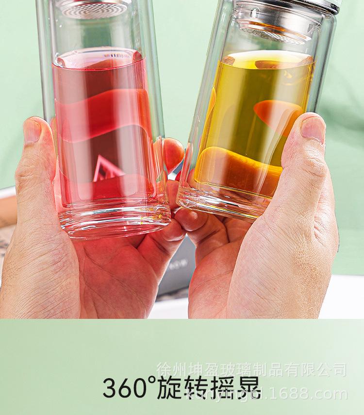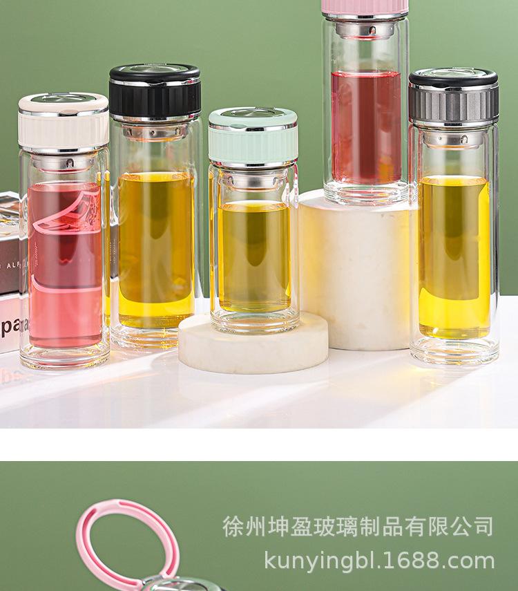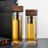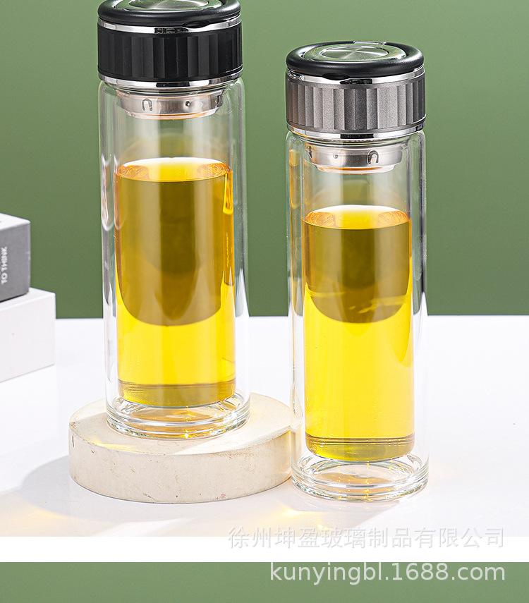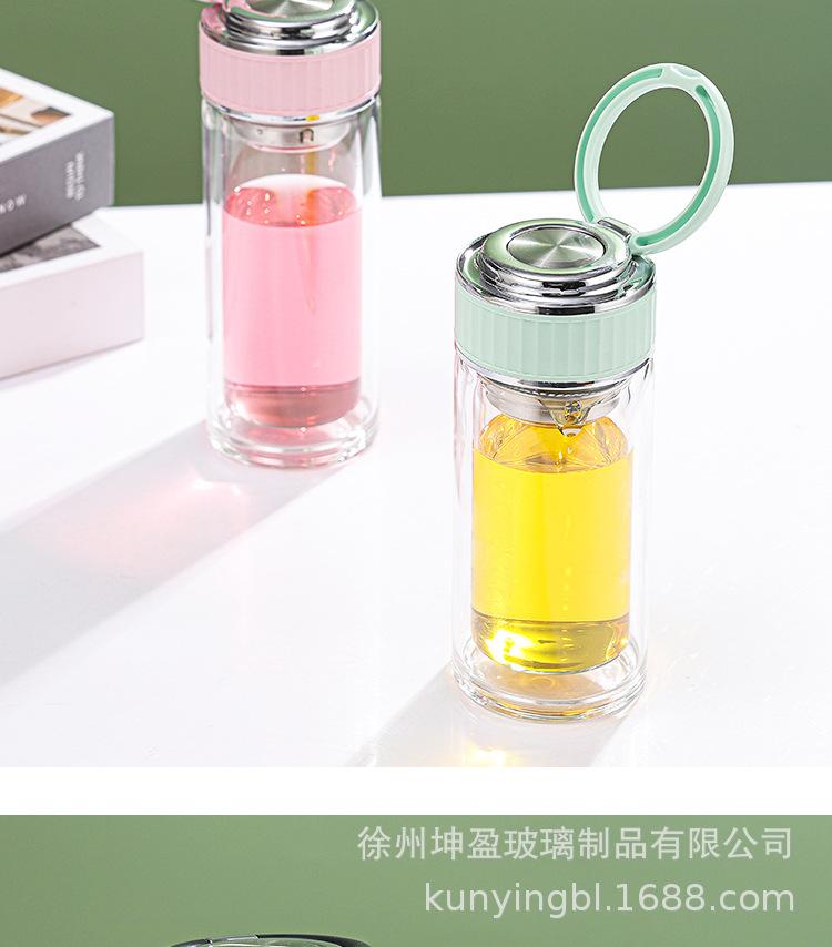 Vaso de agua de vidrio de doble capa de borosilicato alto resistente al calor con asa, separación de té y agua, taza de té, vaso de agua de vidrio engrosado para oficina