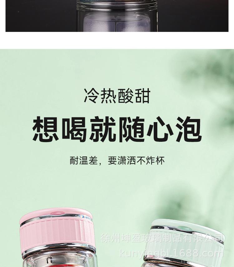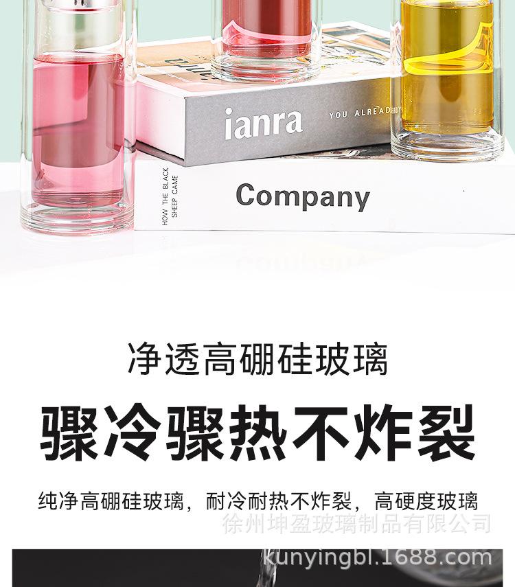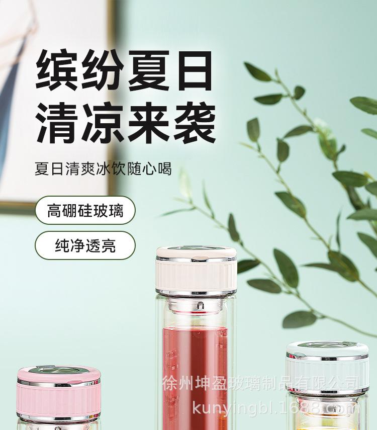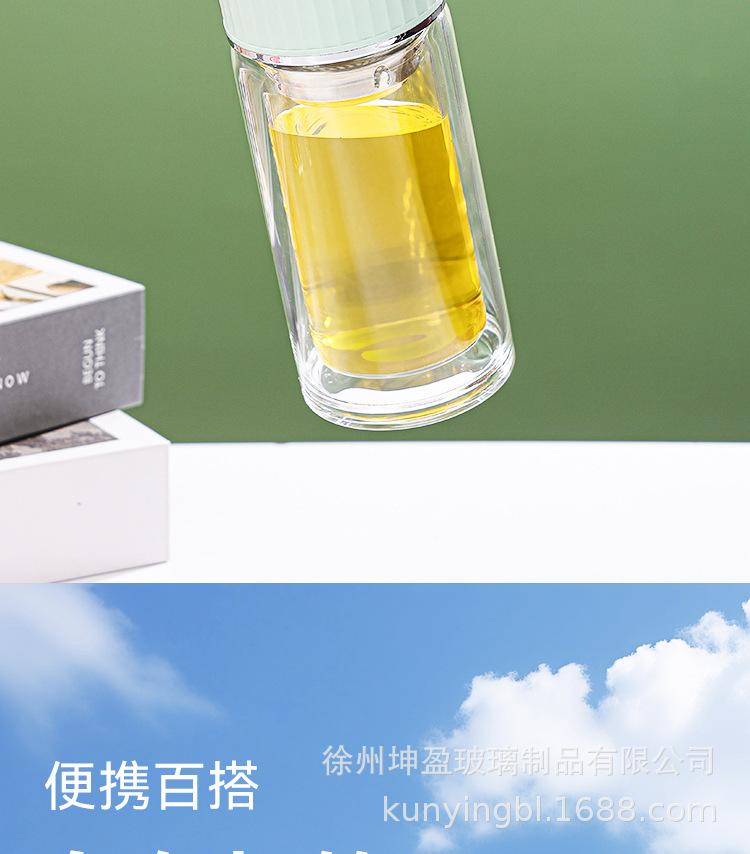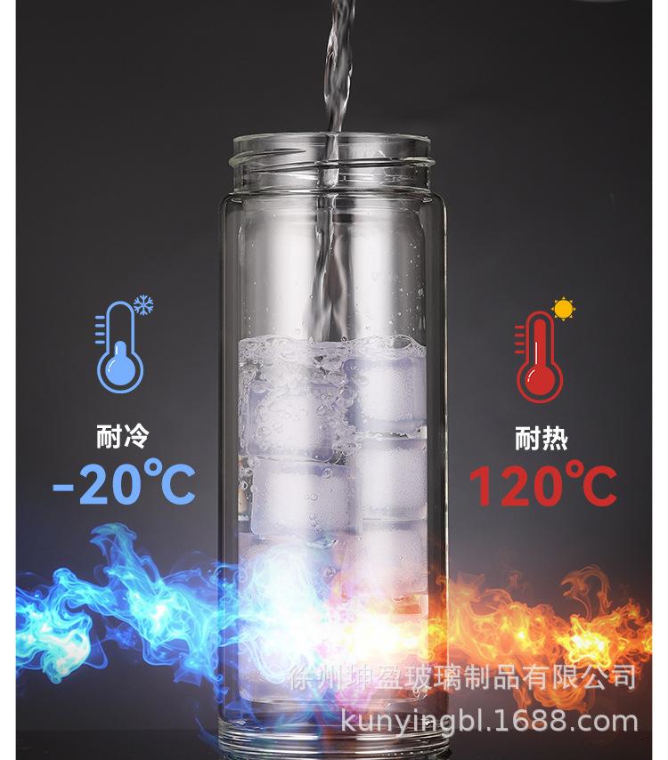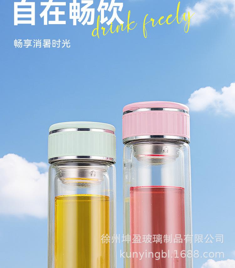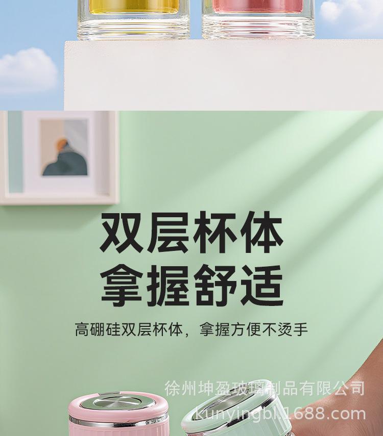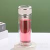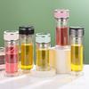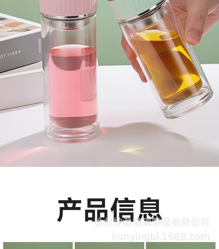 Vaso de agua de vidrio de doble capa de borosilicato alto resistente al calor con asa, separación de té y agua, taza de té, vaso de agua de vidrio engrosado para oficina