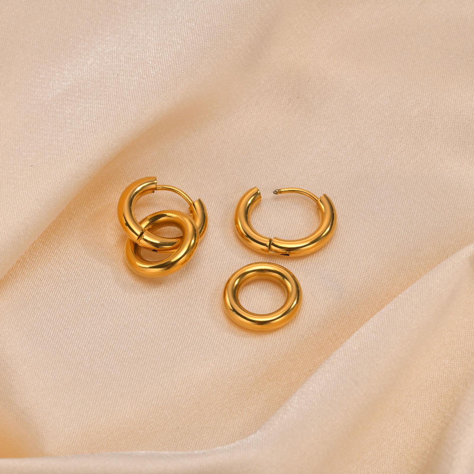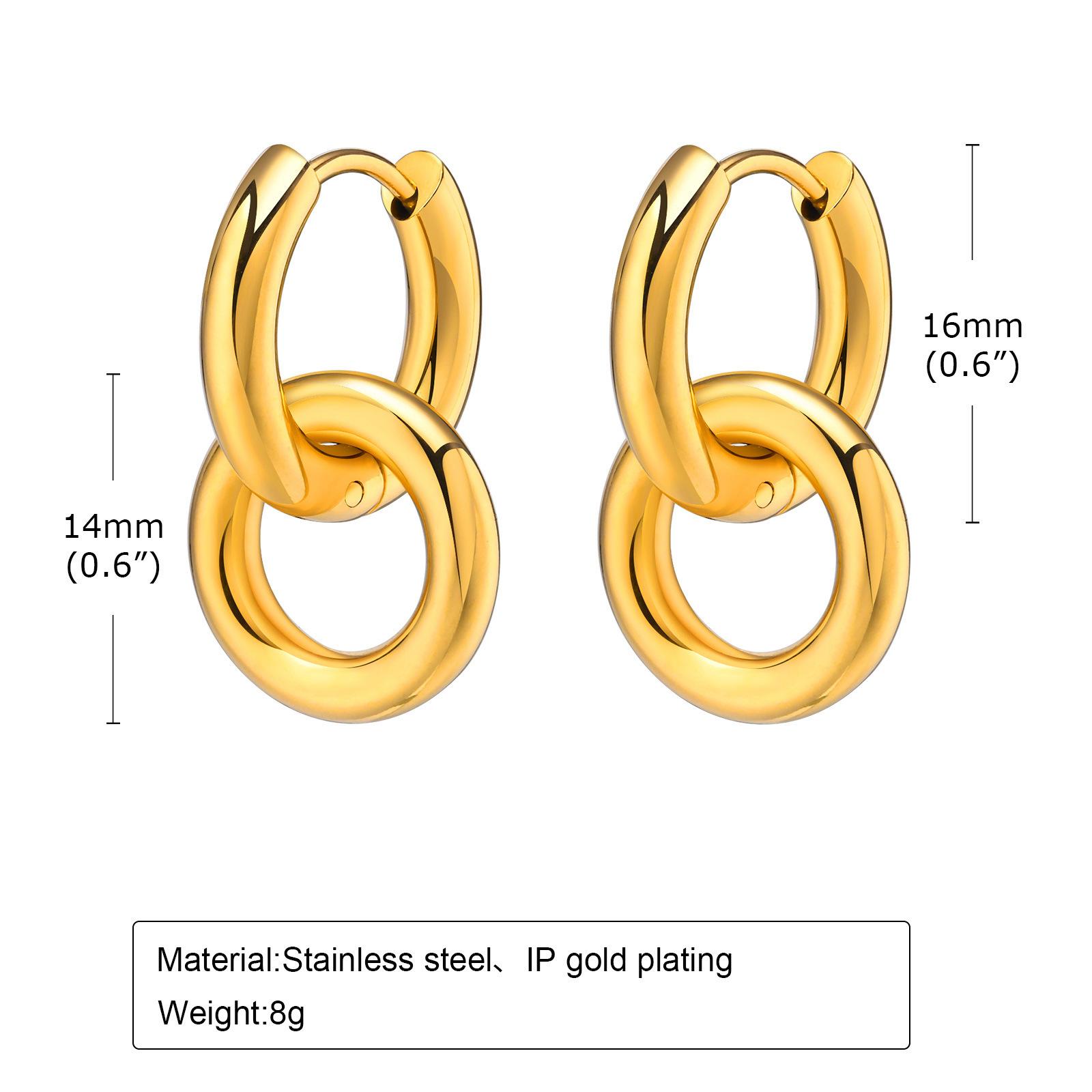 Accesorios transfronterizos aretes de doble aro de acero inoxidable personalidad moda oro femenino joyería de agua quanxi ED-701