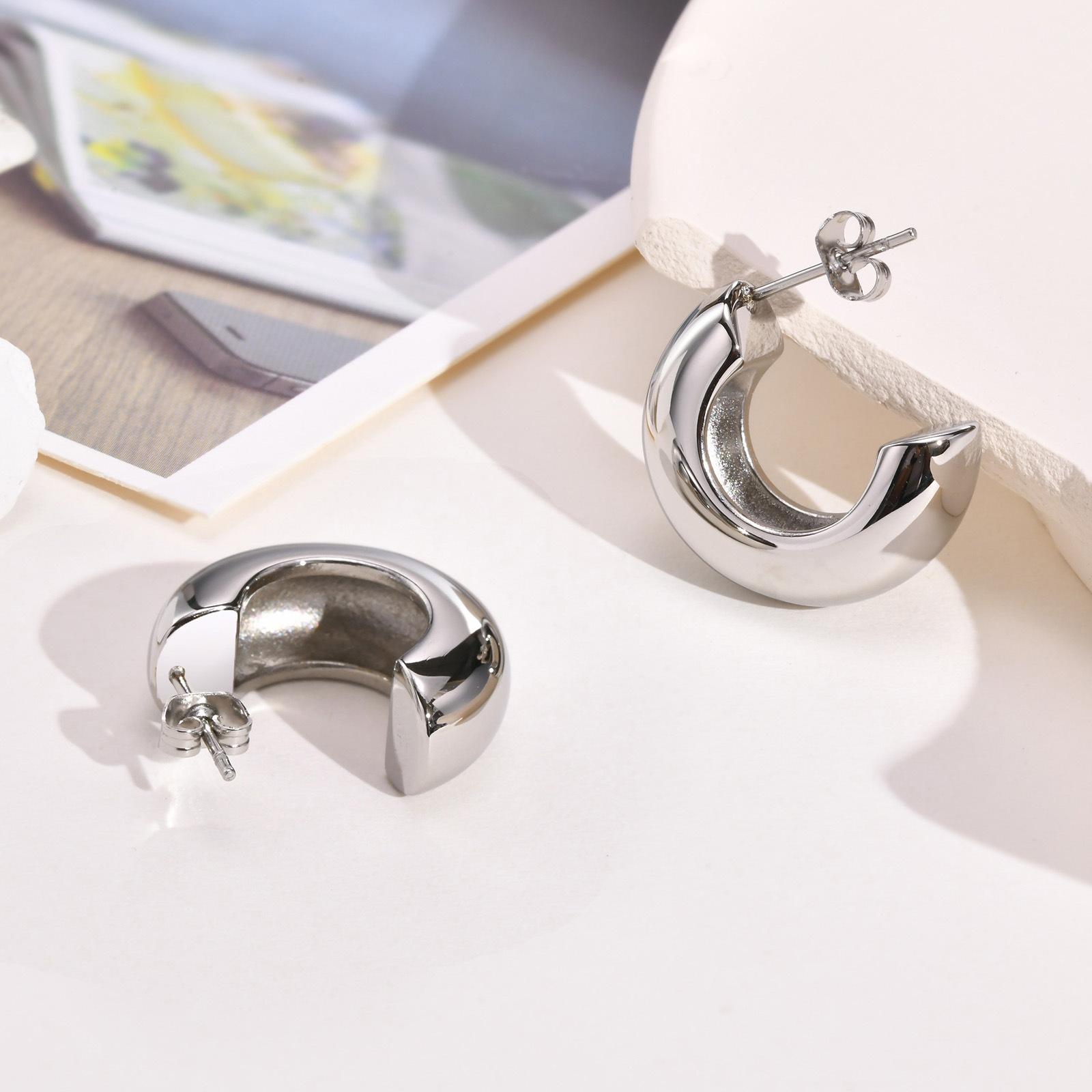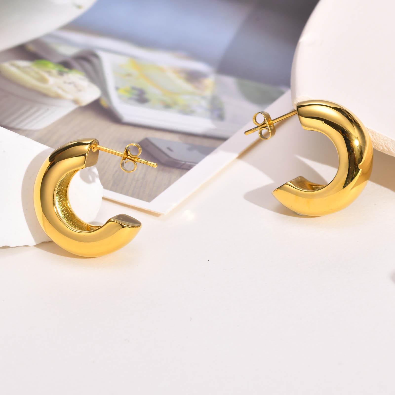 Compra Pendientes europeos y americanos de acero inoxidable color nude en forma de C, pendientes dorados, pendientes sencillos personalizados para mujer, al por mayor ED-606 al por mayor en Joom.pro