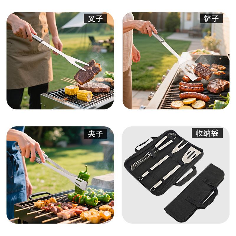 Juego de Tres Piezas para Parrilla de Acero Inoxidable para Barbacoa Estilo Camping al Aire Libre Juego de Herramientas para Barbacoa Pinza para Barbacoa Pinza para Barbacoa Combinación Parrilla