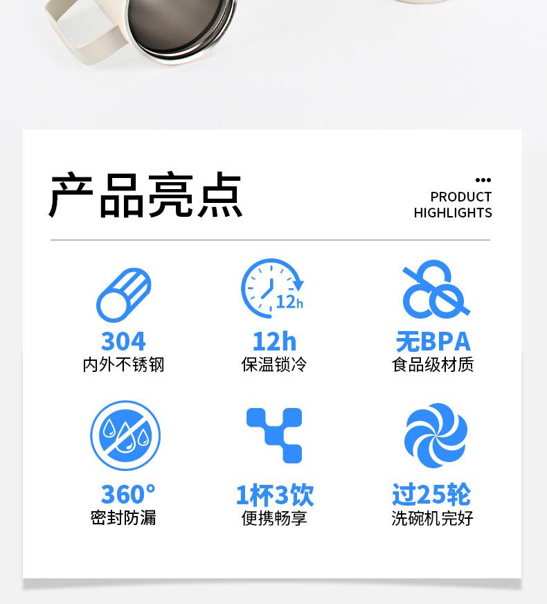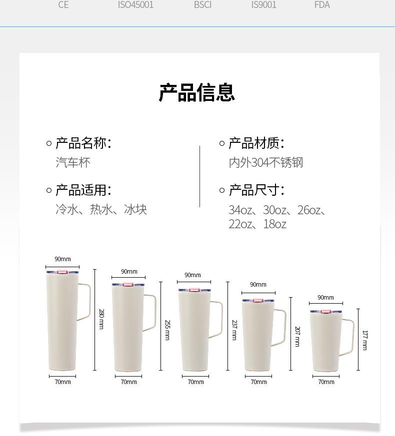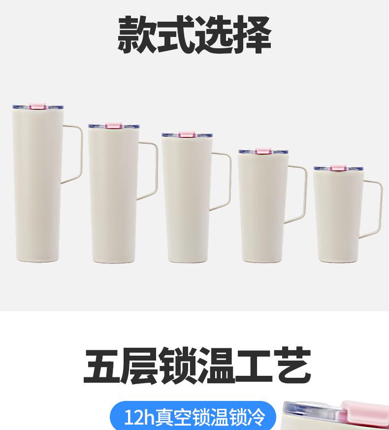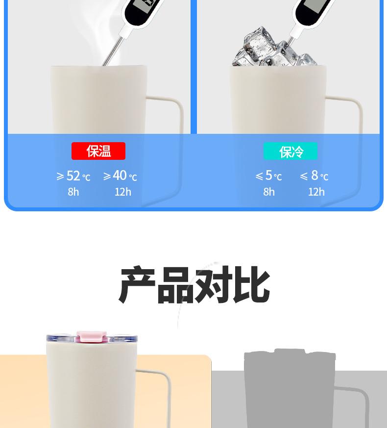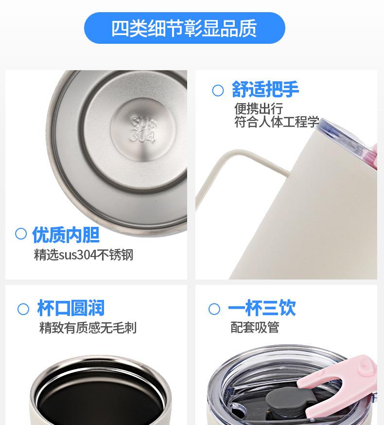 Taza para Coche con Asa Taza para Agua de Gran Capacidad Termo para Coche de Acero Inoxidable 304 con Popote Taza para Café Leche Té