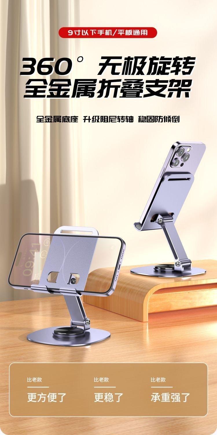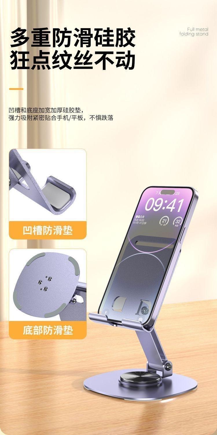 Compra Soporte para teléfono móvil totalmente metálico, soporte de escritorio para transmisión en vivo y aprendizaje, soporte universal para teléfono móvil, tableta, iPad, base giratoria 360 al por mayor en Joom.pro
