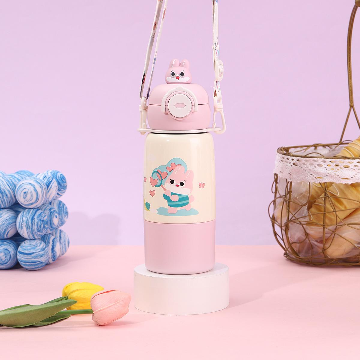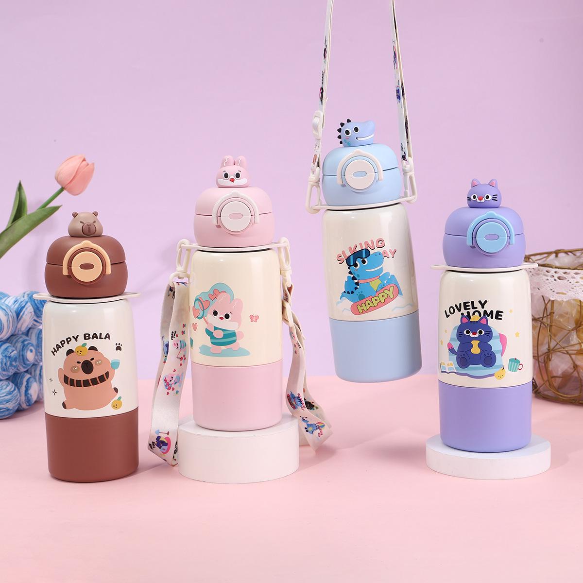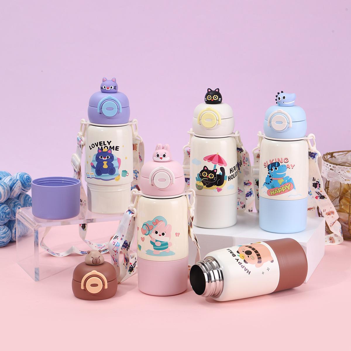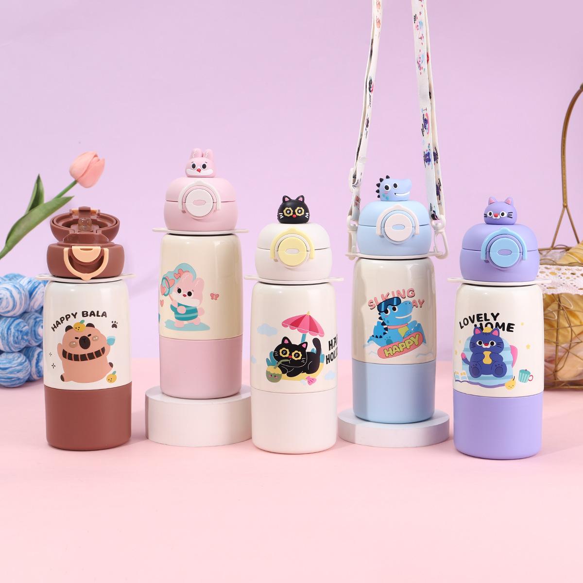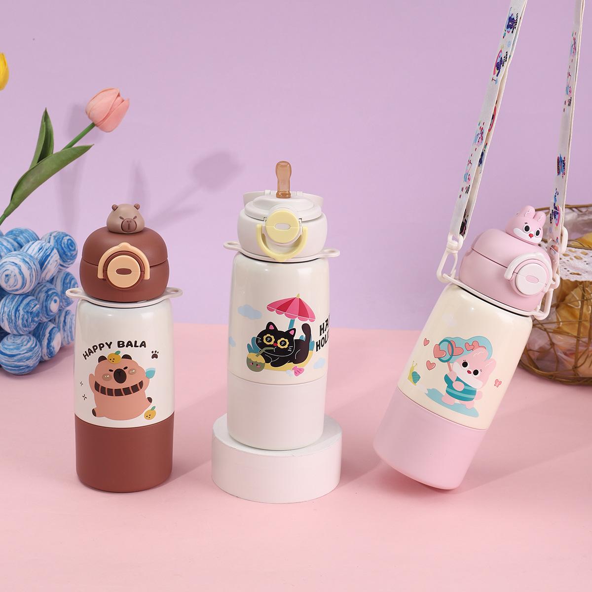 Nuevo Vaso Infantil Aislado para Tres Bebidas Lindo Dibujo Animado Acero Inoxidable 316 Vaso de Agua para Estudiante Vaso Portátil con Pajita para Exterior