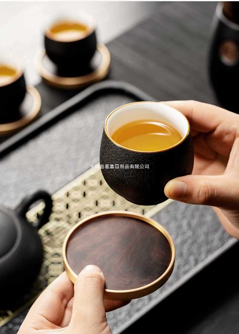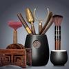 Walnut Cloud Ladder Tea Ceremony Rack + 6 Gentlemen + Tea Cloth + Ru Kiln 6 Round Tripod Cups