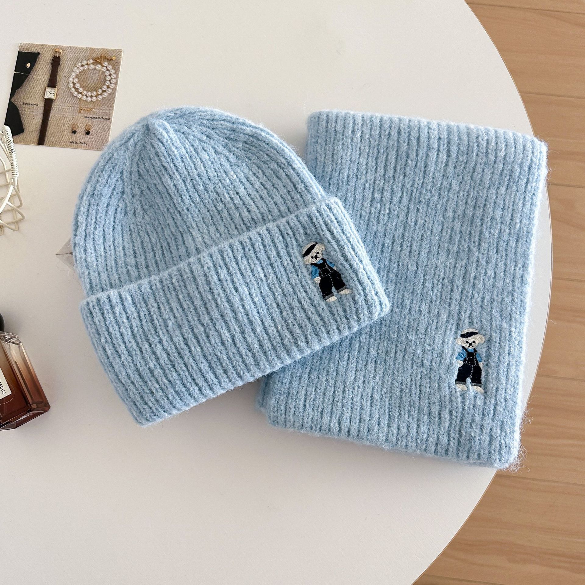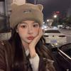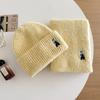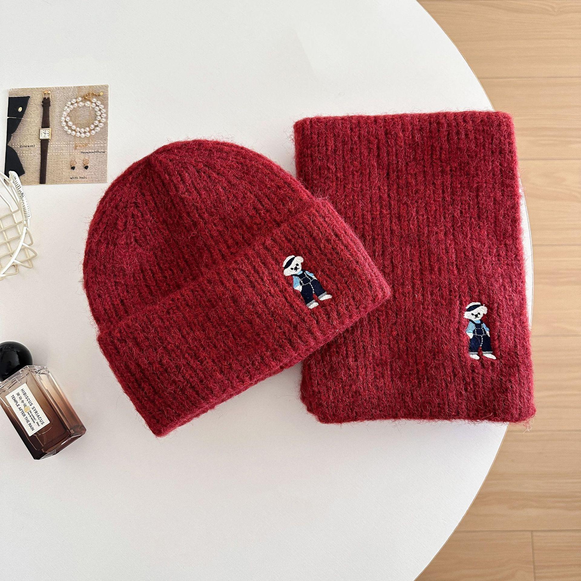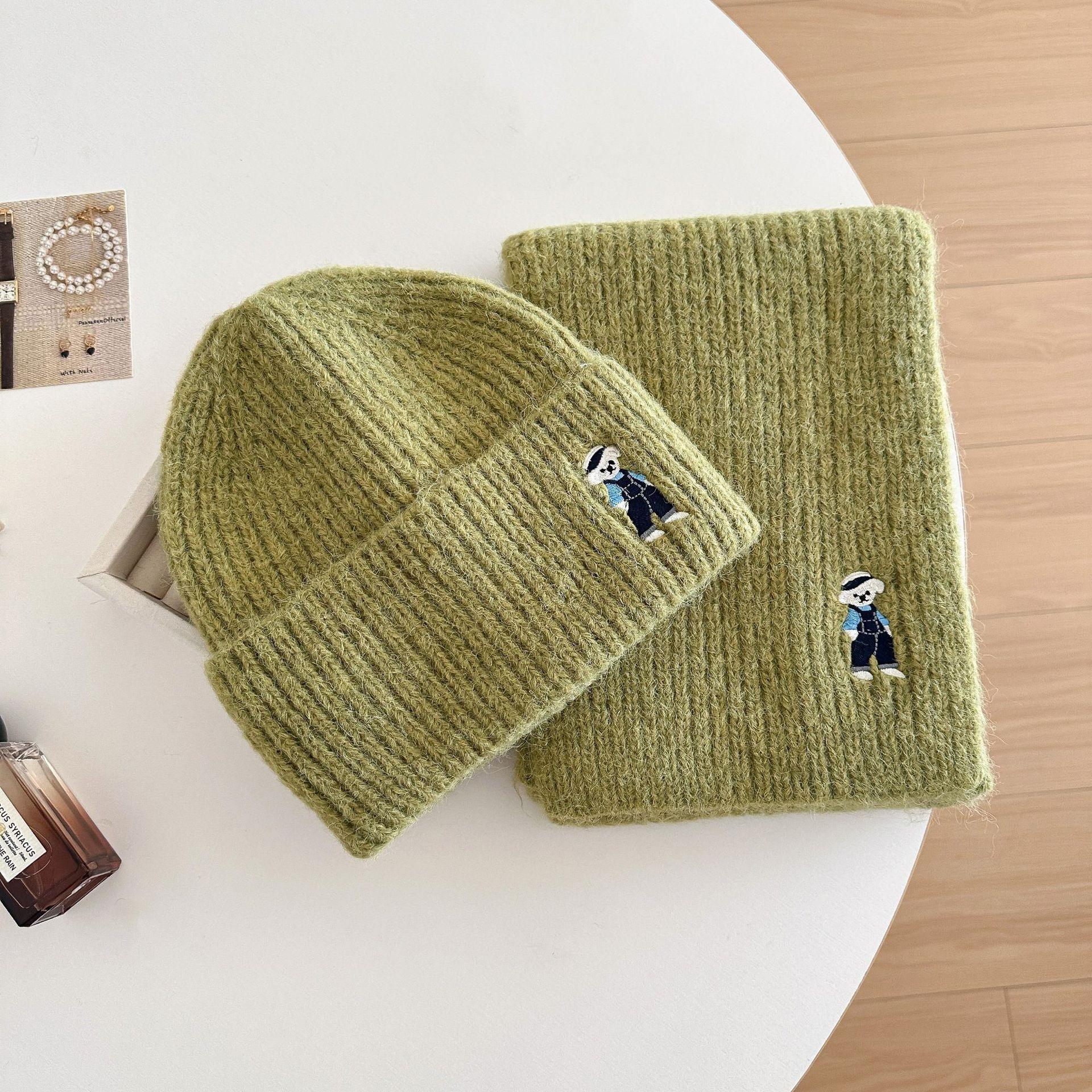 Lindo Bordado de Osito Bufanda Gorro de Punto de Lana para Mujer Otoño Invierno 2025 Nuevo Cálido Estudiante Pareja Calentador de Cuello