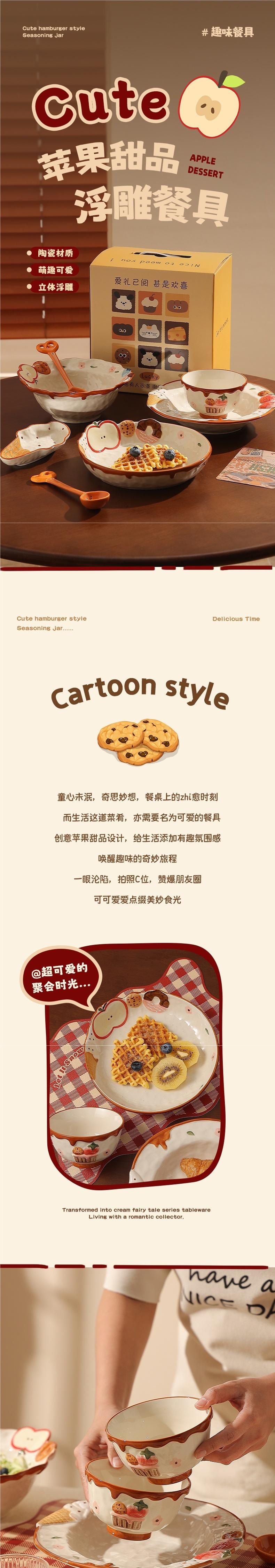 Vajilla de Manzana en Relieve Creativa Cerámica Tazón de Arroz Plato Plato para el Hogar Plato Hondo Tazón de Sopa Plato para Salsas Bajo Esmalte