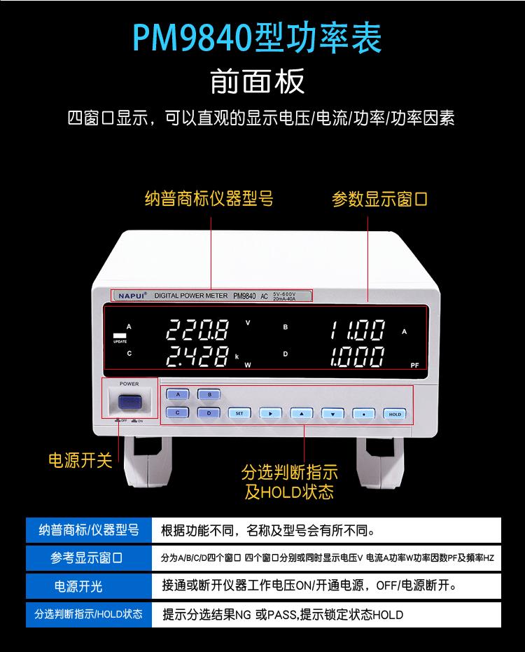 Medidor de potencia digital Nap PM9840 probador de parámetros eléctricos CA y CC de alta corriente y alta potencia nuevo genuino