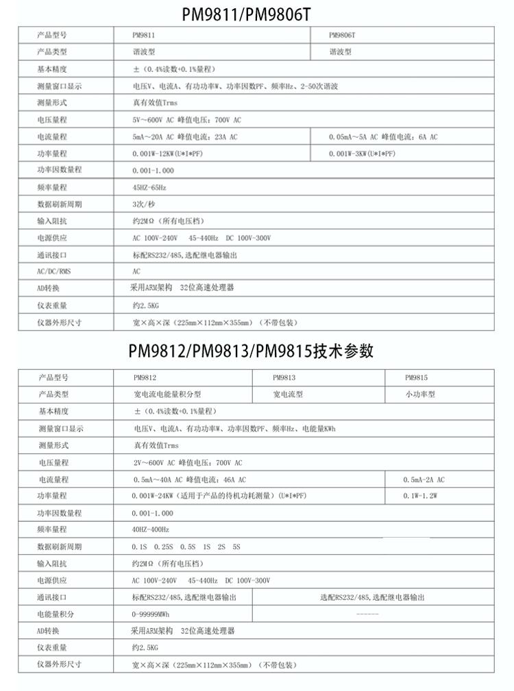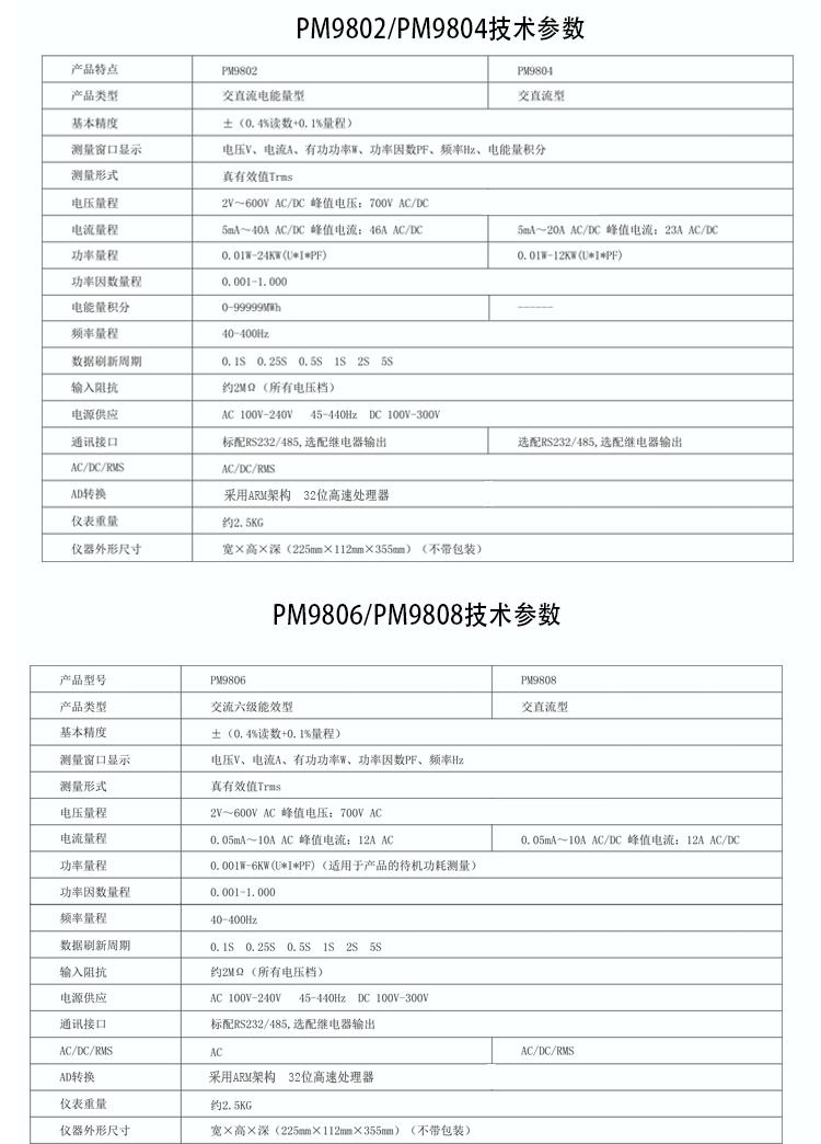 PM9840 [single AC (20mA-40A)]], PM9840X [single AC (50mA-80A)]], PM9800 [single AC + basic type]], PM9801 [sin...