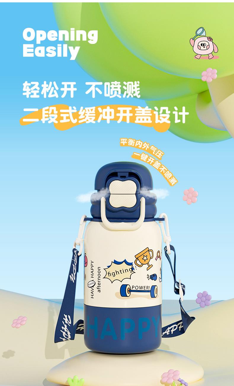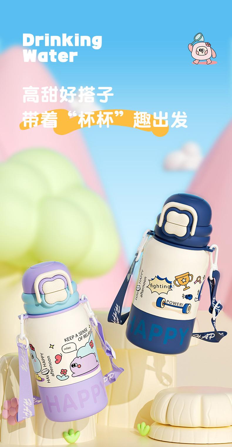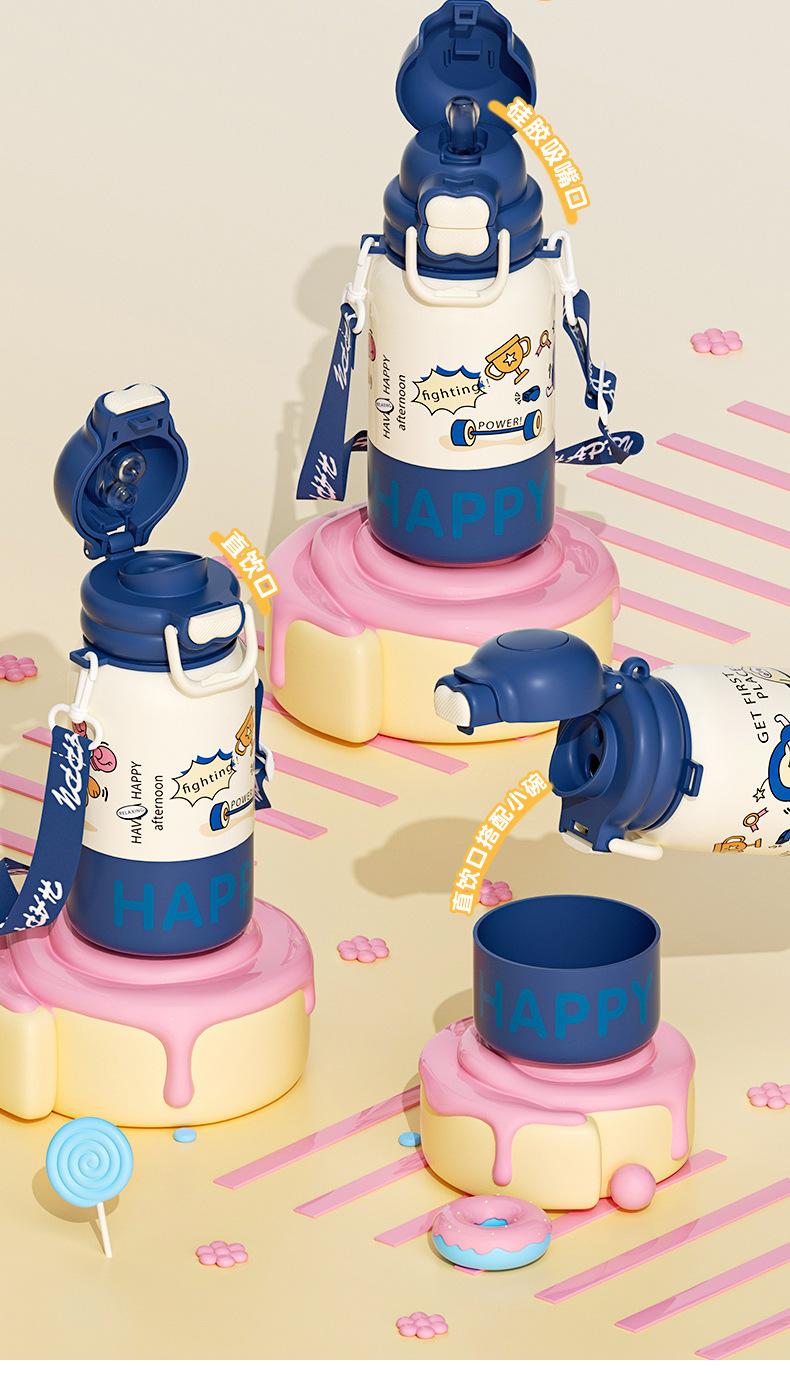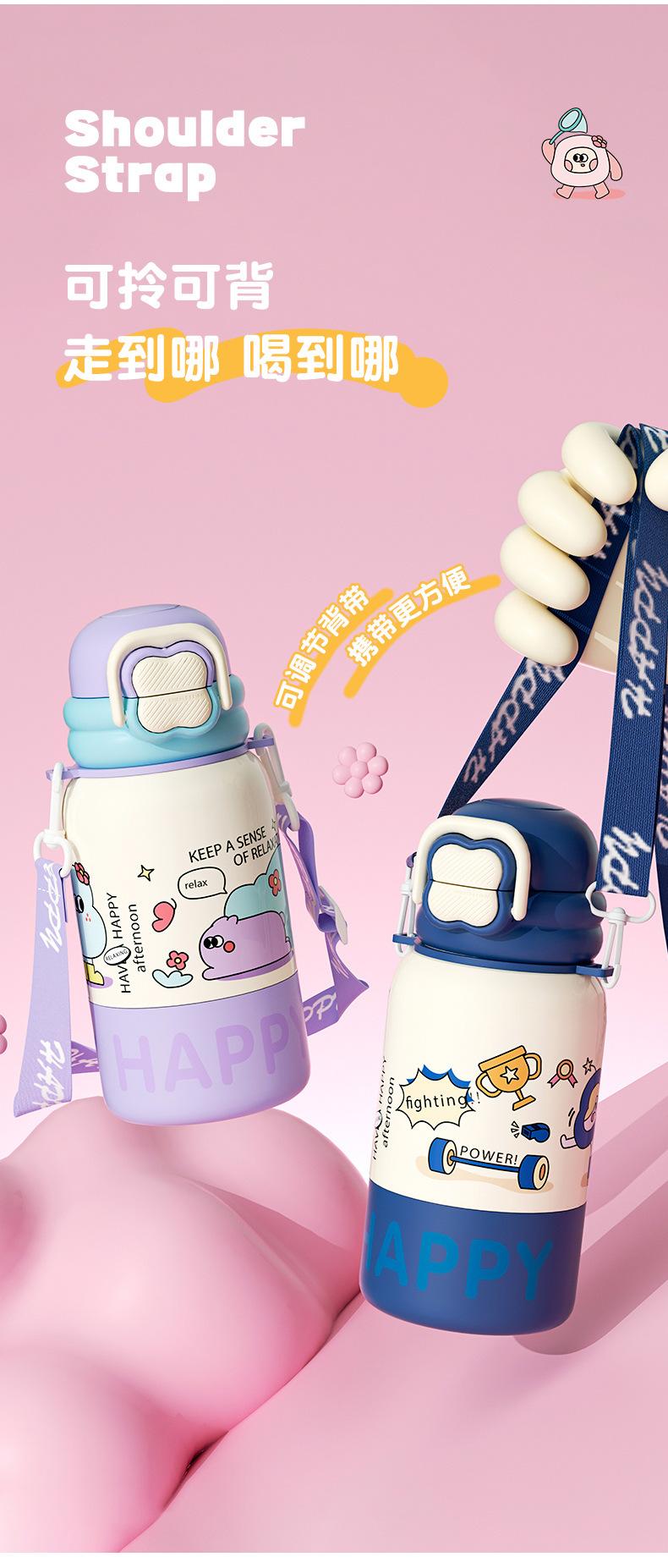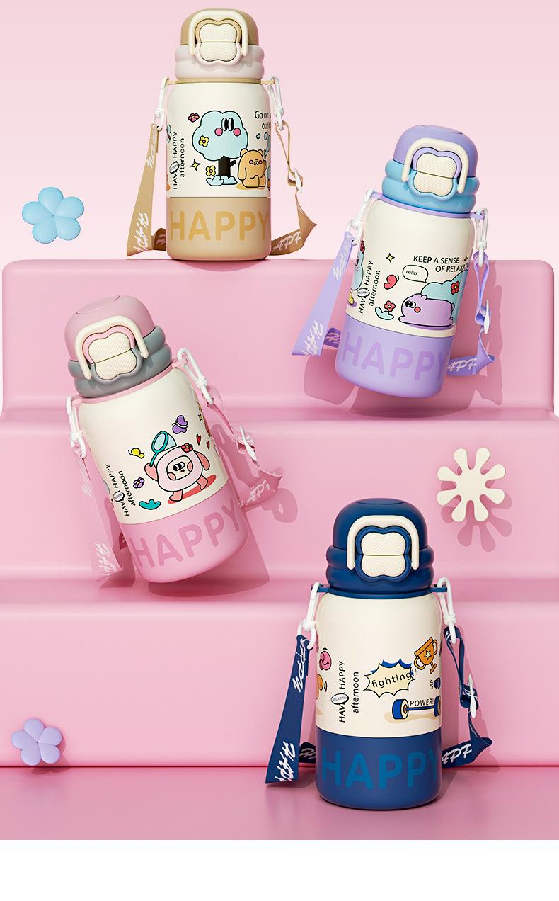 Lindo Vaso Termo para Niños 316 Acero Inoxidable Vaso con Popote Vaso de Agua para Niñas de Aspecto Sofisticado Vaso Portátil para Estudiantes Vaso Tres Bebidas