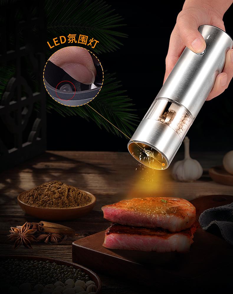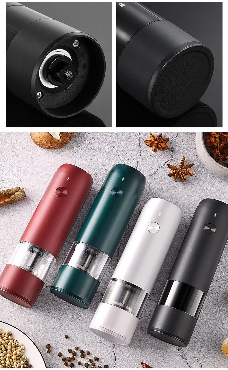 Juego de Molinillos Eléctricos de Sal y Pimienta de Acero Inoxidable, Molinillo Automático Recargable Personalizable para Sal Marina, Molinillo para Pimienta Negra