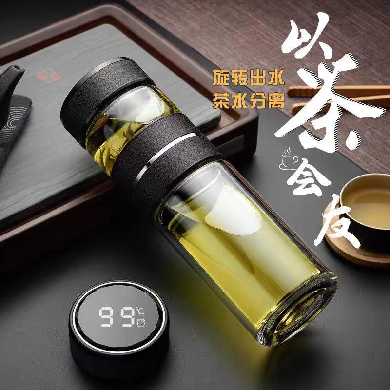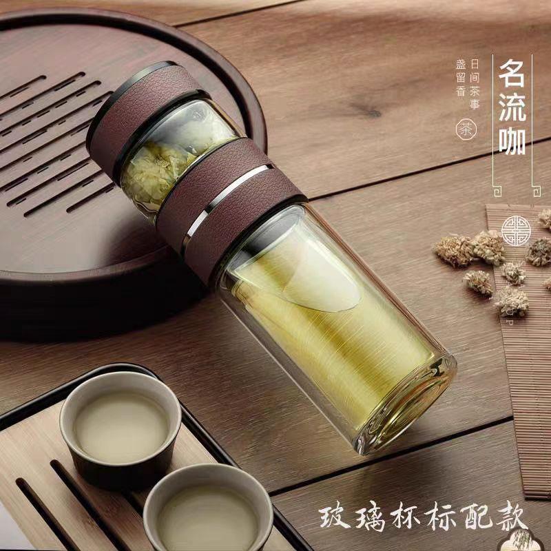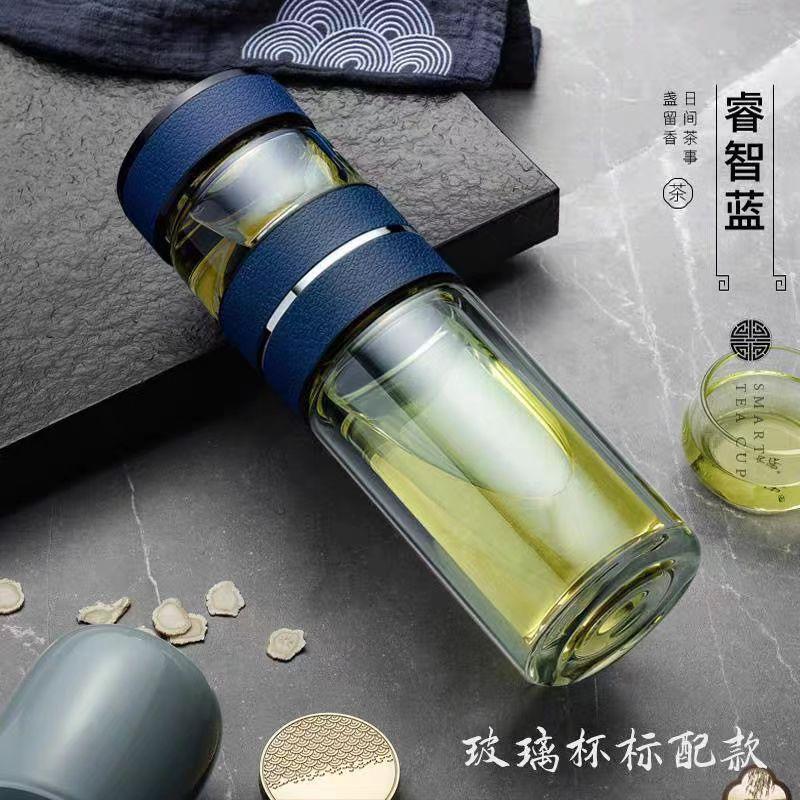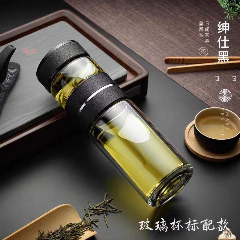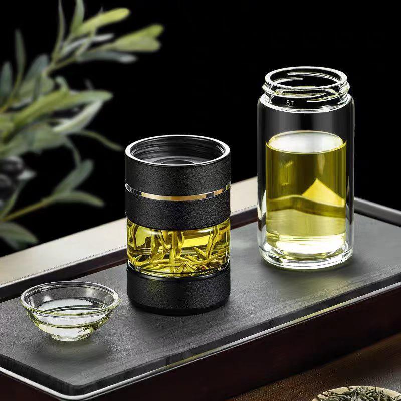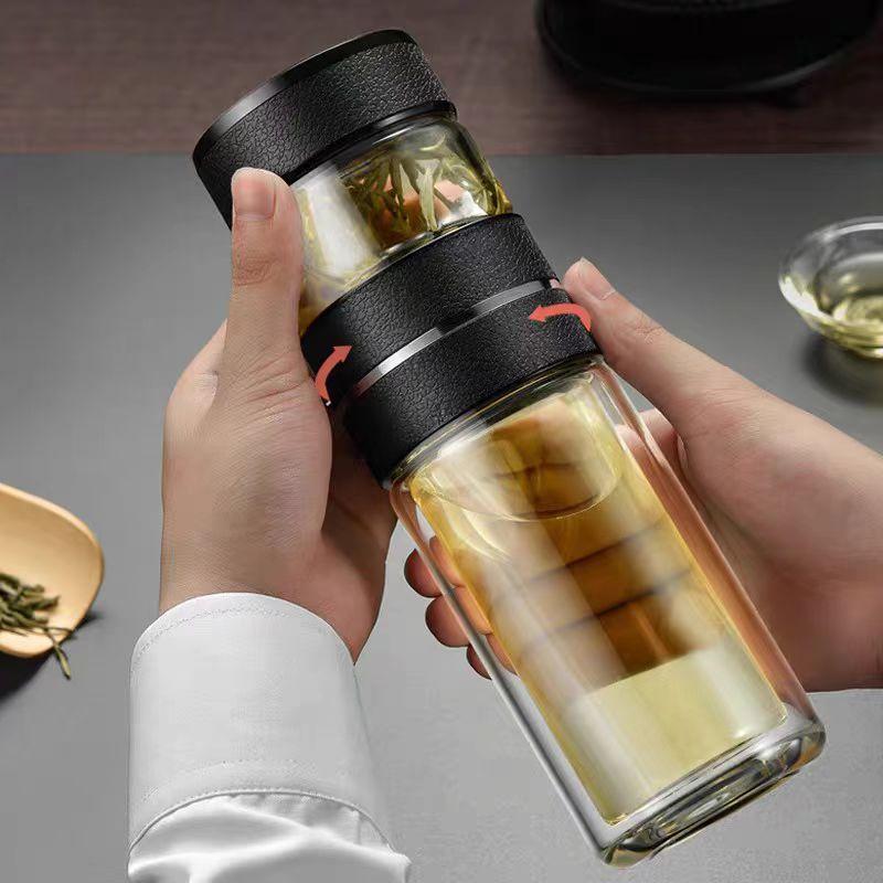 Taza de Té con Separación de Agua para Hombres, Taza de Vidrio de Doble Capa Anti-Escaldamiento, Vaso Transparente para Agua para Oficina/Coche, Caja de Regalo con Logo