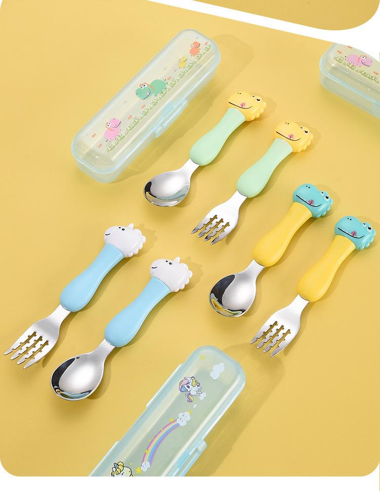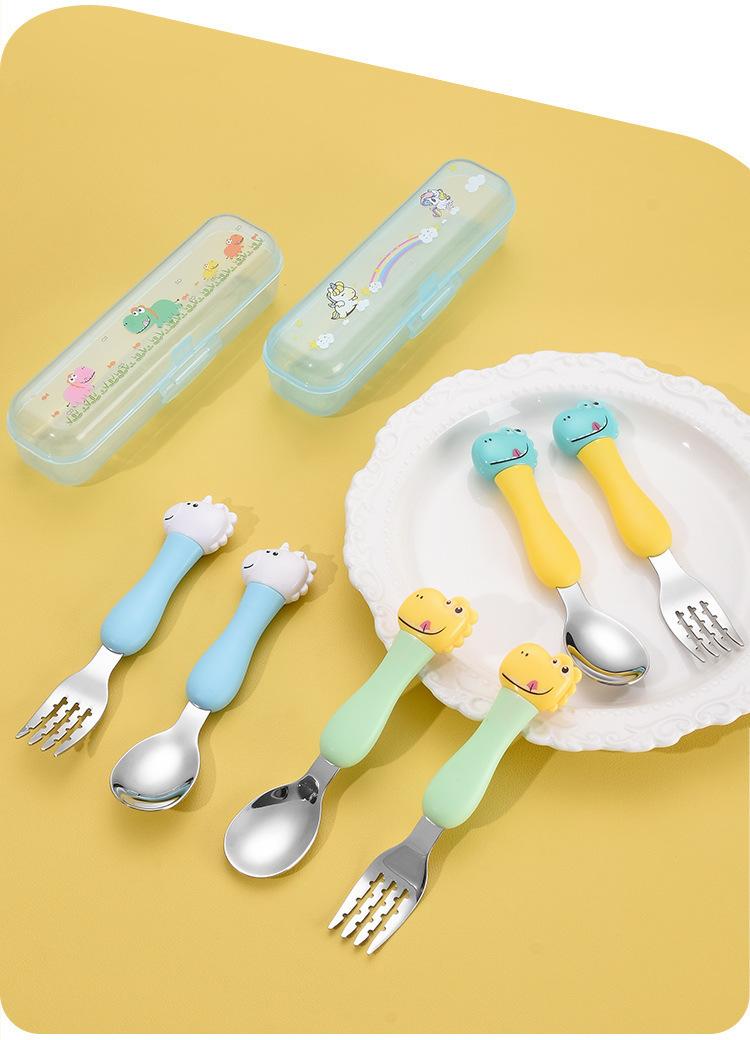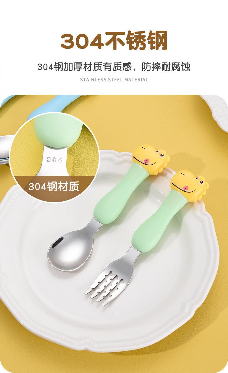 Acero Inoxidable Nueva Cuchara para Comer para Niños Cuchara Lingote para Cereal de Arroz para Bebé Cuchara para Sopa de Dinosaurio de Dibujos Animados Cuchara de Entrenamiento para Bebé