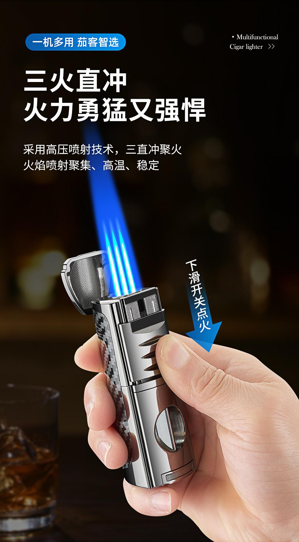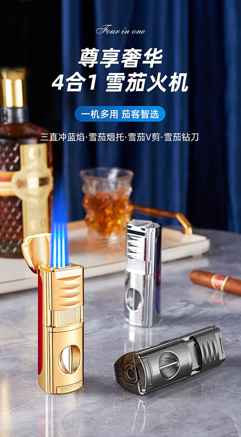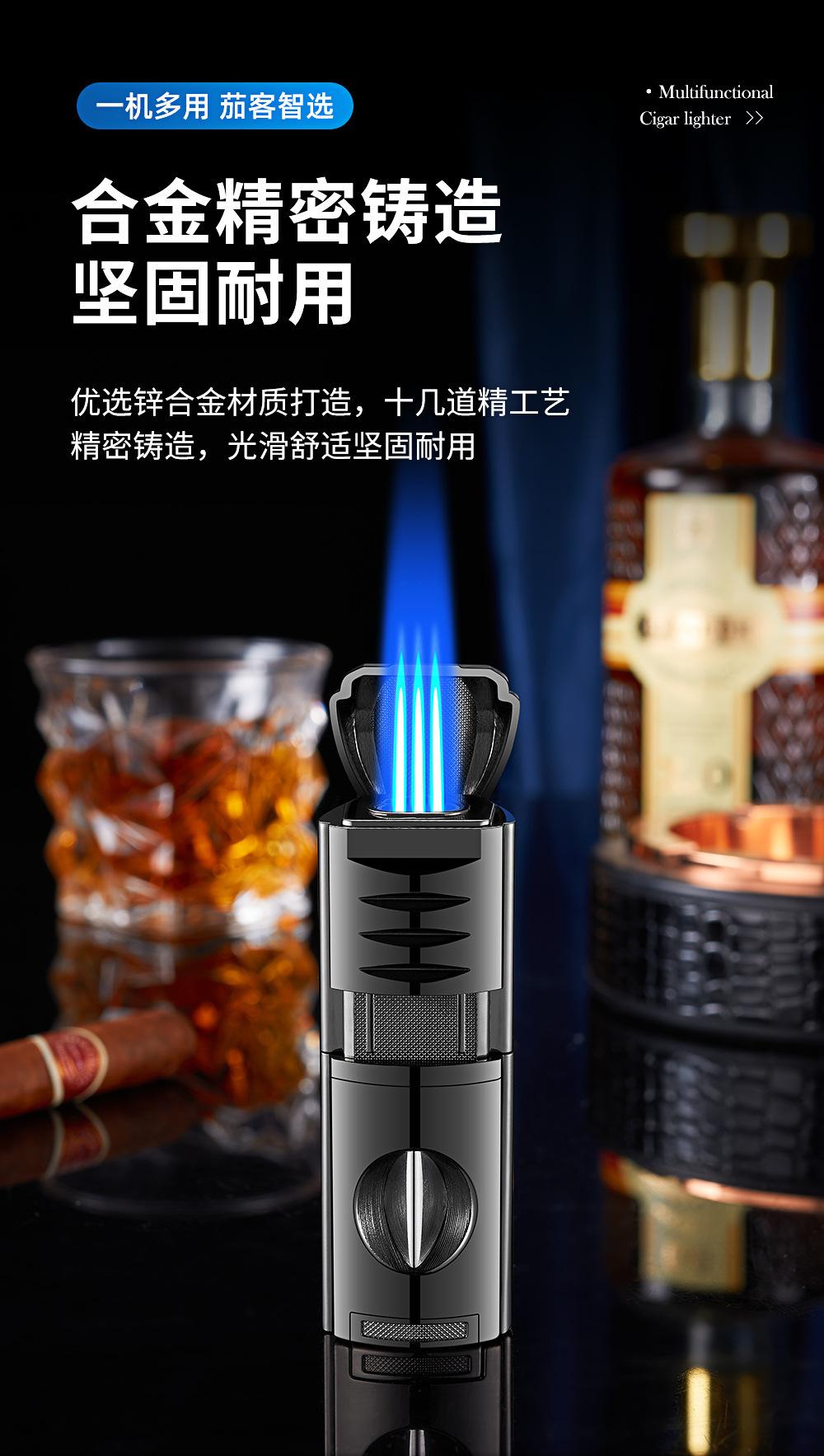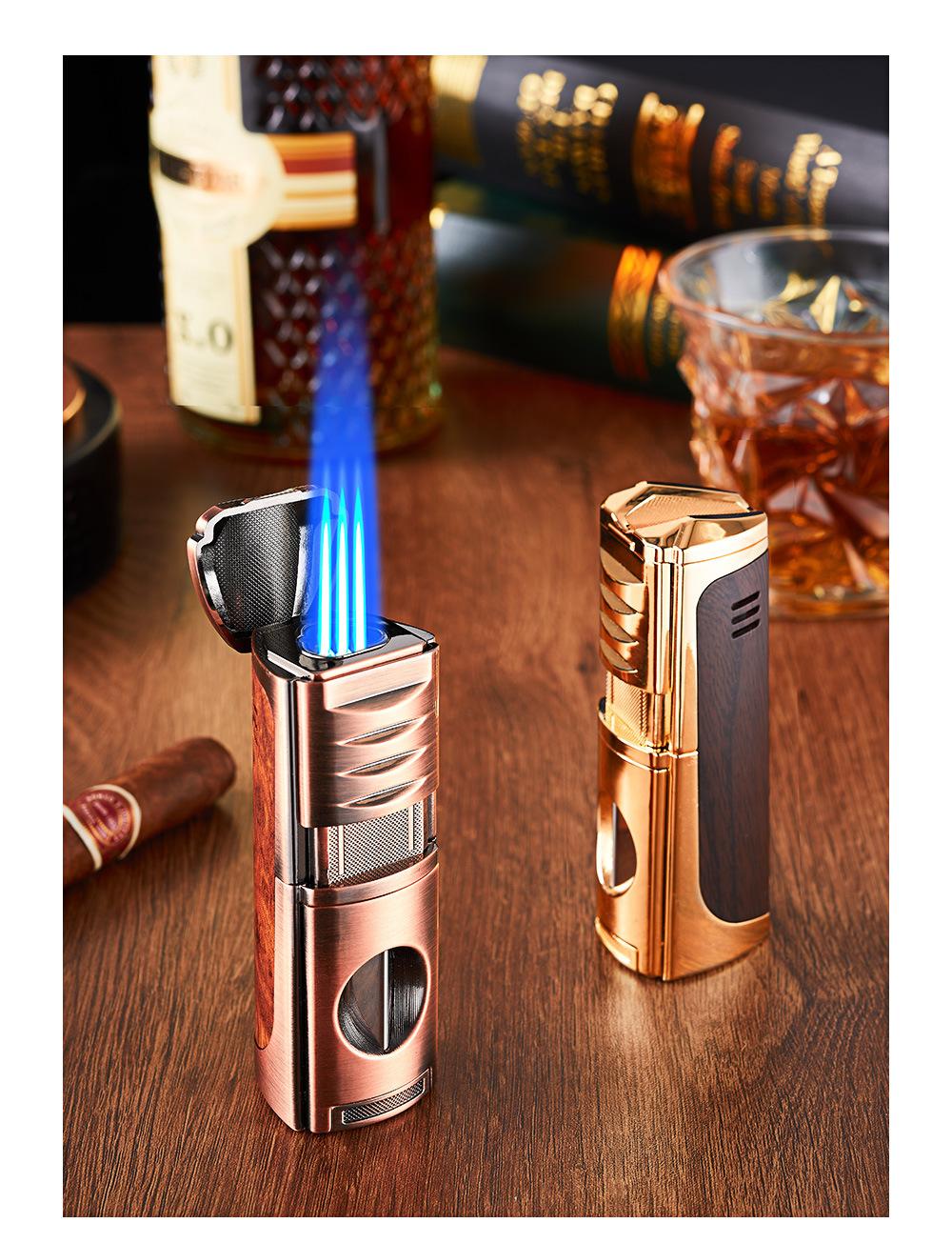 Encendedor Novedoso de Moda de Llama Directa Inflable Específico para Cigarros Encendedor de Llama Directa de Tres Llamas Portátil Encendedor Cuatro en Uno