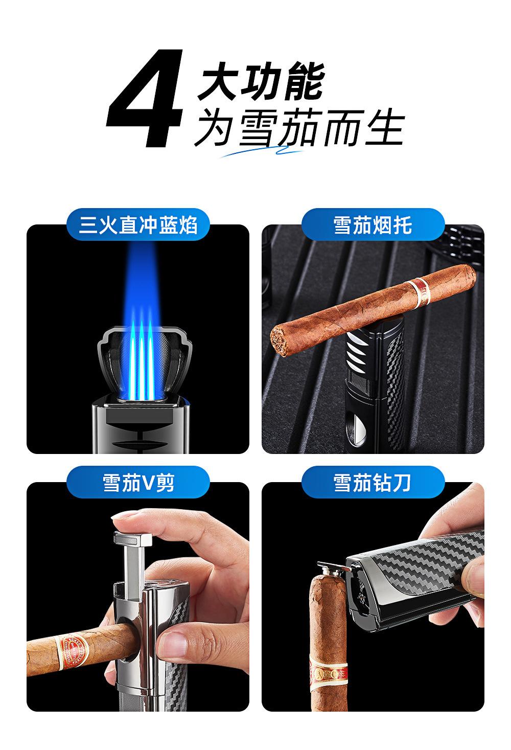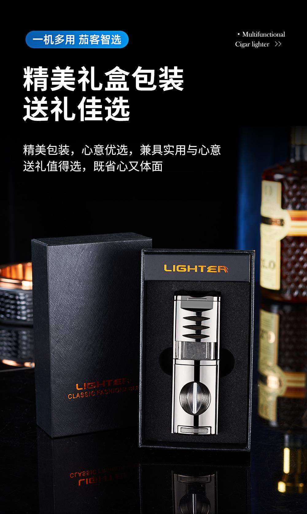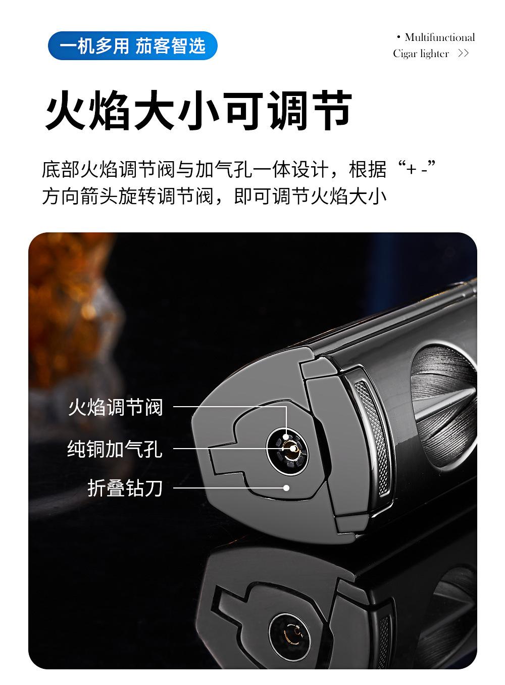 Encendedor Novedoso de Moda de Llama Directa Inflable Específico para Cigarros Encendedor de Llama Directa de Tres Llamas Portátil Encendedor Cuatro en Uno