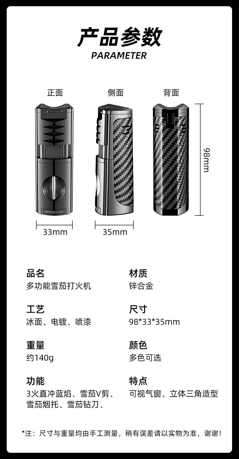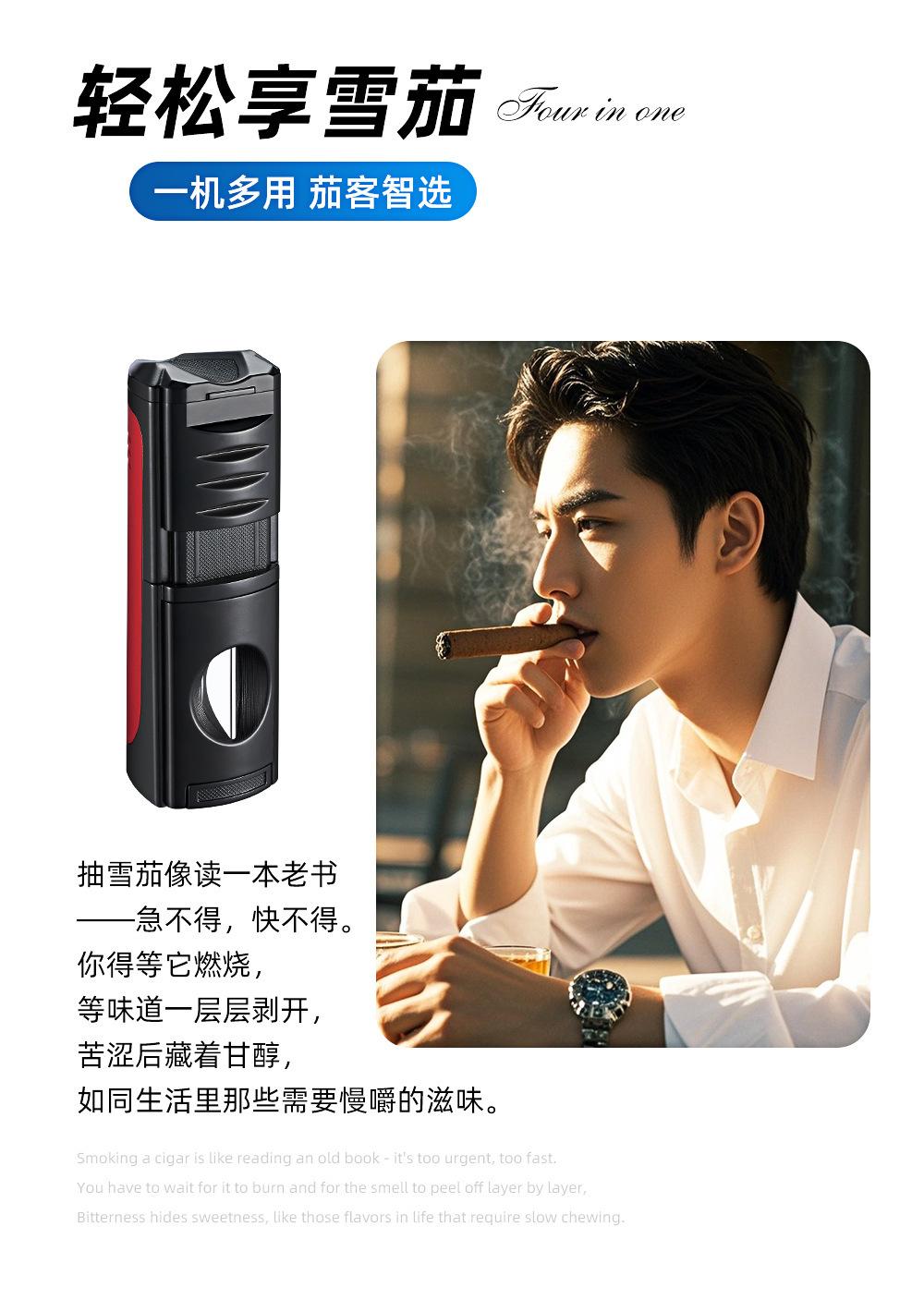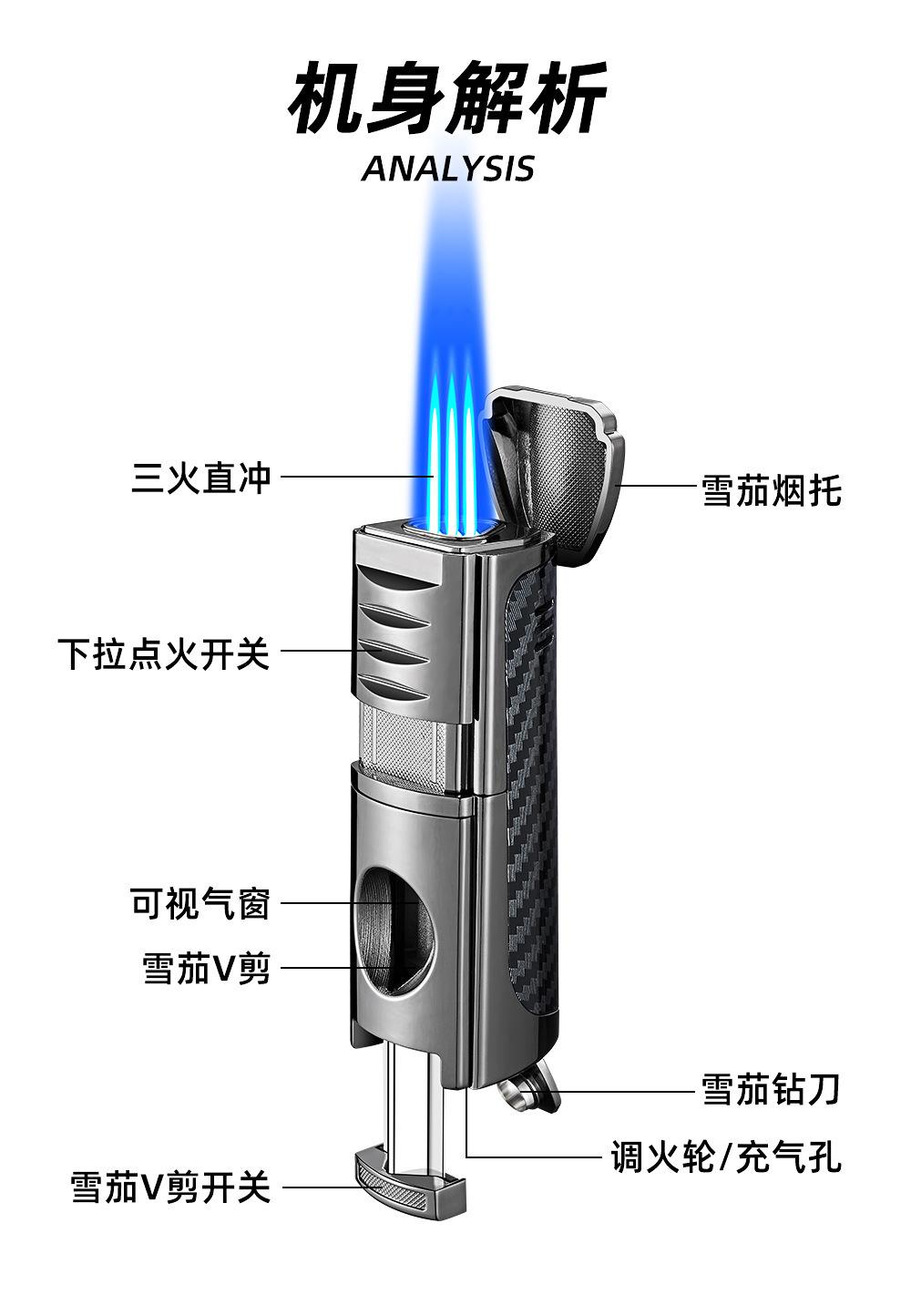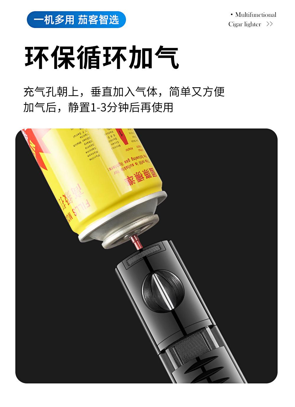 Encendedor Novedoso de Moda de Llama Directa Inflable Específico para Cigarros Encendedor de Llama Directa de Tres Llamas Portátil Encendedor Cuatro en Uno