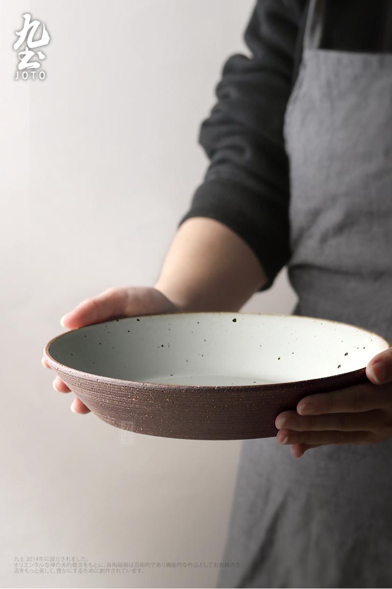 Plato Japonés Creativo Gres Hecho a Mano Plato Retro Vajilla Plato Plano Redondo Plato para Hogar Plato para Sopa Plato para Restaurante Plato Occidental