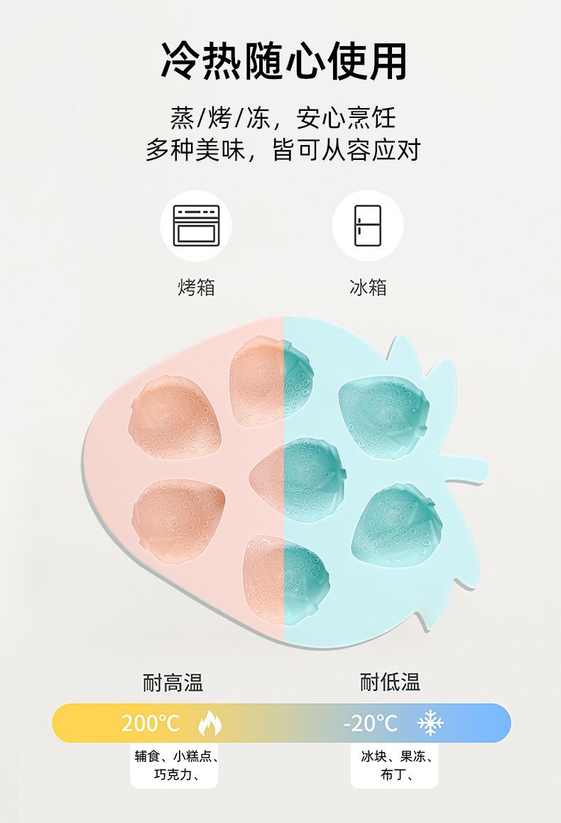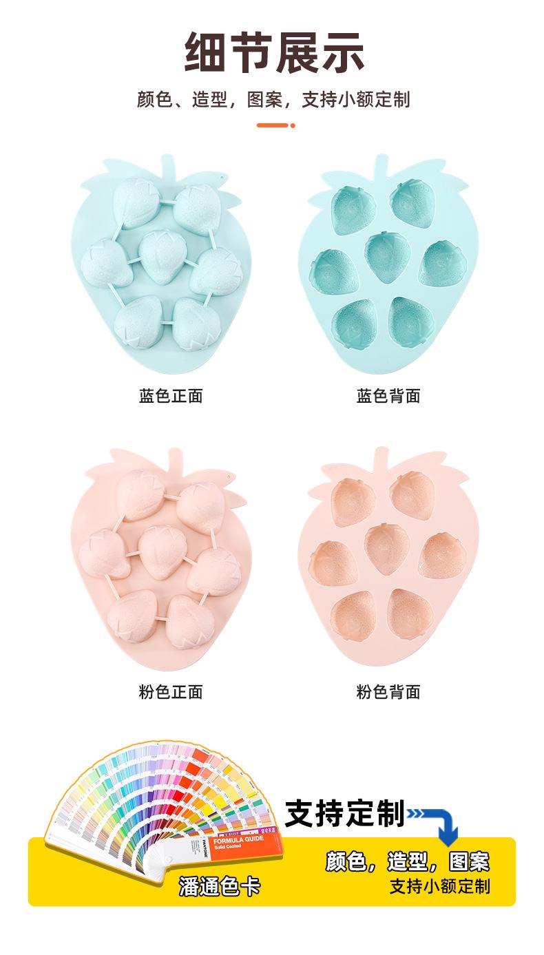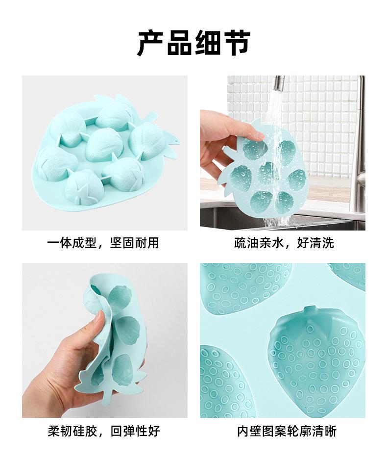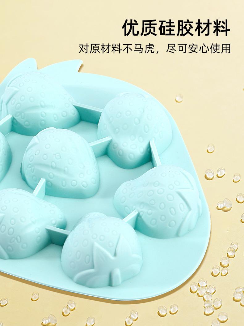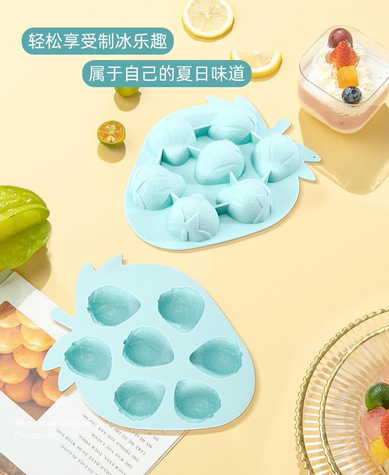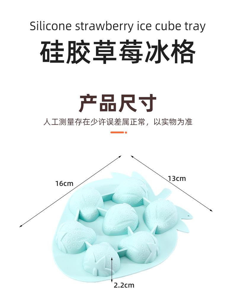 Bandeja de Silicona para Cubitos de Hielo de Fresa Tamaño: 16*13*2.2cm Peso: 40 (±3) g Material: silicona Embalaje: bolsa individual de polipropileno.